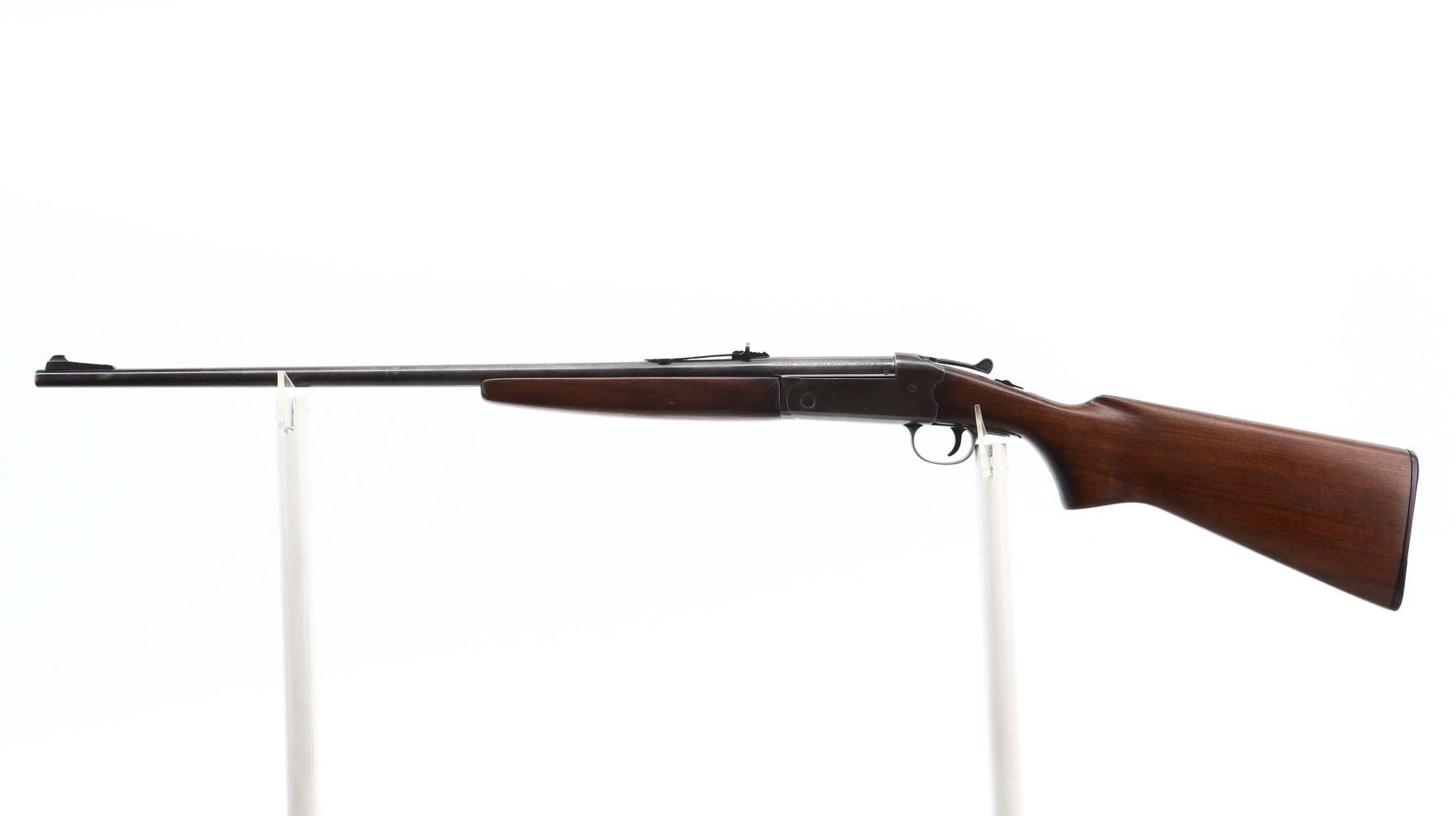 5+/10, SAVAGE, MODEL: 219, CALIBER:30-30 WIN, BORE IS GOOD. BLADE FRONT SIGHT WITH RAMP, ADJUSTABLE U NOTCHED REAR SIGHT, ROUND BARREL, MANUAL SAFETY, EXTRACTOR. TWO PIECE SMOOTH WOOD STOCKS, PISTOL GRIP, GROOVED BLACK POLYMER BUTT PLATE. METAL FINISH TURNING BROWN WITH SCRATCHES, HANDLING MARKS AND WEAR. STOCKS SHOW MARKS, SCRATCHES AND WEAR. , ACTION: HINGED SINGLE SHOT RIFLE, BARREL LENGTH: 26", SERIAL # NA, CONDITION: 5+/10, CLASS: CANADIAN NON RESTRICTED