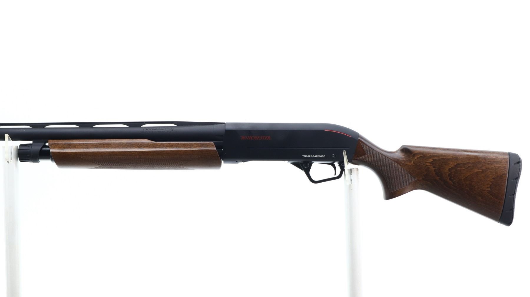 AS NEW IN BOX, WINCHESTER, MODEL: SXP COMPACT FIELD, CALIBER:12 G X 3", COMES WITH BOX, MANUAL, 2 SPARE CHOKES, BORE IS EXCELLENT. APPEARS AS NEW, MAY HAVE BEEN TEST FIRED IN FACTORY. HAS REMOVABLE IC CHOKE INSTALLED. BRASS BEAD, BLACK MATTE FINISH, STEEL VENT RIB BARREL, BLACK ALLOY RECEIVER. TWO PIECE WOOD STOCKS, CHECKERED FOREARM AND PISTOL GRIP, TEXTURED BLACK RUBBER RECOIL PAD, 12" LOP, SPARE CHOKES INCLUDE: FULL AND IC. ACCESSORIES INCLUDE: CHOKE WRENCH AND CABLE LOCK. AS NEW EXCEPT METAL FINISH HAS SLIGHT SCRATCHED ON BARREL AND FEW LIGHT RUST SPECKLES ON RIB., ACTION: PUMP ACTION SHOTGUN, BARREL LENGTH: 28", SERIAL # TR6022047210SP, CONDITION: AS NEW IN BOX, CLASS: CANADIAN NON RESTRICTED