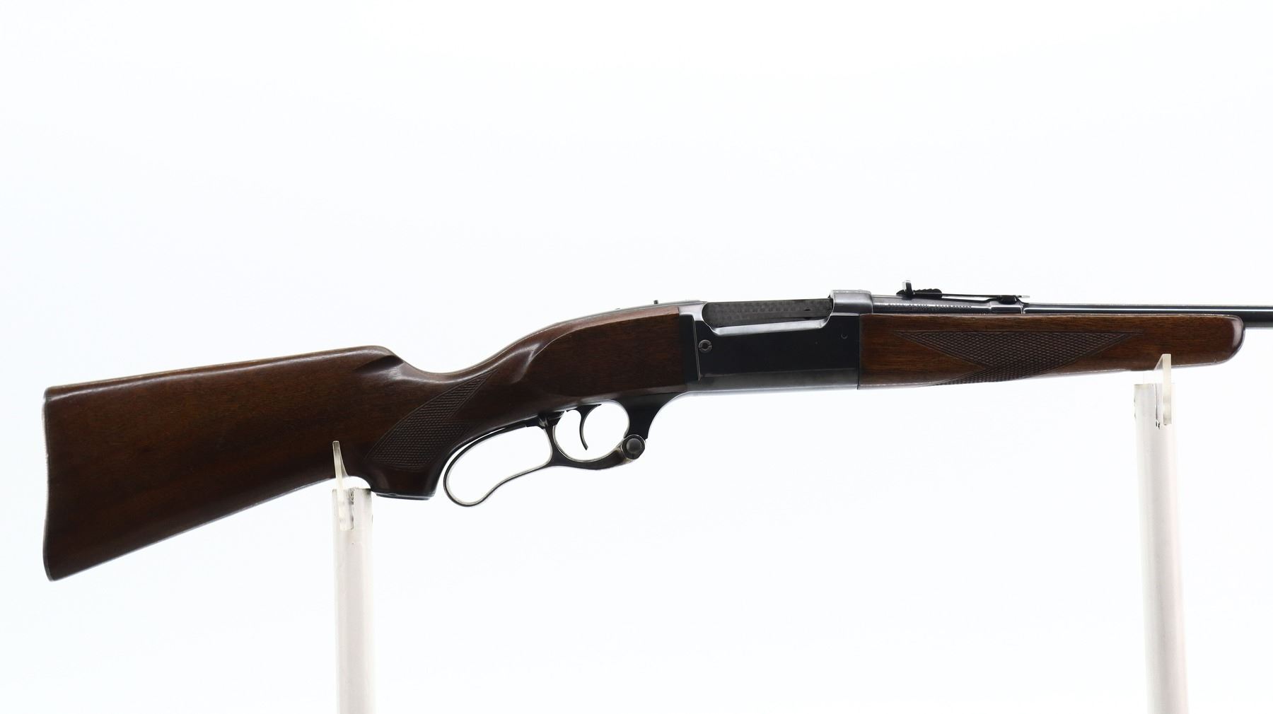 7/10, SAVAGE, MODEL: 99, CALIBER:250-3000 SAV, BORE IS EXCELLENT. BLADE FRONT SIGHT WITH RAMP, ADJUSTABLE U NOTCHED REAR SIGHT, BLUED FINISH, RECEIVER DRILLED AND TAPPED FOR SCOPE MOUNT AND TANG PEEP SIGHT WITH PLUG SCREWS INSTALLED, JEWELLED BOLT, COCKING INDICATOR. TWO PIECE WOOD STOCKS, CHECKERED FOREARM AND PISTOL GRIP, GROOVED STEEL BUTT PLATE, GRIP CAP. METAL FINISH SHOWS SOME SCRATCHES, HANDLING MARKS AND WEAR. STOCKS SHOW SOME MARKS, SCRATCHES AND WEAR. , ACTION: LEVER ACTION RIFLE, BARREL LENGTH: 22", SERIAL # 782141, CONDITION: 7/10, CLASS: CANADIAN NON RESTRICTED