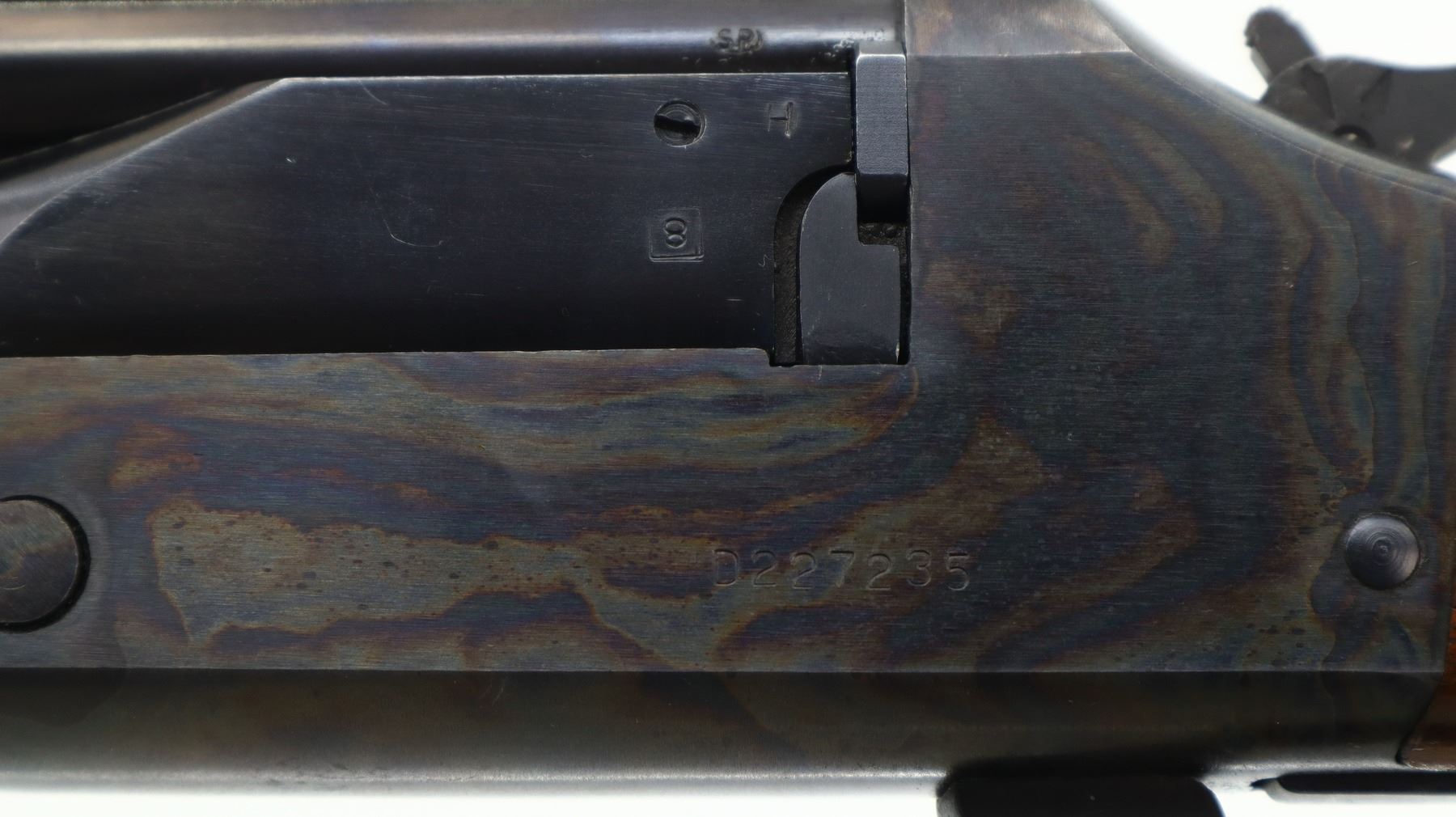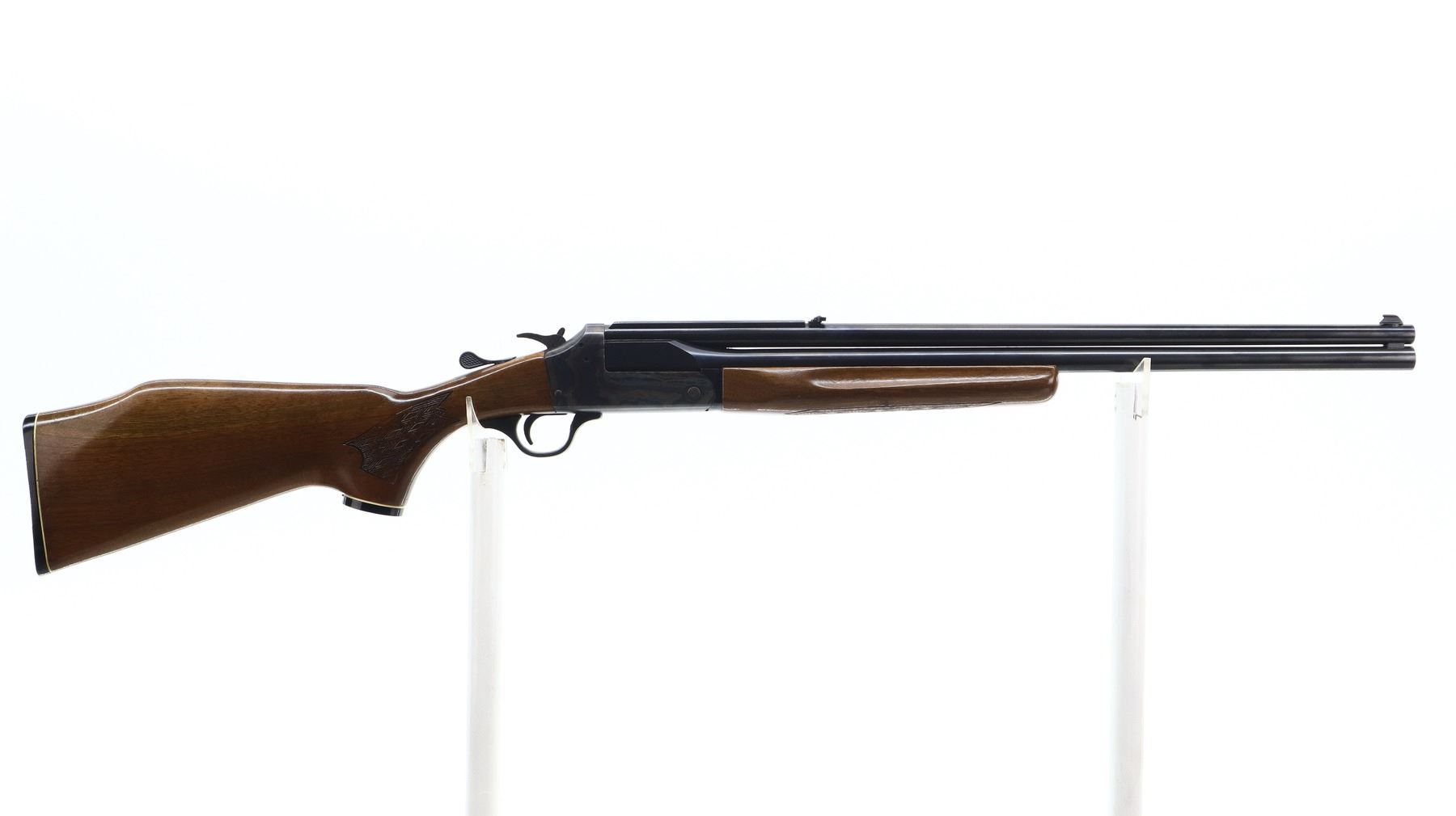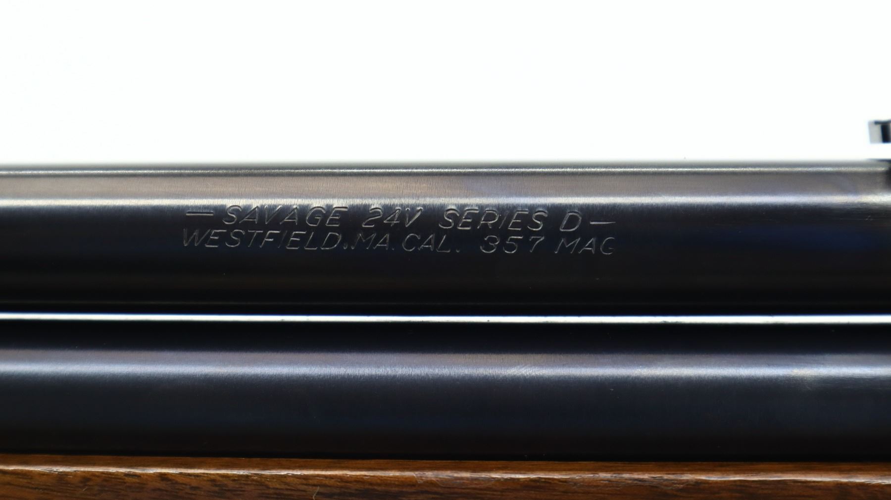 7+/10, SAVAGE, MODEL: 24V SERIES D, CALIBER:357 MAG/20 G X 3", BORES ARE EXCELLENT. FIXED MOD CHOKE. BLADE FRONT SIGHT, ADJUSTABLE FOLDING U NOTCHED REAR SIGHT, BLUED BARRELS DRILLED AND TAPPED FOR SCOPE RAIL WITH PLUG SCREWS INSTALLED. COLOUR CASE HARDENED RECEIVER, GROOVED HAMMER WITH BARREL SELECTOR, EXTRACTOR. TWO PIECE WOOD STOCKS, CHECKERED FOREARM AND PISTOL GRIP, GROOVED BLACK POLYMER BUTT PLATE, GRIP CAP. METAL FINISH SHOWS SOME SCRATCHES, HANDLING MARKS AND WEAR. STOCKS SHOW SOME MARKS AND SCRATCHES. , ACTION: HINGED COMBINATION GUN, BARREL LENGTH: 24", SERIAL # D227235, CONDITION: 7+/10, CLASS: CANADIAN NON RESTRICTED