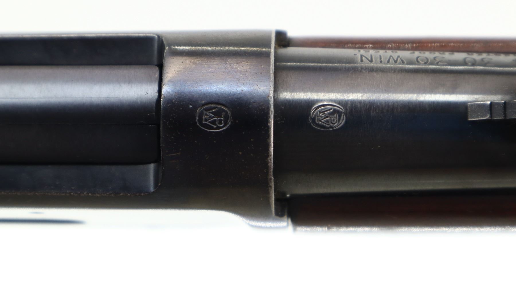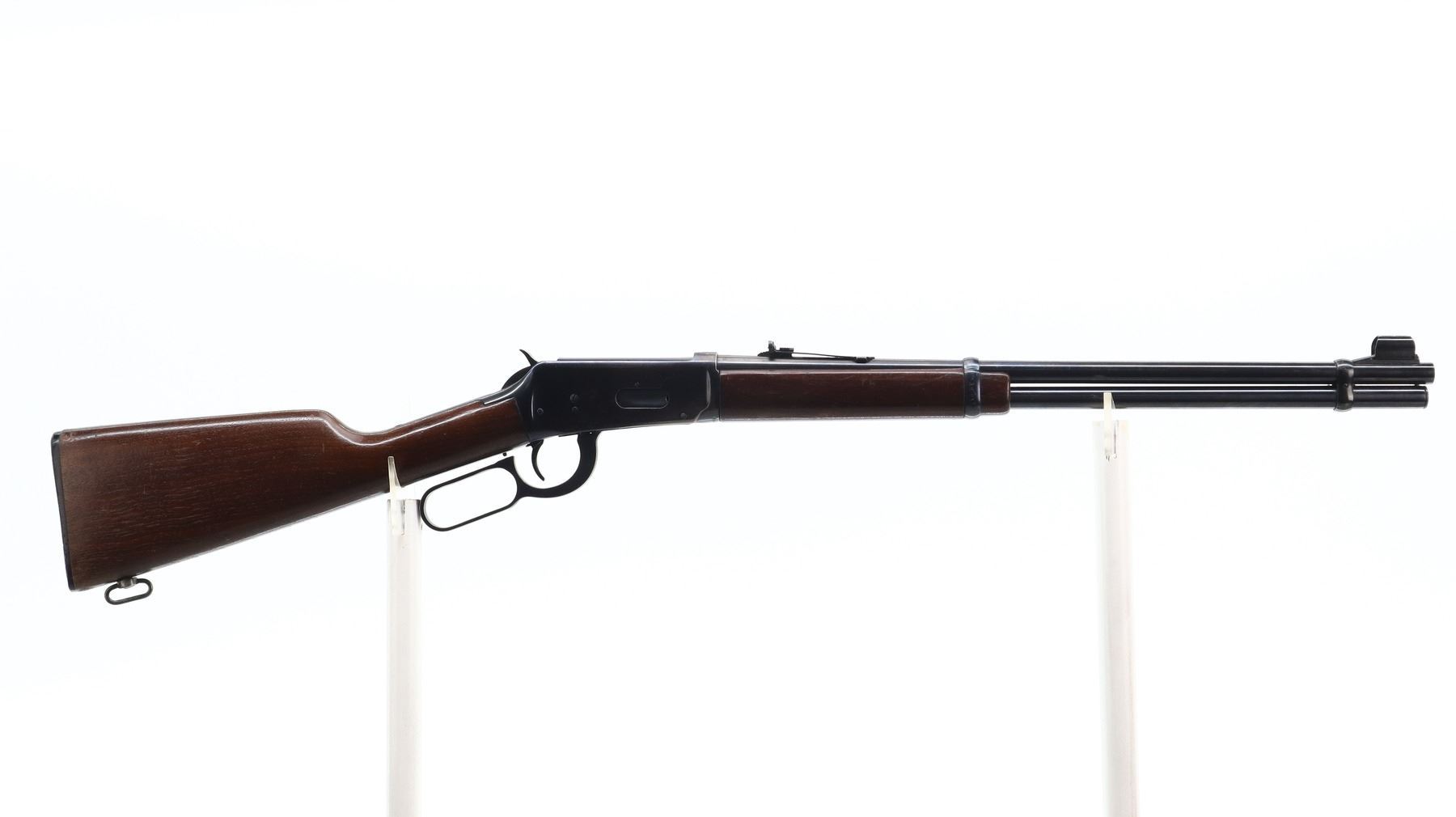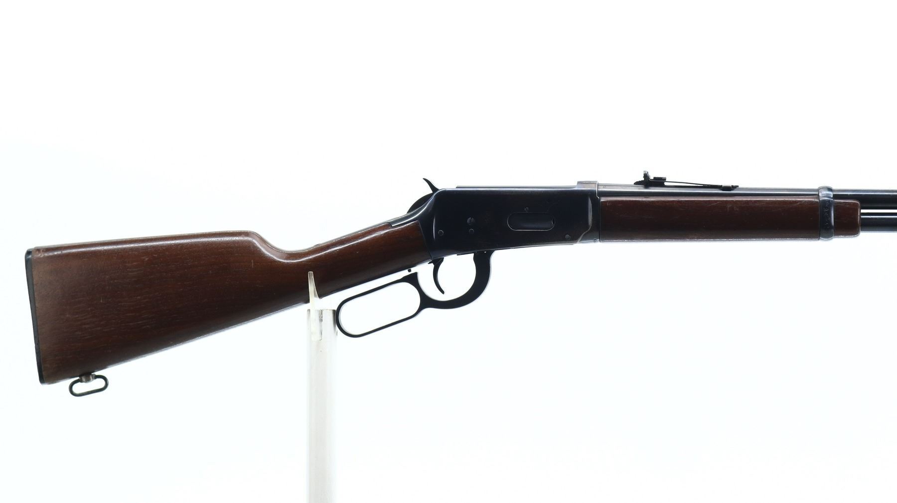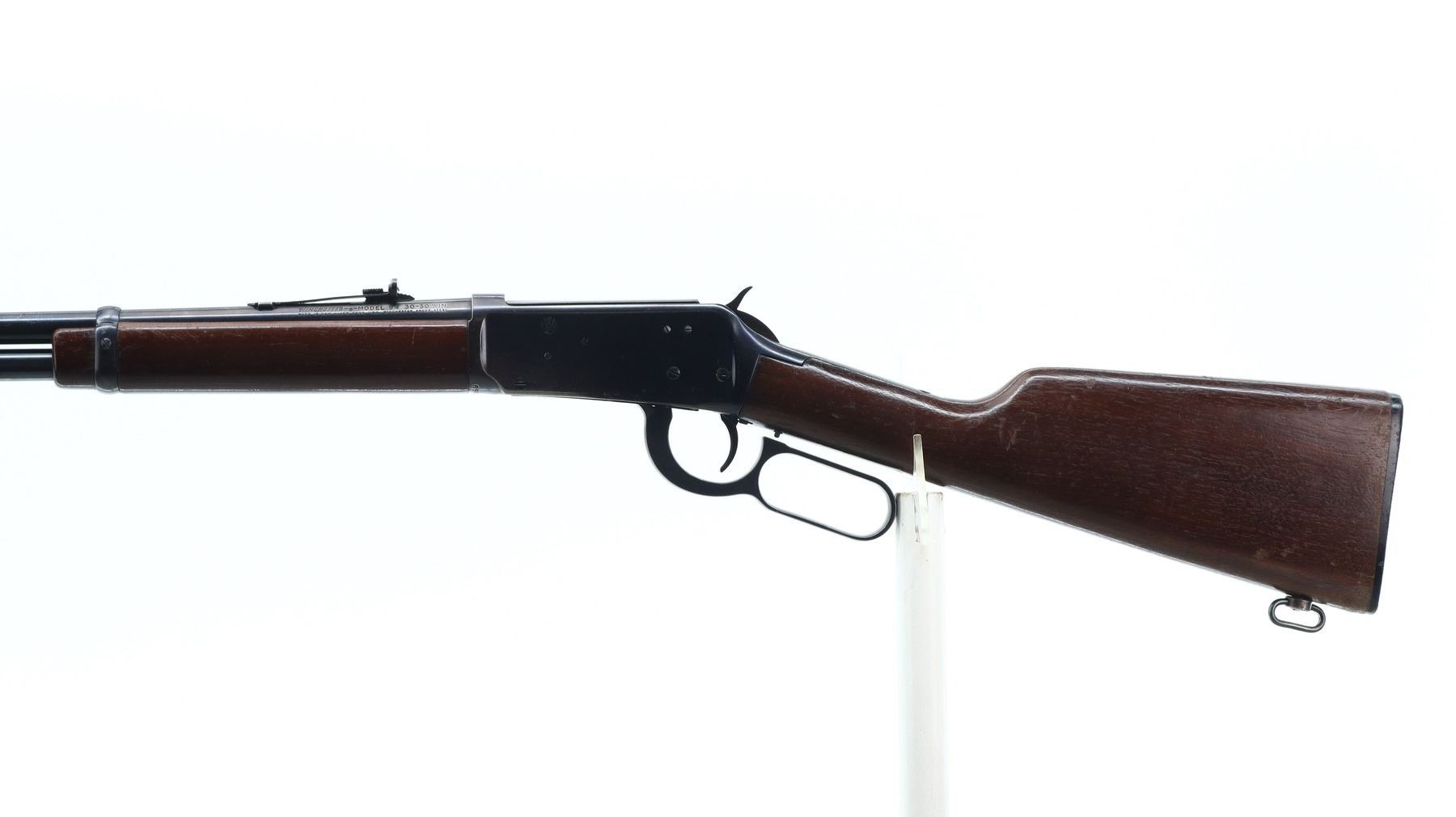 7/10, WINCHESTER, MODEL: 94, CALIBER:30-30 WIN, BORE IS VERY GOOD. BLADE FRONT SIGHT WITH RAMP AND HOOD, ADJUSTABLE U NOTCHED REAR SIGHT, BLUED FINISH, GROOVED SPUR HAMMER. TWO PIECE SMOOTH WOOD STOCKS, STRAIGHT GRIP, CHECKERED BLACK POLYMER BUTT PLATE, REAR SWIVEL ONLY. METAL FINISH SHOWS SOME SCRATCHES, HANDLING MARKS AND WEAR. STOCKS SHOW SOME MARKS, SCRATCHES AND WEAR. , ACTION: LEVER ACTION RIFLE, BARREL LENGTH: 20", SERIAL # 4623169, CONDITION: 7/10, CLASS: CANADIAN NON RESTRICTED