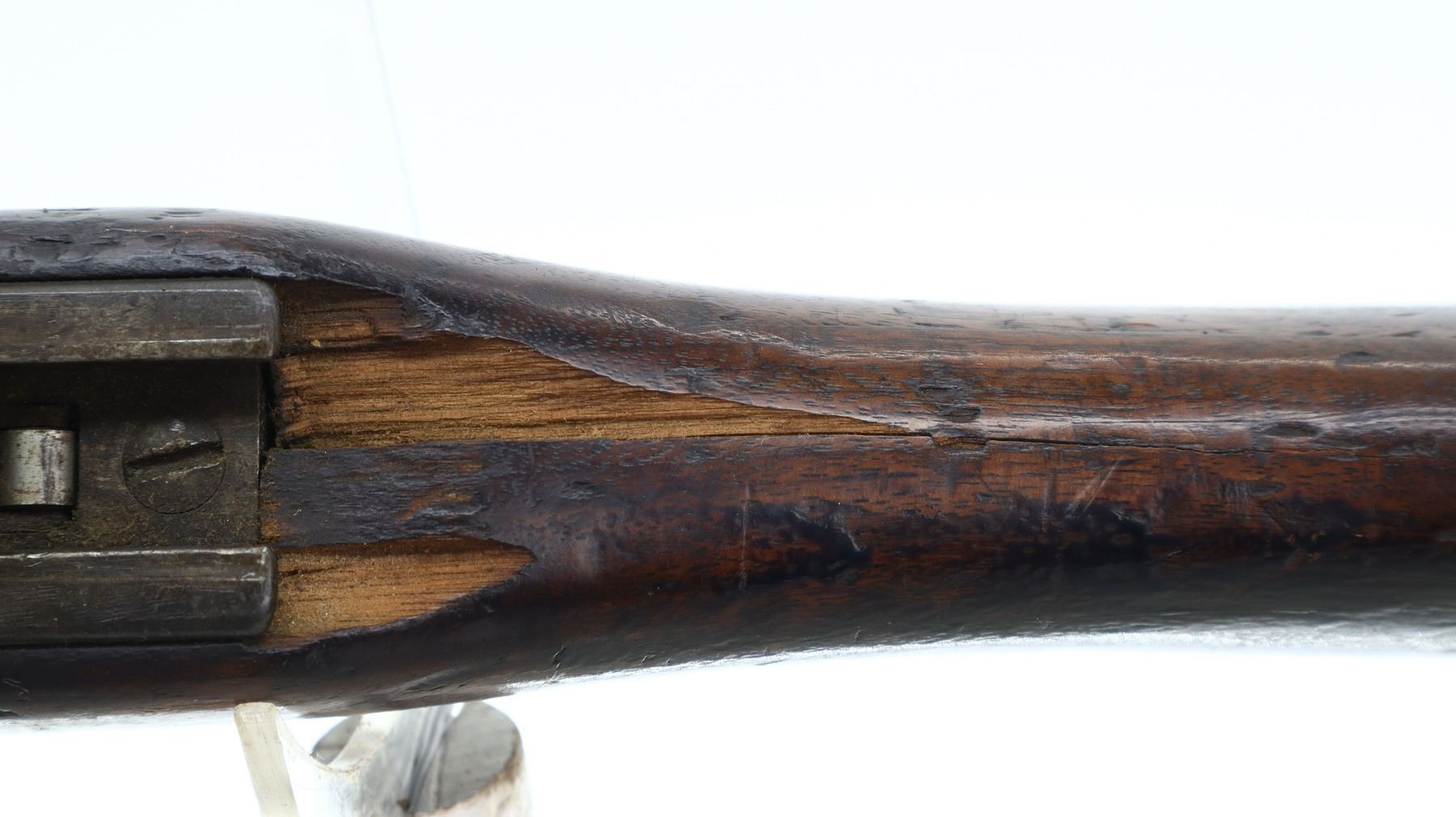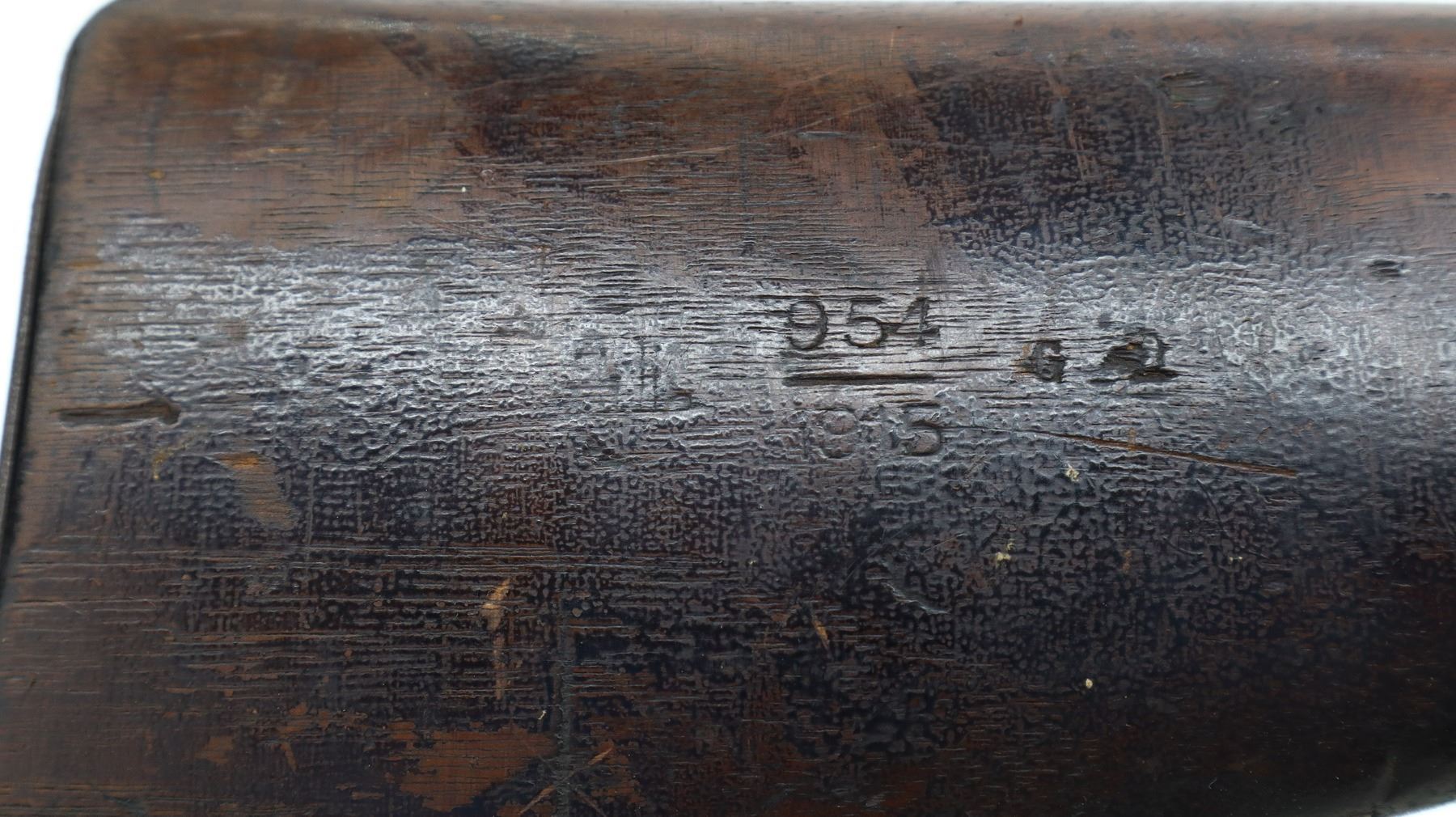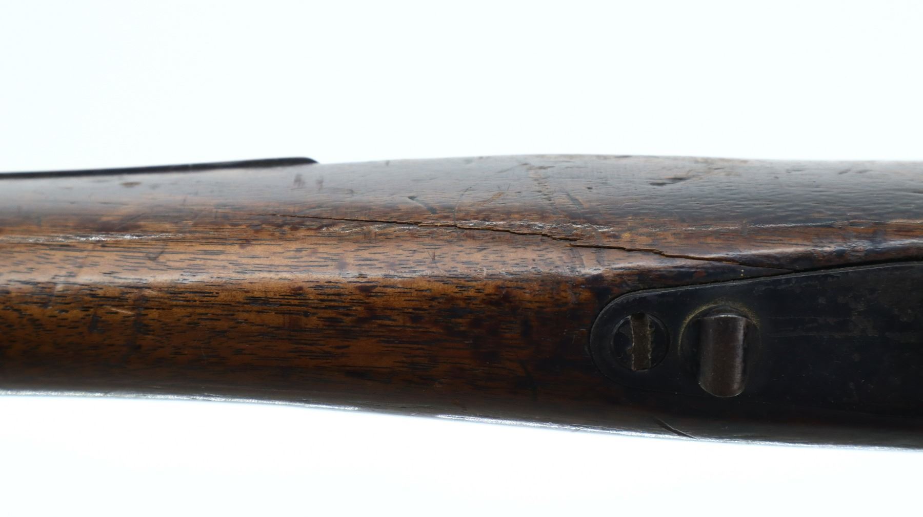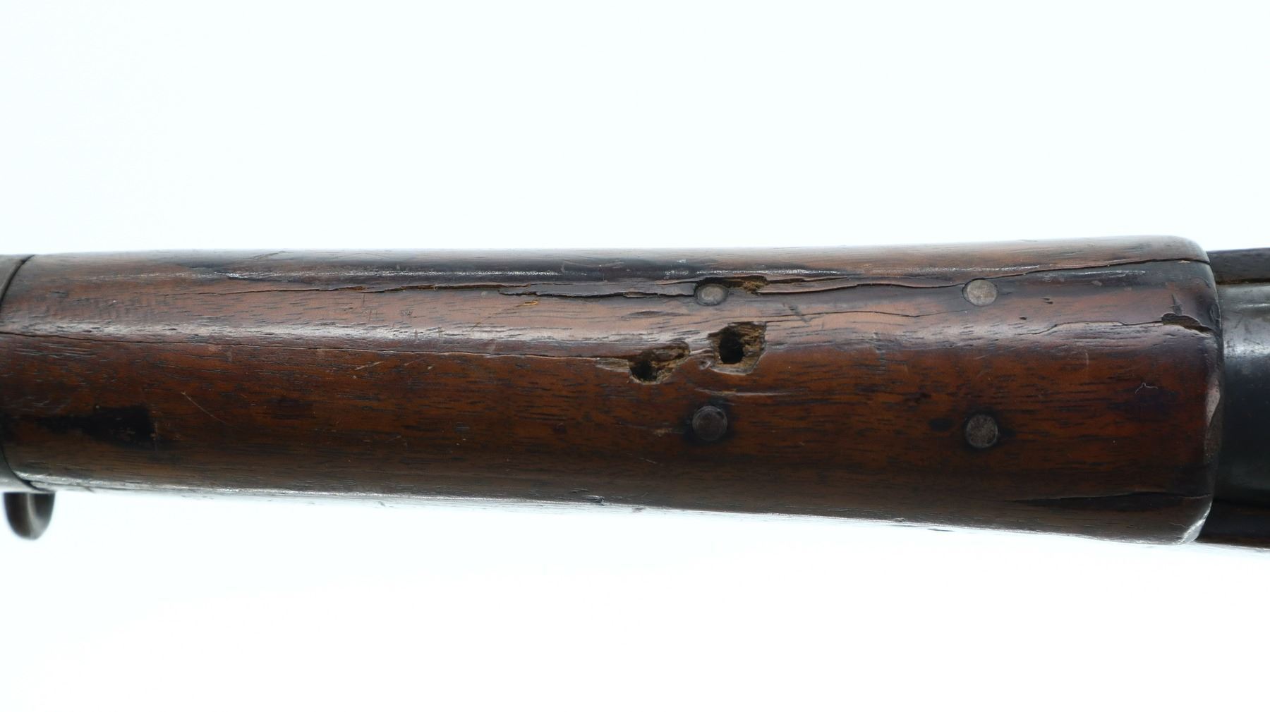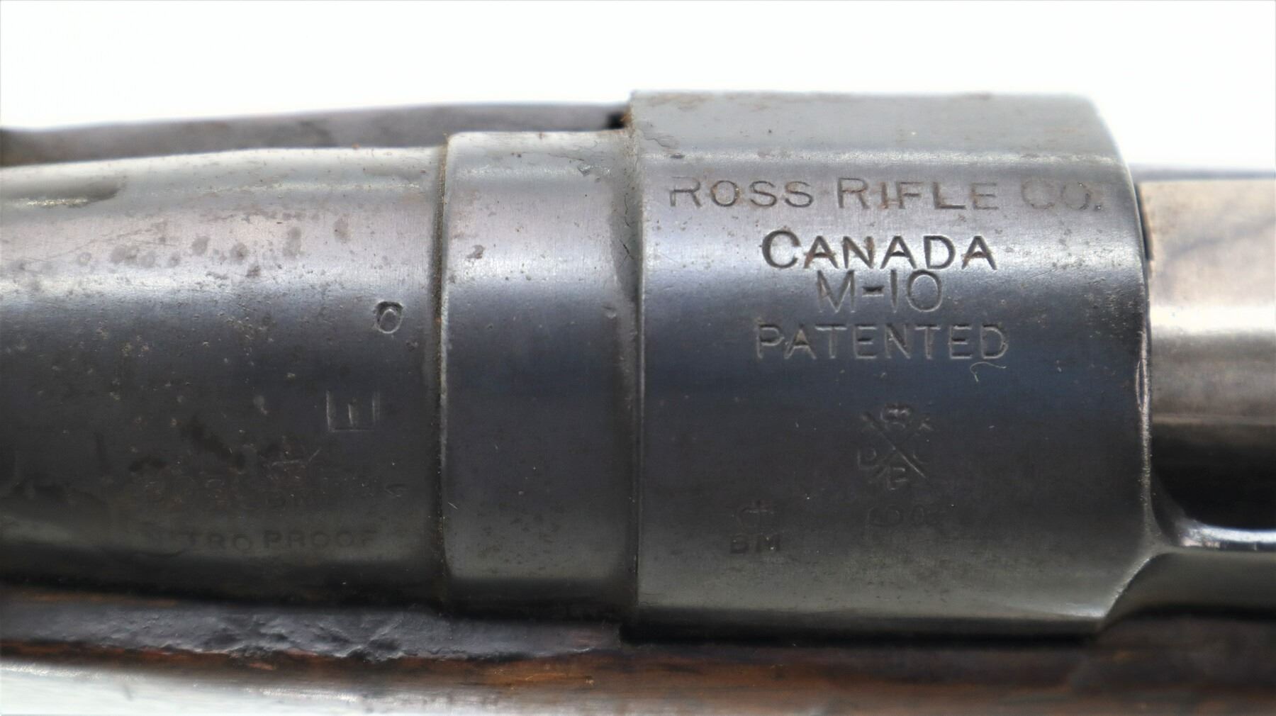 5/10, ROSS RIFLE, MODEL: MKIII, CALIBER:303 BR, BORE IS FAIR, WORN, LIGHT PITTING. BLADE FRONT SIGHT WITH RAMP, HOOD SCREWS PRESENT, MISSING REAR SIGHT BASE PRESENT, MAGAZINE CUT OFF, COLOUR CASE HARDENED PINNED BOLT WITH FLAG SAFETY. TWO PIECE SPORTERIZED WOOD STOCKS, SMOOTH STEEL BUTT PLATE WITH TRAP, SLING SWIVELS. RIFLE IS A GOOD CANDIDATE FOR RESTORATION. METAL FINISH SHOWS SOME LIGHT RUST SPECKLES, SCRATCHES, HANDLING MARKS AND WEAR. STOCKS ARE CRACKED, CHIPPED WITH HANDLING MARKS AND WEAR. , ACTION: STRAIGHT PULL RIFLE, BARREL LENGTH: 30.5", SERIAL # NA, CONDITION: 5/10, CLASS: CANADIAN NON RESTRICTED