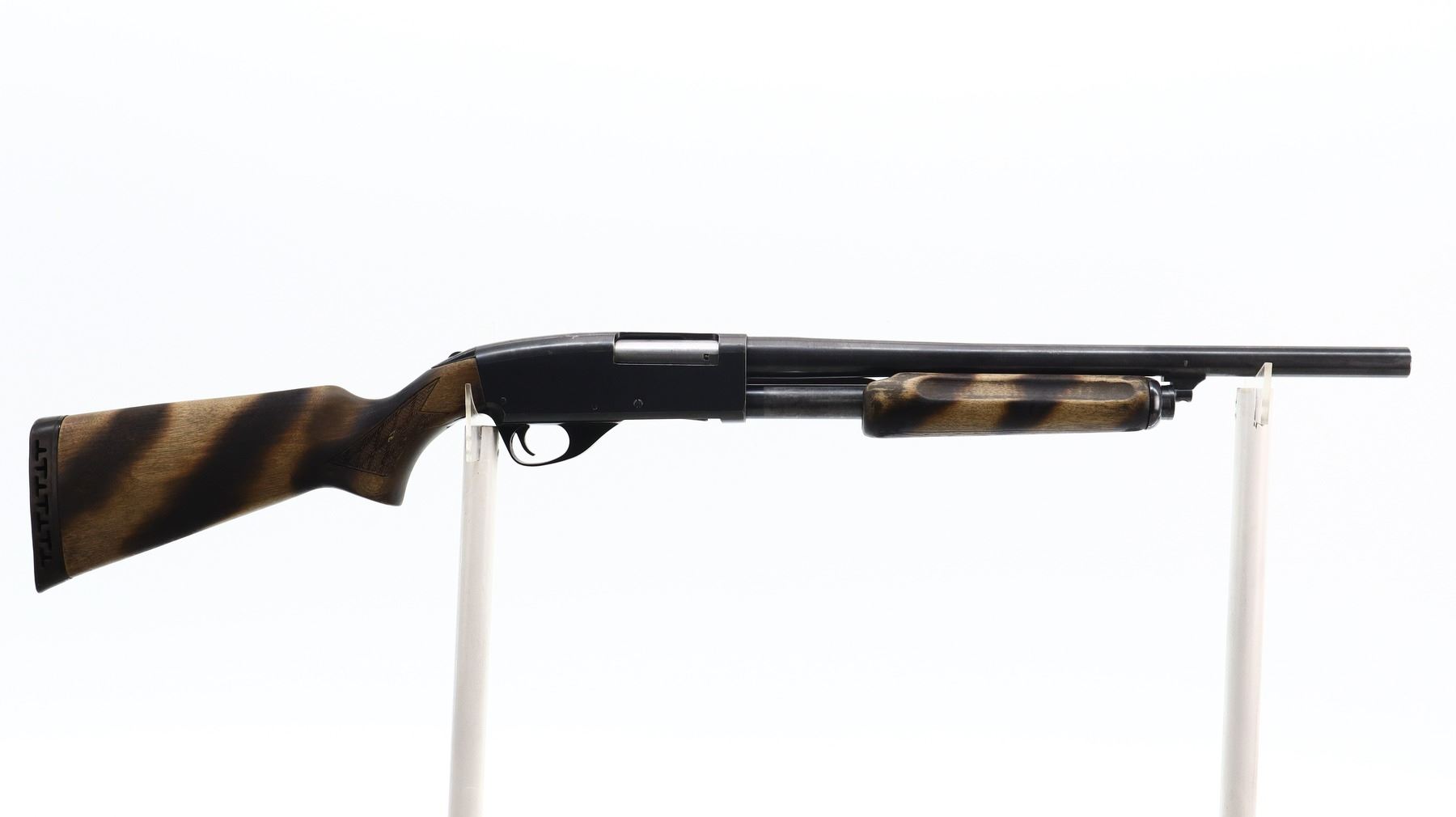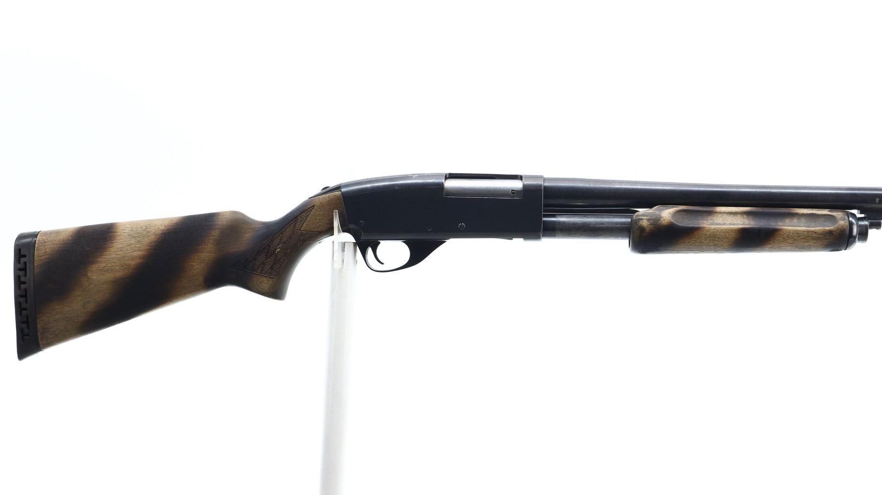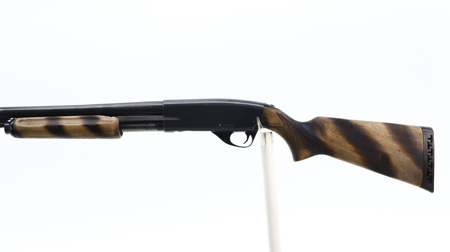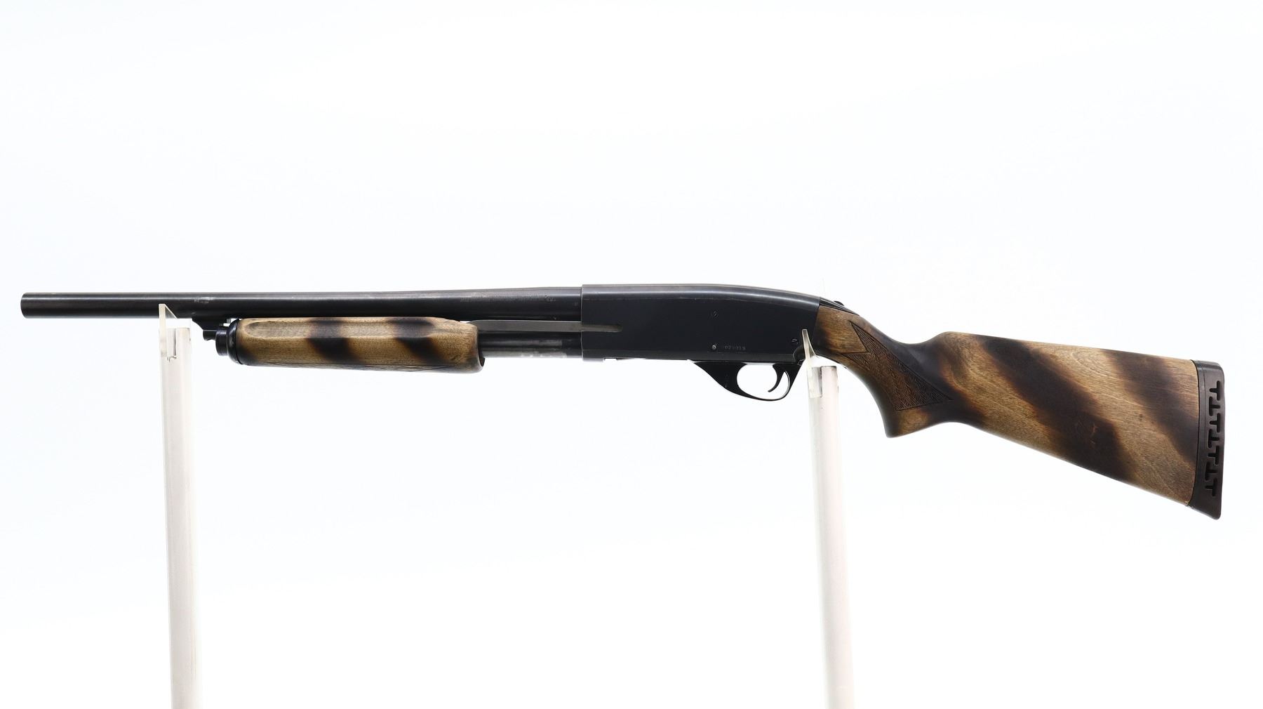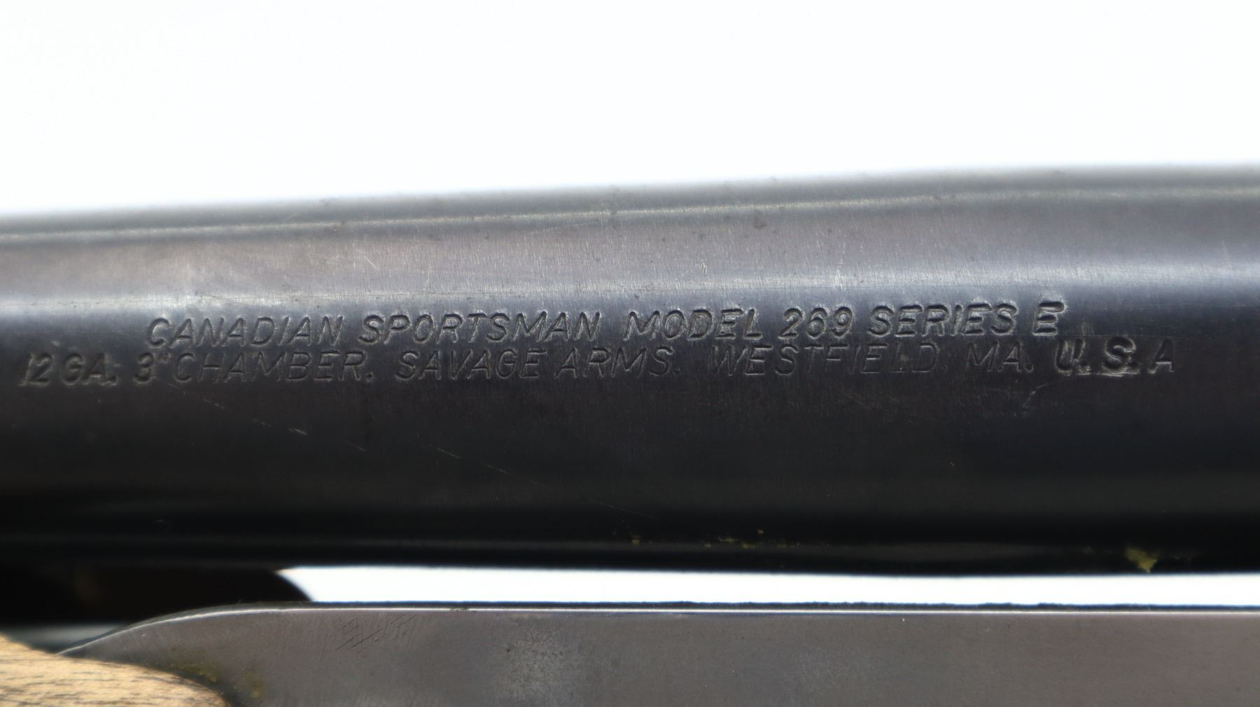 4/10, SAVAGE, MODEL: 269 SERIES E , CALIBER:12 G X 3", BORE IS VERY GOOD. FIXED CYLINDER CHOKE. BARREL SHORTENED NO FRONT BEAD, BLUED FINISH, TANG SAFETY. TWO PIECE WOOD STOCKS, CHECKERED FOREARM AND PISTOL GRIP, BROWN VENTED RUBBER RECOIL PAD, STOCKS HAVE BEEN DARKENED WITH A TORCH. METAL FINISH SHOWS SOME SCRATCHES, HANDLING MARKS AND WEAR. STOCKS SHOW SOME MARKS, SCRATCHES AND WEAR. , ACTION: PUMP ACTION SHOTGUN, BARREL LENGTH: 19", SERIAL # D029019, CONDITION: 4/10, CLASS: CANADIAN NON RESTRICTED