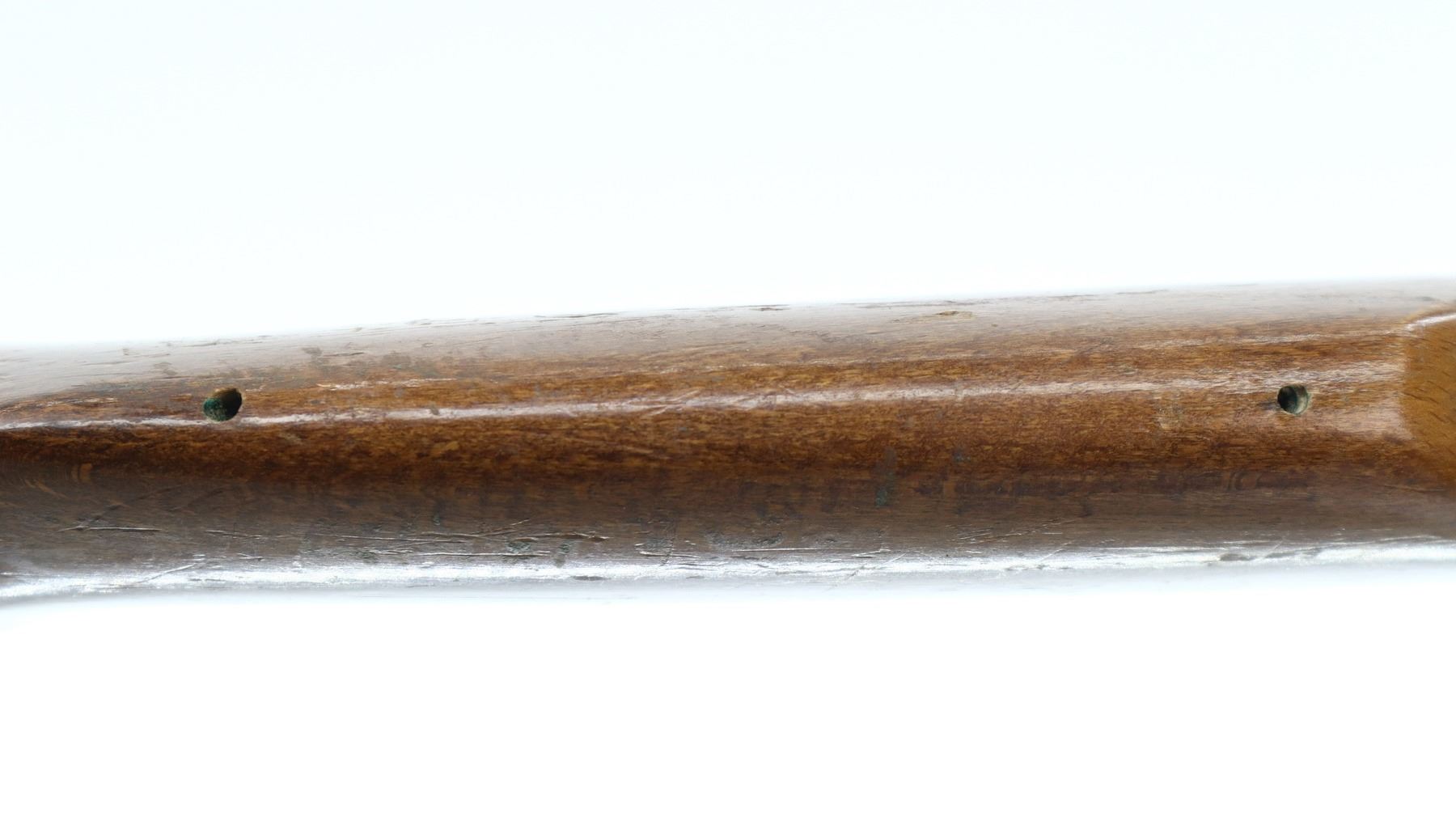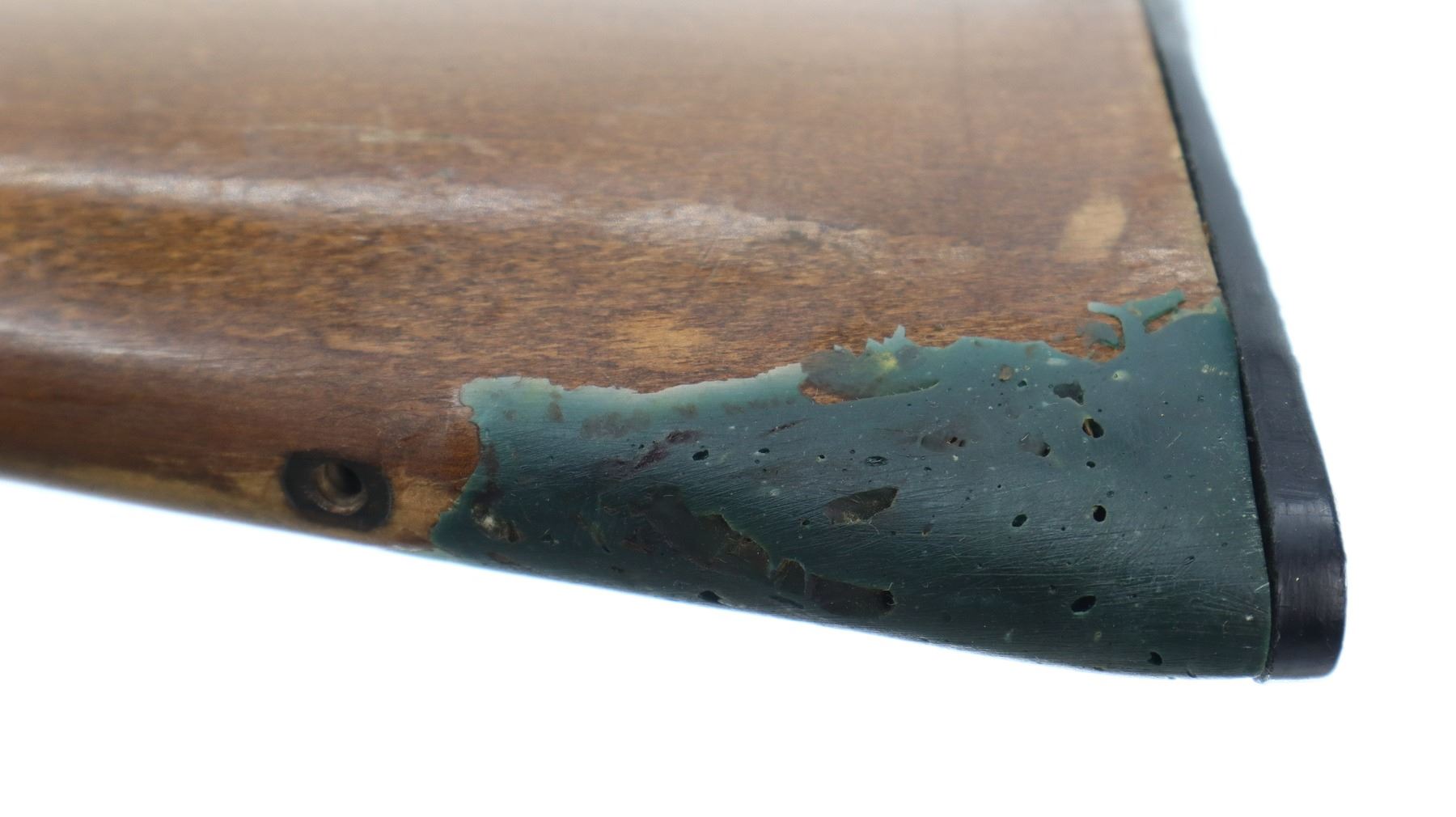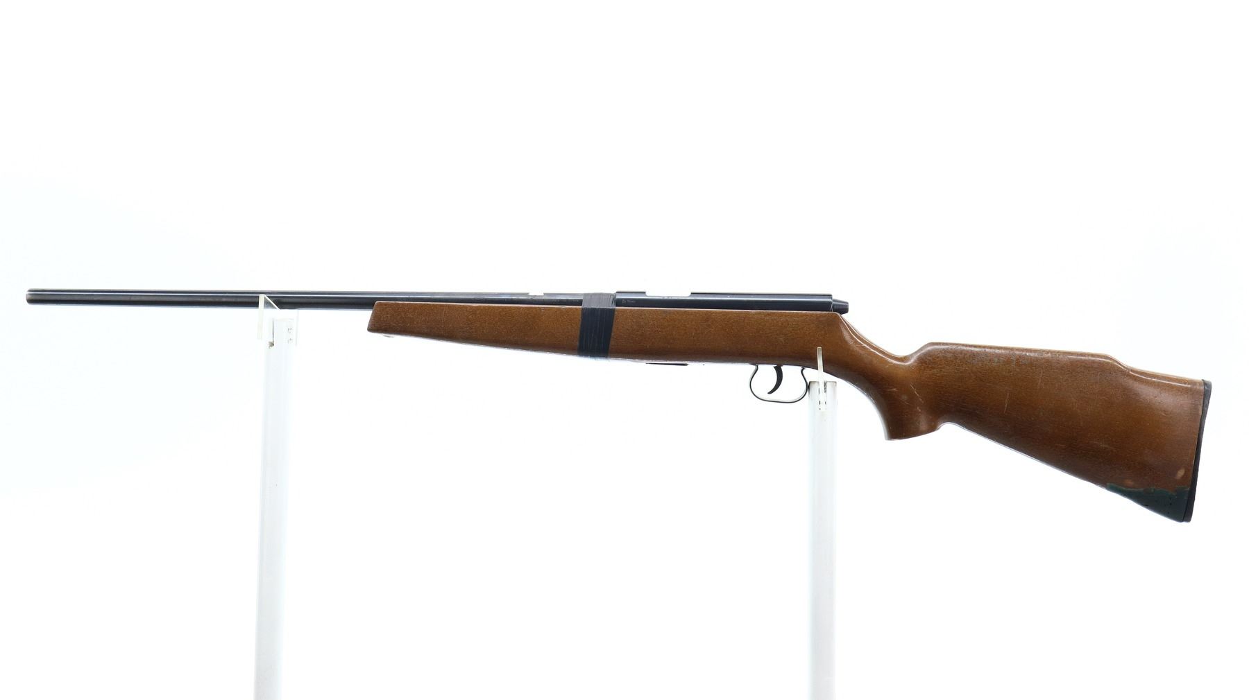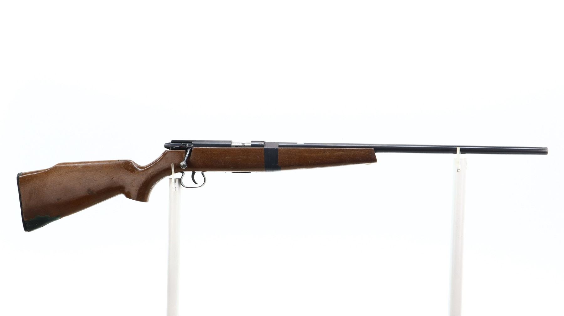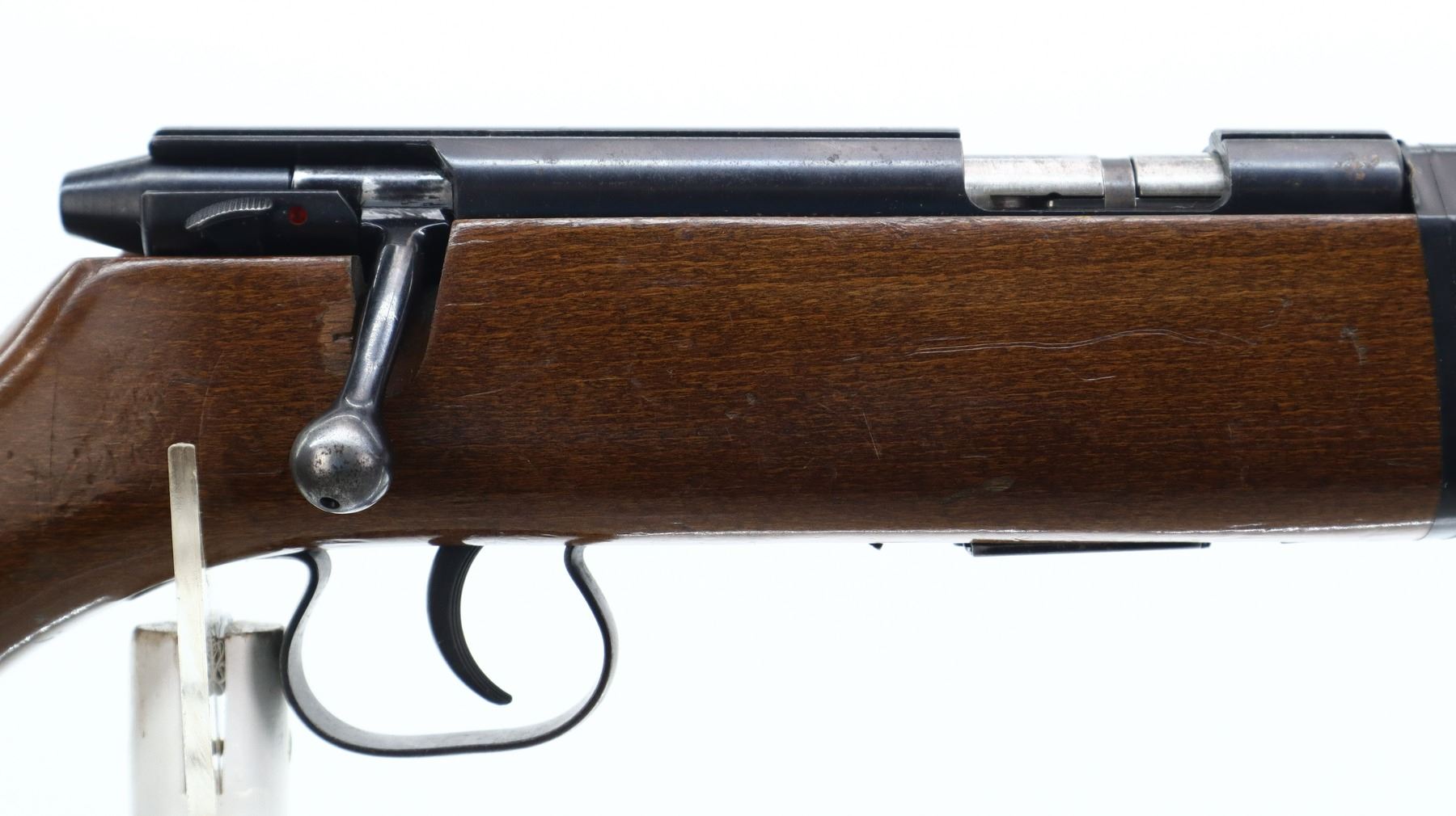 3/10, KRICO, MODEL: REPEATER, CALIBER:22 MAGNUM, COMES WITH MAGAZINE, BORE IS VERY GOOD. ROUND BARREL, FRONT AND REAR SIGHTS REMOVED, BLUED FINISH, RECEIVER GROOVED FOR SCOPE MOUNT. ONE PIECE SMOOTH WOOD STOCK, PISTOL GRIP, TEXTURED BLACK POLYMER RECOIL PAD, STOCK BROKEN AT TOE REPAIRED WITH GREEN EPOXY. MISSING ACTION SCREWS, STOCK HELD ON WITH BLACK TAPE. SWIVELS REMOVED, HOLES ARE PRESENT. METAL FINISH SHOWS SOME SCRATCHES, HANDLING MARKS AND WEAR. STOCK SHOWS SOME MARKS, SCRATCHES AND WEAR. , ACTION: BOLT ACTION RIFLE, BARREL LENGTH: 22.5", SERIAL # 503884, CONDITION: 3/10, CLASS: CANADIAN NON RESTRICTED