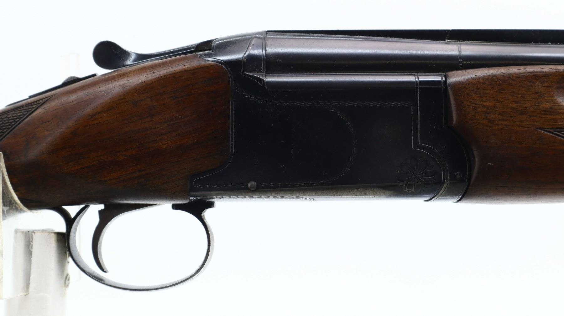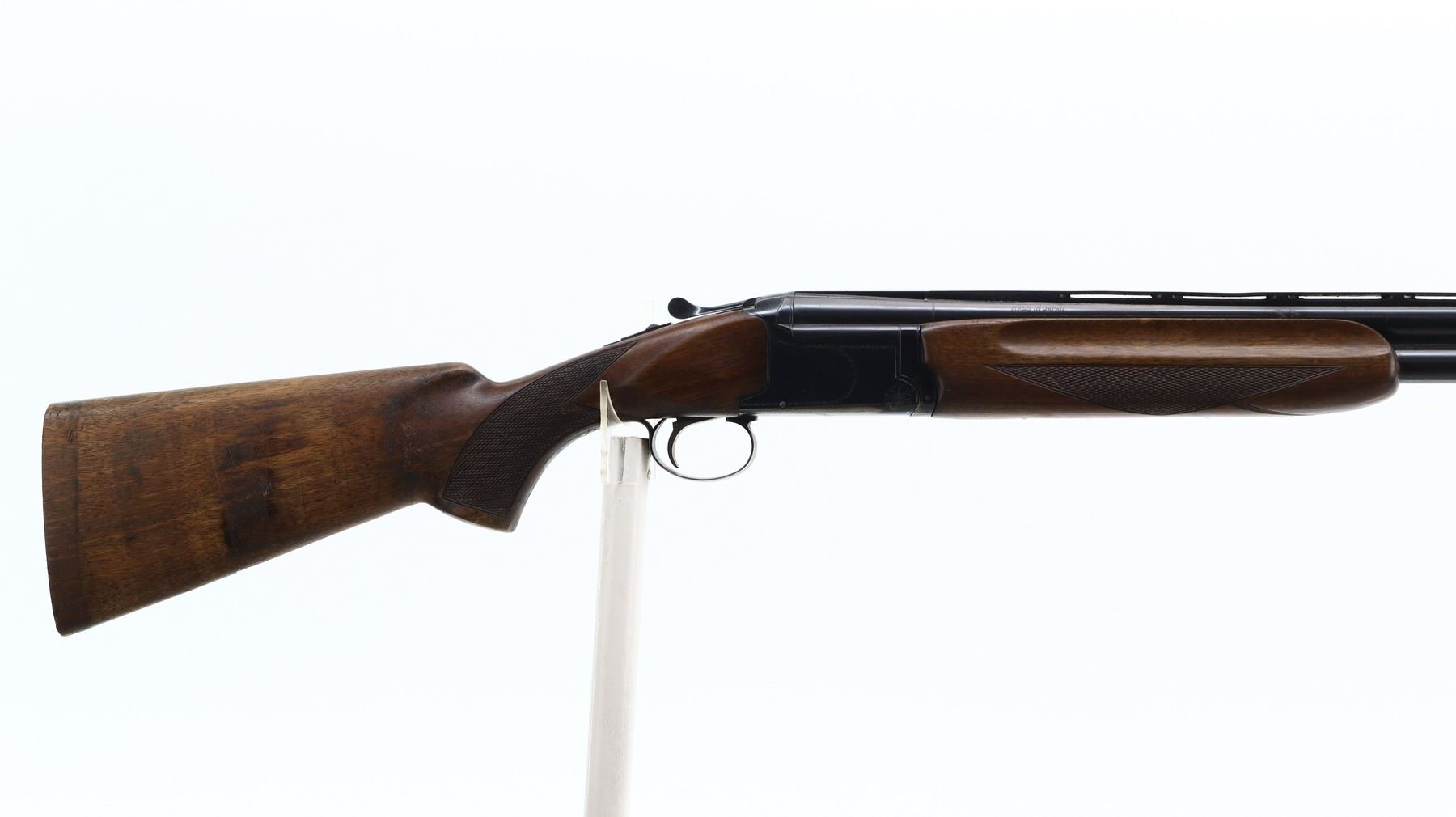 4+/10, NIKKO, MODEL: 5000, CALIBER:12 G X 2 3/4", BORES ARE VERY GOOD. FIXED CYLINDER CHOKES. WHITE FRONT AND MID RIB BEADS, BLUED BARRELS WITH WIDE VENT RIB (DENTED), MANUAL SELECTIVE SAFETY, EJECTORS, SINGLE MECHANICAL TRIGGER. TWO PIECE WOOD STOCKS, CHECKERED FOREARM (LOOSE), PISTOL GRIP CHIPPED AND CRACKED BEHIND RECEIVER, MISSING BUTT PLATE AND SWIVELS. METAL FINISH SHOWS SOME SCRATCHES, HANDLING MARKS AND WEAR. STOCKS SHOW SOME MARKS, SCRATCHES AND WEAR. , ACTION: HINGED OVER UNDER SHOTGUN, BARREL LENGTH: 27", SERIAL # K359288, CONDITION: 4+/10, CLASS: CANADIAN NON RESTRICTED