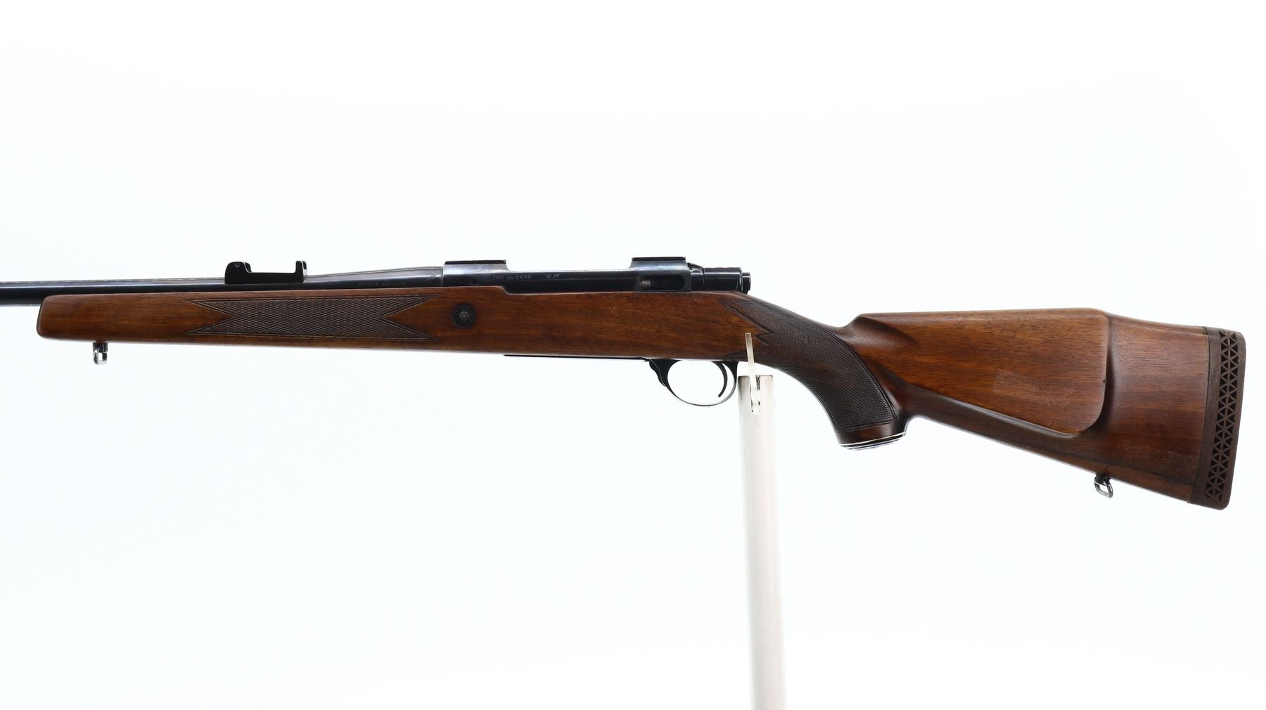 4/10, SAKO, MODEL: L61R, CALIBER:30-06 SPRG, BORE IS FAIR, WORN. TAPERED ROUND BARREL, FRONT SIGHT AND BASE REMOVED, MISSING REAR SIGHT BASE IS PRESENT, BLUED FINISH, RECEIVER GROOVED FOR FACTORY SCOPE MOUNTS, MISSING COMPLETE BOLT STOP ASSEMBLY. ONE PIECE WOOD STOCK, CHECKERED FOREARM AND PISTOL GRIP, CHEEK REST, BROWN VENTED RUBBER RECOIL PAD, 13.75" LOP, GRIP CAP, HINGED FLOOR PLATE, SLING SWIVELS. METAL FINISH SHOWS SCRATCHES, HANDLING MARKS AND WEAR. STOCK SHOWS MARKS, SCRATCHES AND WEAR. , ACTION: BOLT ACTION RIFLE, BARREL LENGTH: 24", SERIAL # 6690, CONDITION: 4/10, CLASS: CANADIAN NON RESTRICTED
