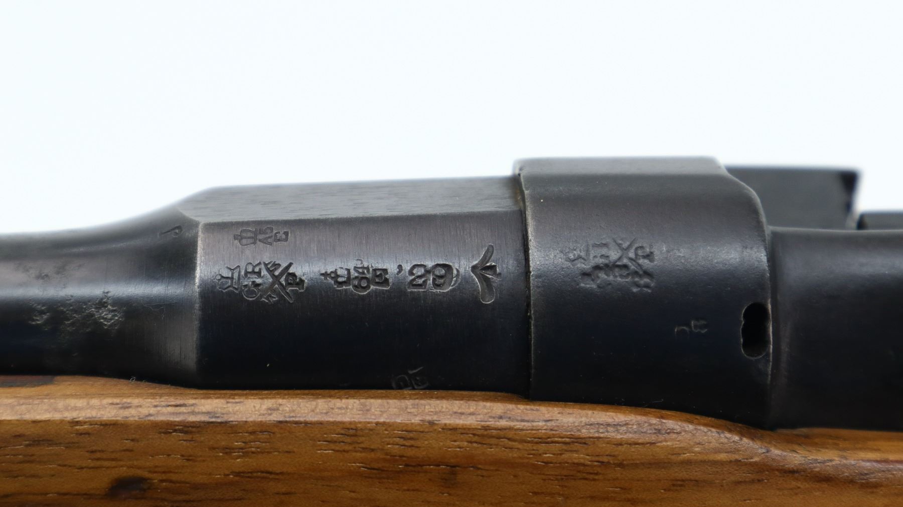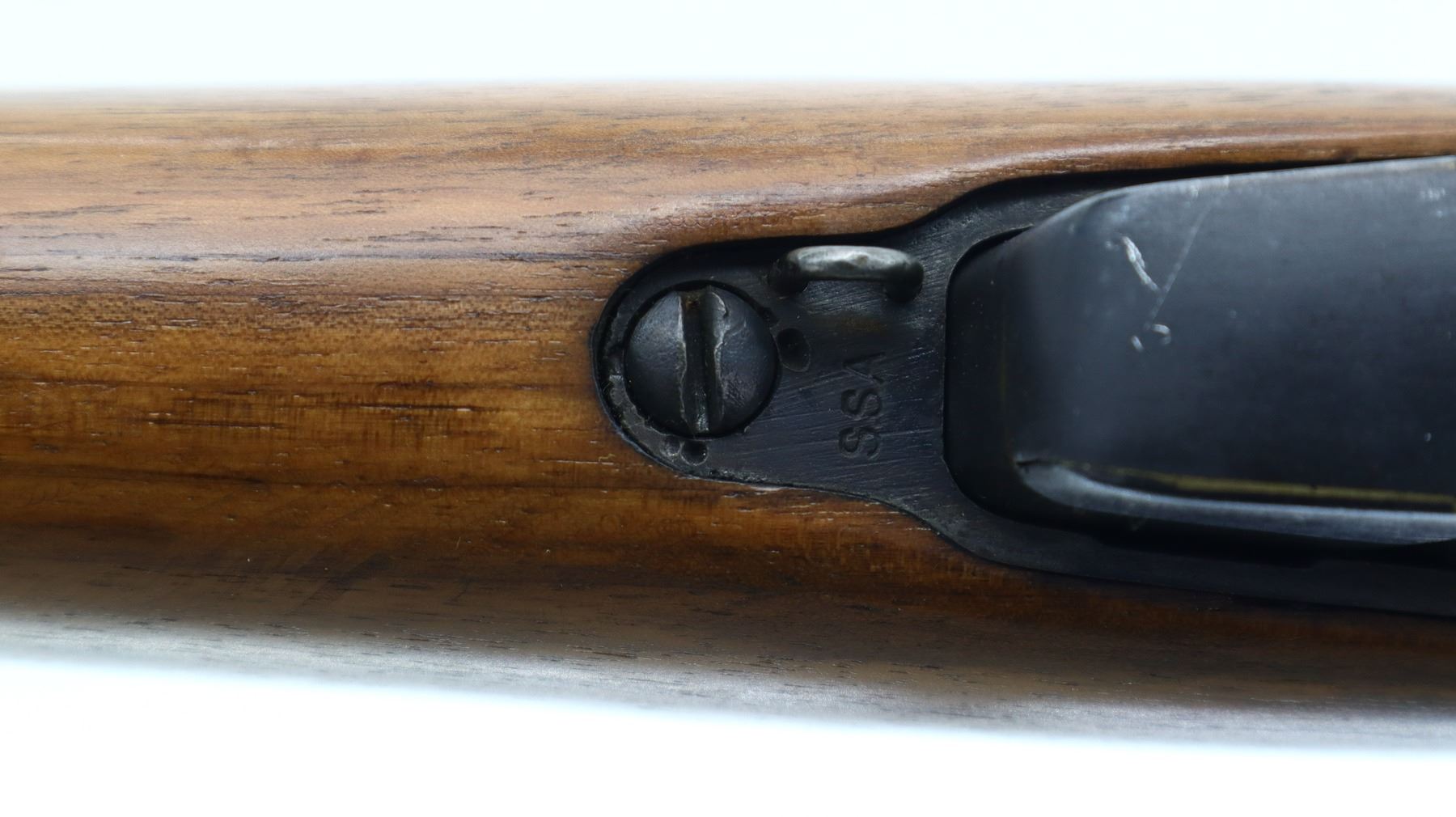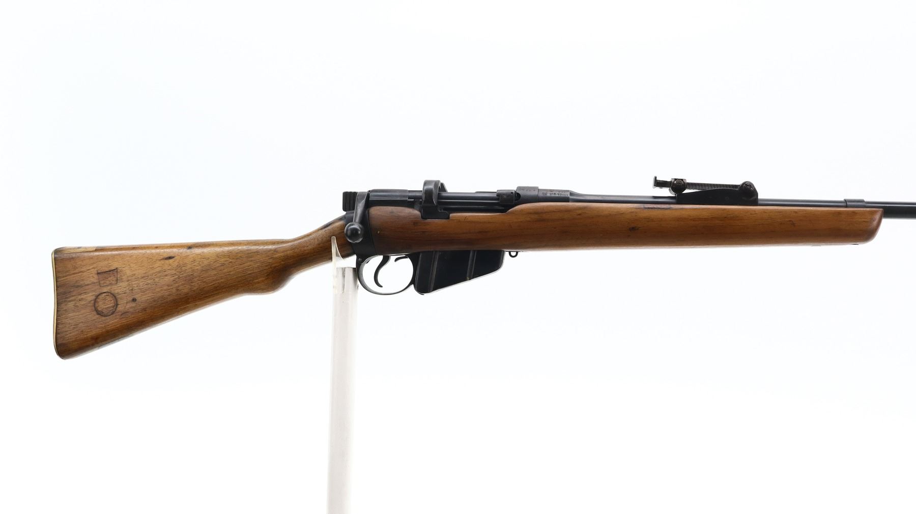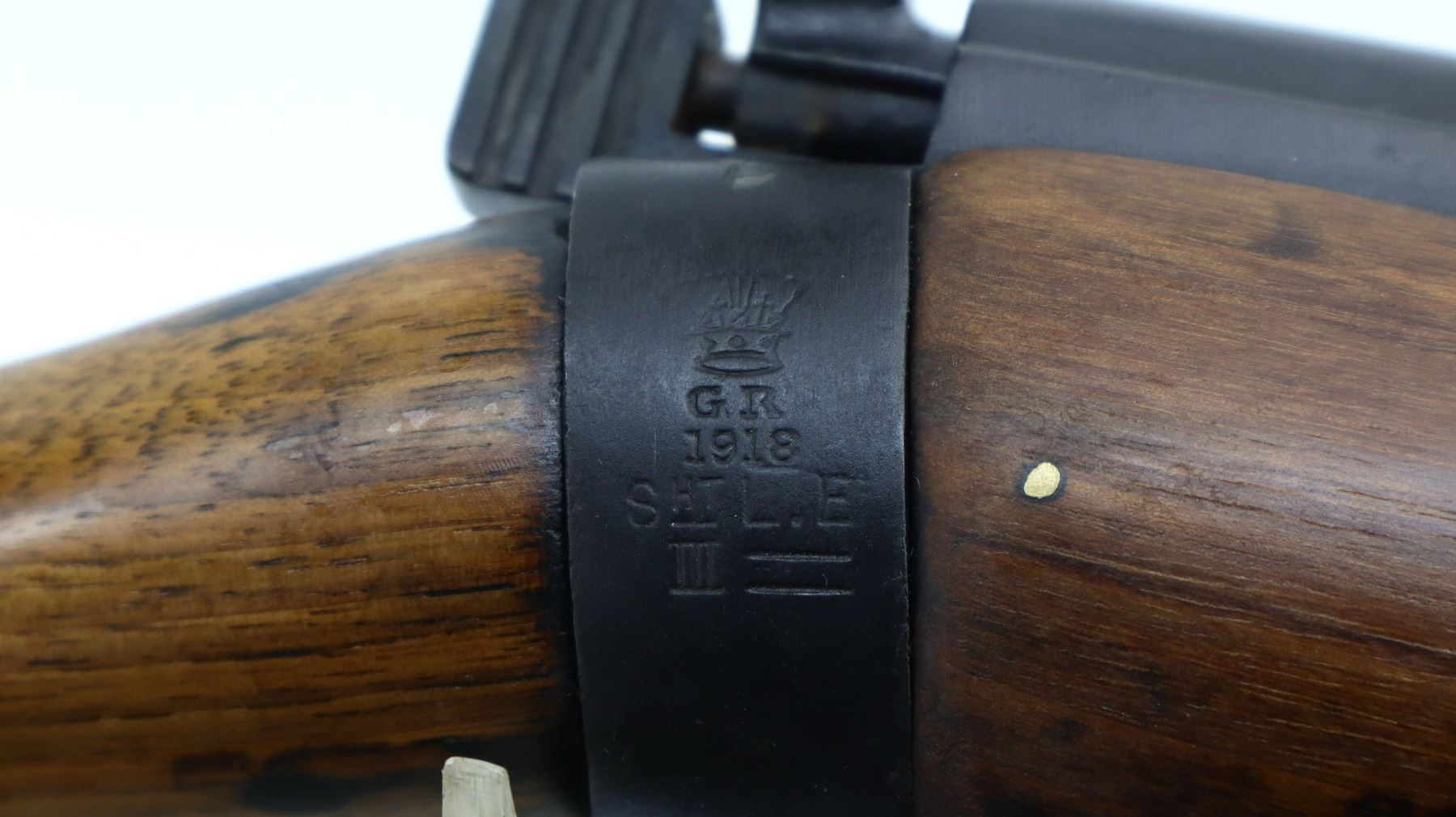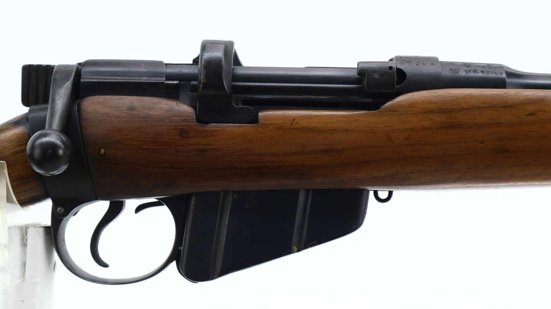 4/10, LEE ENFIELD , MODEL: NO1 MKIII SPORTER, CALIBER:303 BR, COMES WITH MAGAZINE, BORE IS FAIR, WORN, LIGHT PITTING. MANUFACTURED BY SSA 1918, BOLT MISMATCHED. BLADE FRONT SIGHT WITH RAMP, ADJUSTABLE U NOTCHED REAR SIGHT. TWO PIECE SPORTERIZED SMOOTH WOOD STOCKS, PISTOL GRIP, SMOOTH BRASS BUTT PLATE, BUTT STOCK HAS VARIOUS REPAIRS. METAL FINISH SHOWS SOME SCRATCHES, HANDLING MARKS AND WEAR. STOCKS SHOW SOME MARKS, SCRATCHES AND WEAR. , ACTION: BOLT ACTION RIFLE, BARREL LENGTH: 25.25", SERIAL # 7264, CONDITION: 4/10, CLASS: CANADIAN NON RESTRICTED