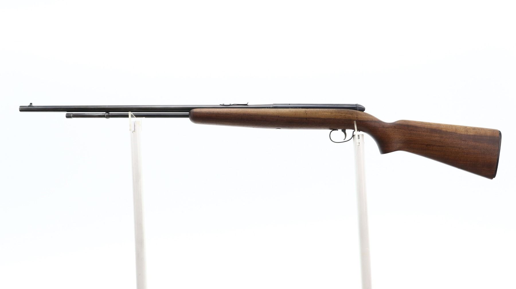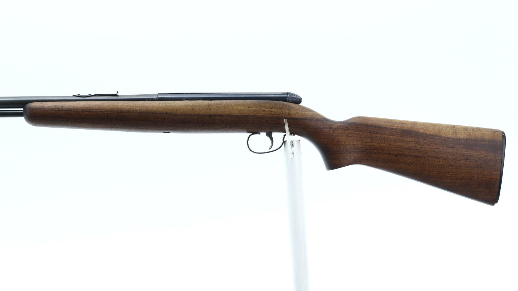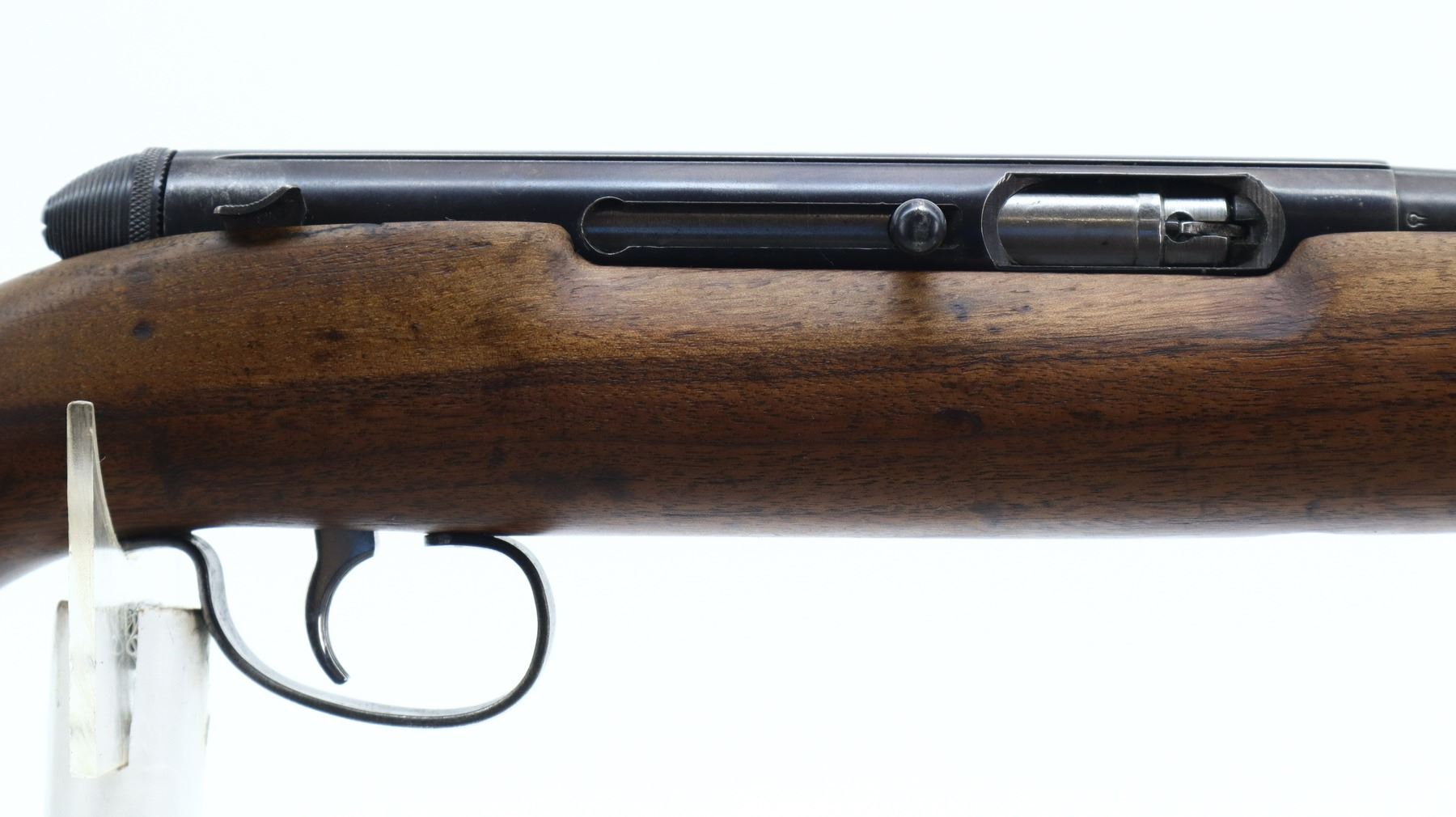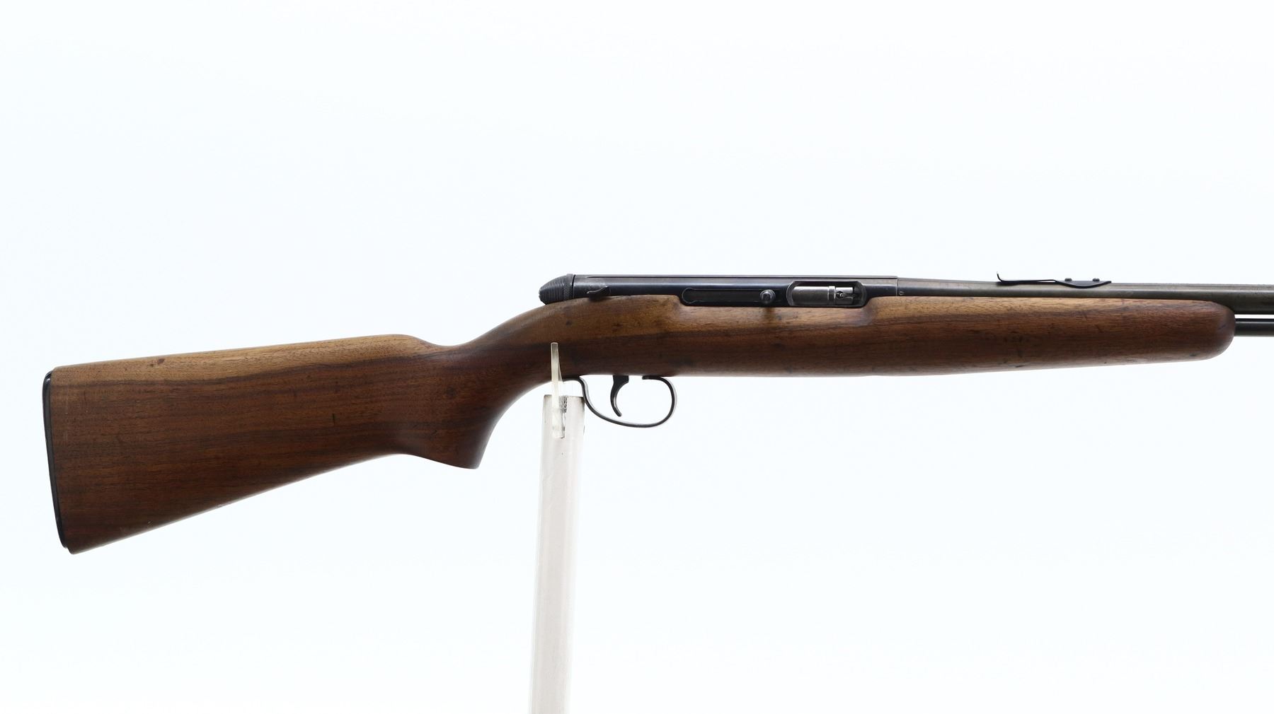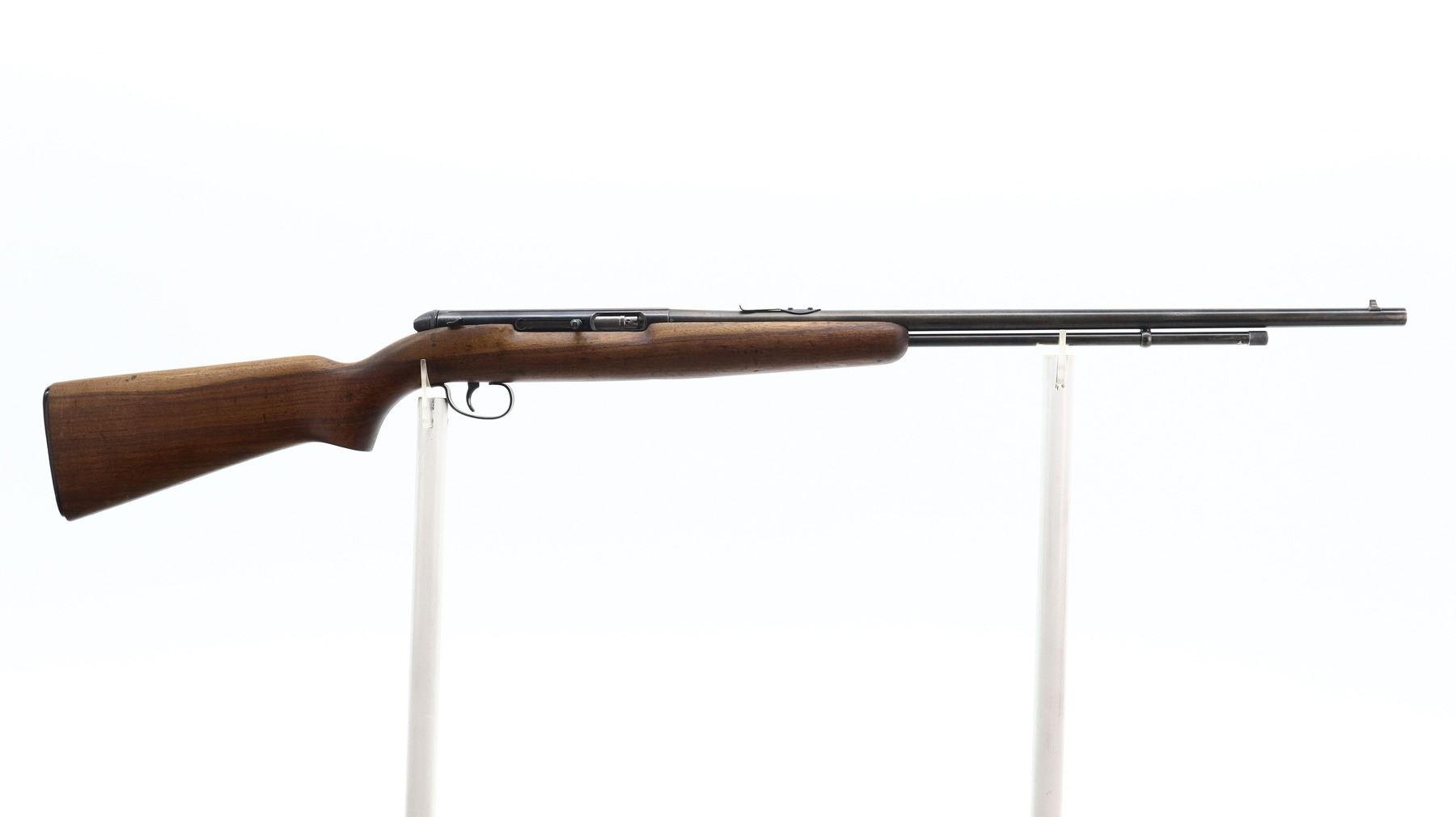 4/10, REMINGTON, MODEL: 550-1, CALIBER:22 LR, BORE IS POOR, RINGED. BLADE FRONT SIGHT, U NOTCHED REAR SIGHT MISSING ELEVATOR, BARREL STAMPED 0001, RECEIVER GROOVED FOR SCOPE MOUNT. ONE PIECE SMOOTH WOOD STOCK, PISTOL GRIP, CHECKERED BLACK POLYMER BUTT PLATE. 3/4 LENGTH MAG TUBE. METAL FINISH FADING WITH SCRATCHES, HANDLING MARKS AND WEAR. STOCK SHOWS MARKS, SCRATCHES AND WEAR. , ACTION: SEMI AUTOMATIC RIFLE, BARREL LENGTH: 24", SERIAL # NA, CONDITION: 4/10, CLASS: CANADIAN NON RESTRICTED