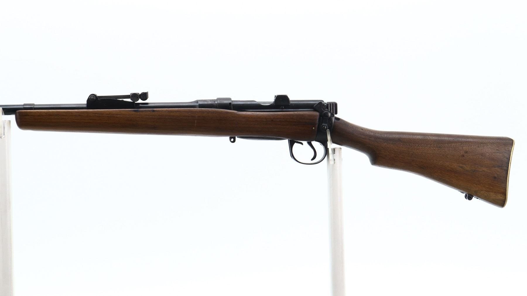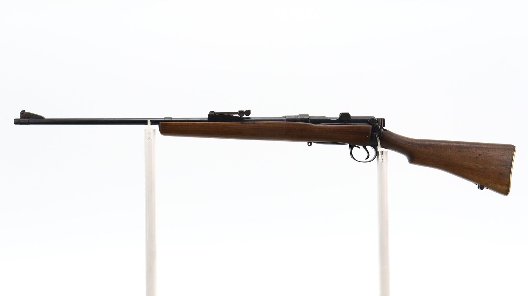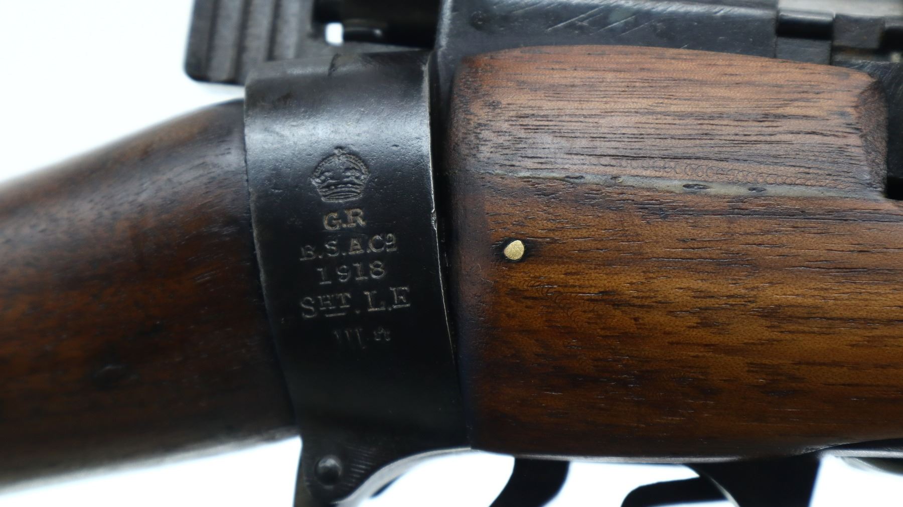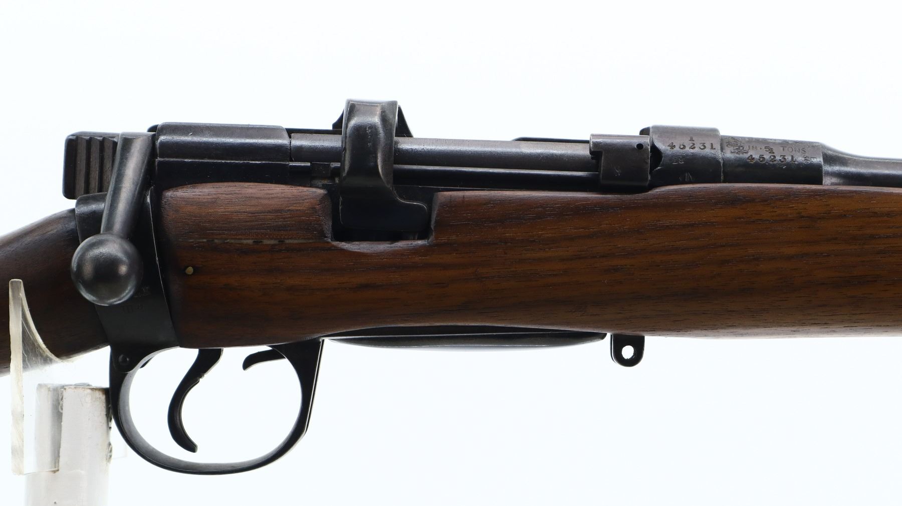 4/10, LEE ENFIELD , MODEL: NO1 MKIII* SPORTER, CALIBER:303 BR, COMES WITH MAGAZINE, BORE IS FAIR, WORN, LIGHT PITTING. MANUFACTURED BY BSA 1918, BOLT MISMATCHED. BLADE FRONT SIGHT WITH RAMP, ADJUSTABLE U NOTCHED REAR SIGHT, RECEIVER DRILLED AND TAPPED FOR SCOPE MOUNT. TWO PIECE SMOOTH SPORTERIZED WOOD STOCKS, PISTOL GRIP, SMOOTH BRASS BUTT PLATE WITH TRAP, STOCK DISK REPLACED, SWIVELS REMOVED BASE AND HOLE PRESENT. METAL FINISH SHOWS SOME SCRATCHES, HANDLING MARKS AND WEAR. STOCKS SHOW SOME MARKS, SCRATCHES AND WEAR. , ACTION: BOLT ACTION RIFLE, BARREL LENGTH: 25.25", SERIAL # I45231, CONDITION: 4/10, CLASS: CANADIAN NON RESTRICTED