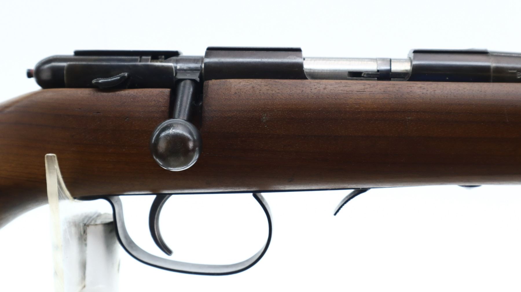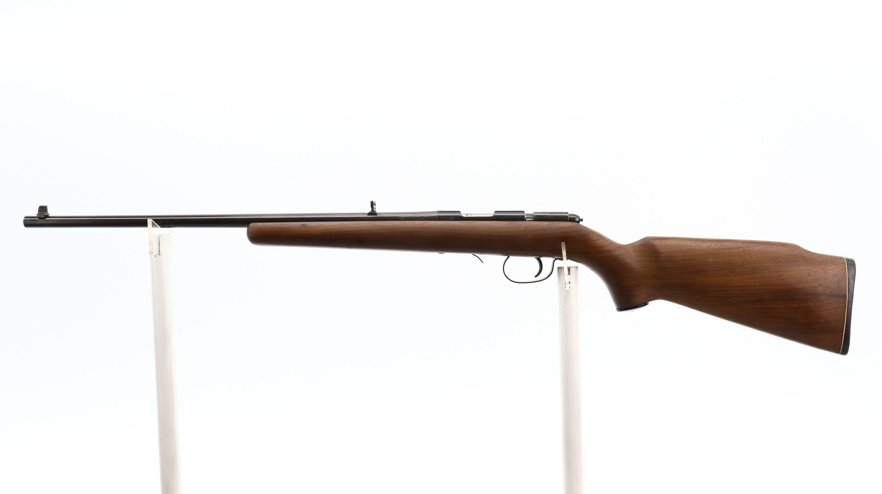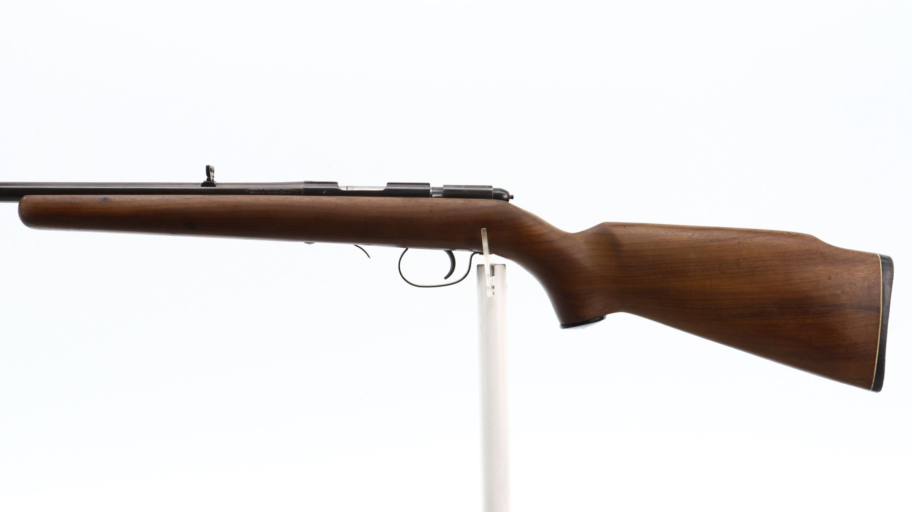 3/10, CIL, MODEL: 171, CALIBER:22 LR, DOES NOT COME WITH MAGAZINE, BORE IS VERY GOOD. BLADE FRONT SIGHT, ADJUSTABLE FOLDING U NOTCHED REAR SIGHT, RECEIVER GROOVED FOR SCOPE MOUNT. ONE PIECE SMOOTH WOOD STOCK CRACKED IN FRONT OF BOLT HANDLE SLOT. PISTOL GRIP WITH CAP, GROOVED BLACK POLYMER BUTT PLATE. METAL FINISH SHOWS SCRATCHES, HANDLING MARKS AND WEAR. STOCK SHOWS MARKS, SCRATCHES AND WEAR. , ACTION: BOLT ACTION RIFLE, BARREL LENGTH: 21", SERIAL # 53182, CONDITION: 3/10, CLASS: CANADIAN NON RESTRICTED