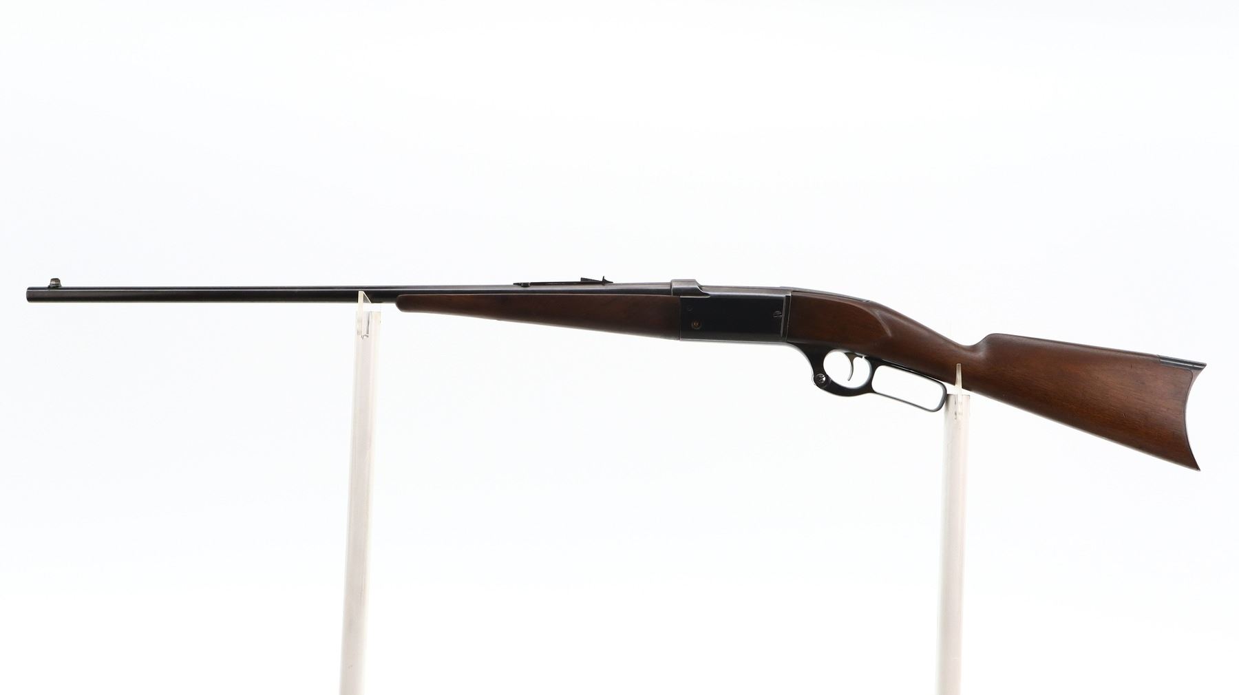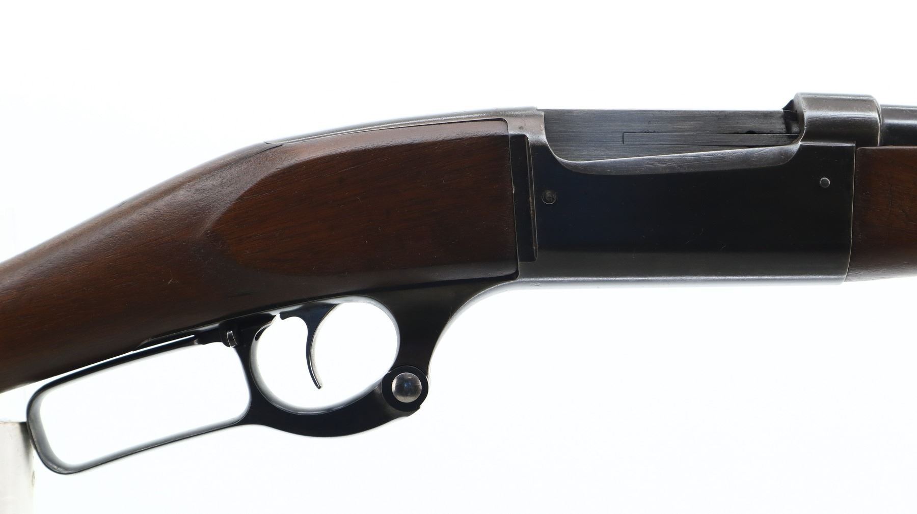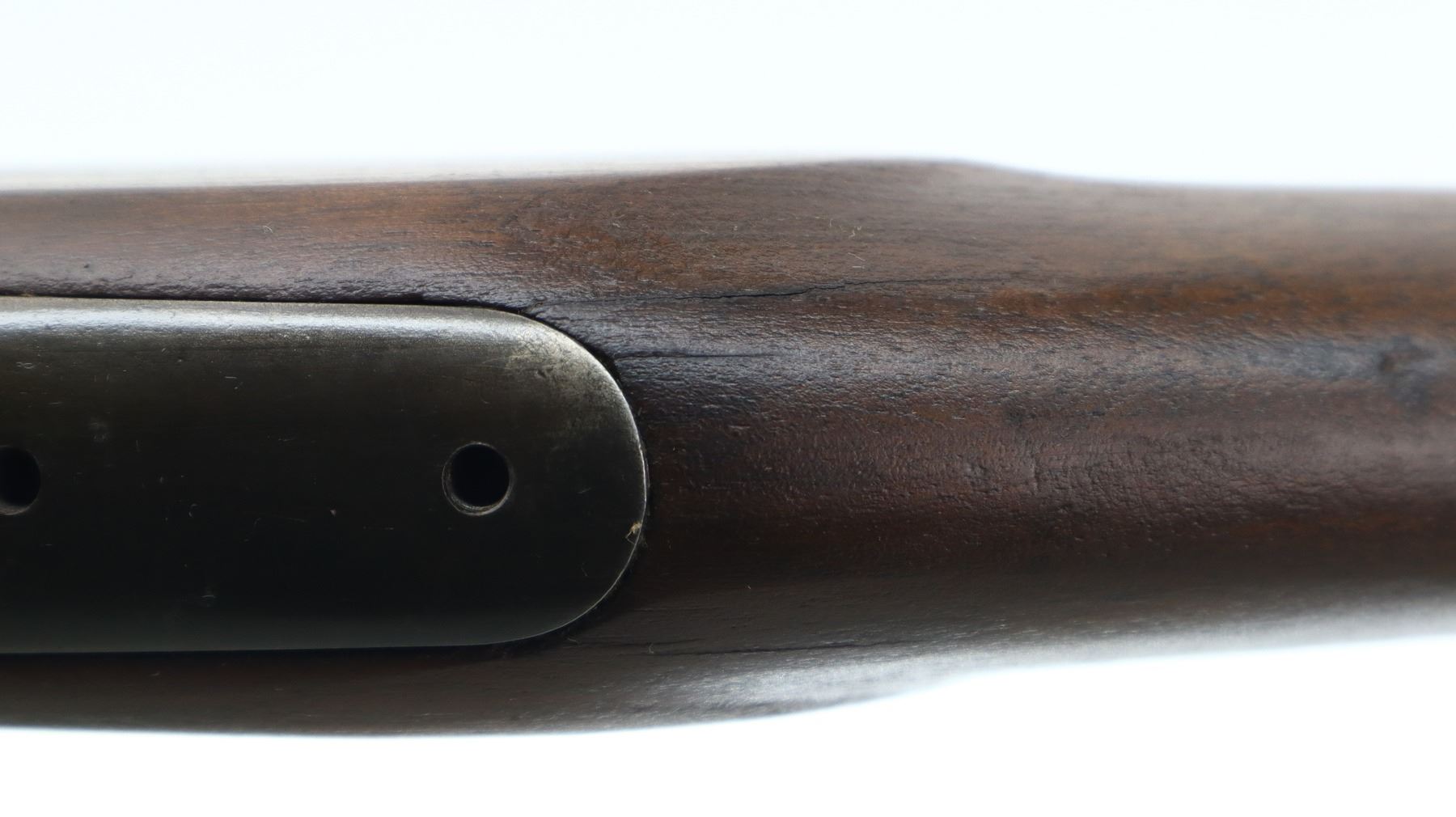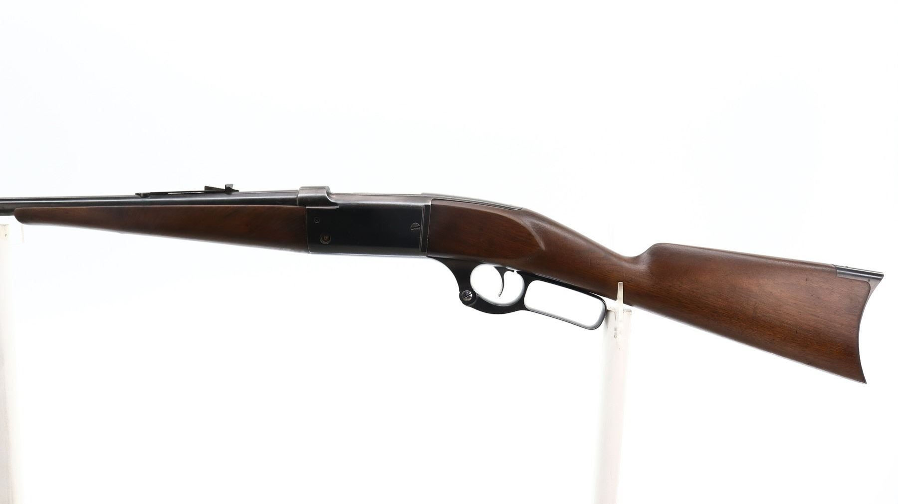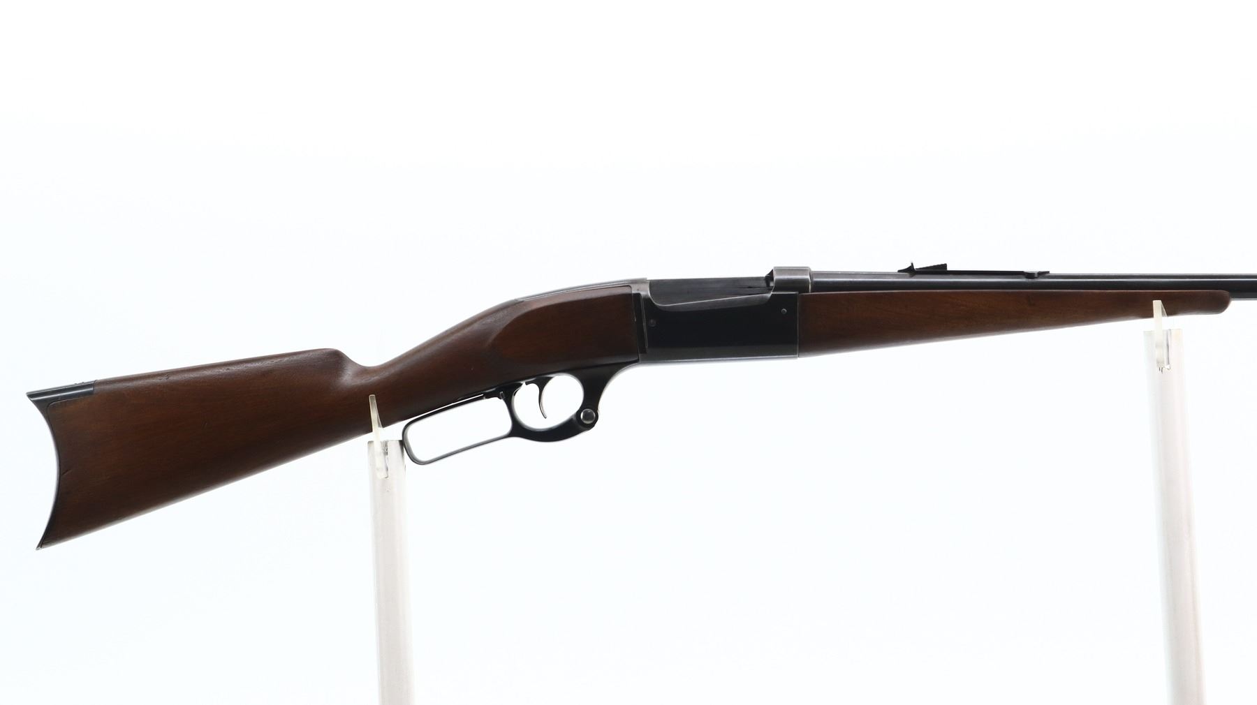 3+/10, SAVAGE, MODEL: 1899, CALIBER:303 SAV, BORE IS FAIR, WORN, PITTED. BLADE FRONT SIGHT, ADJUSTABLE U NOTCHED REAR SIGHT, METAL HAS BEEN POLISHED AND REBLUED, BOLT IS MISSING COCKING INDICATOR, TANG DRILLED AND TAPPED FOR PEEP SIGHT. TWO PIECE SMOOTH WOOD STOCKS, STRAIGHT GRIP CRACKED BEHIND RECEIVER, SMOOTH CURVED STEEL BUTT PLATE. METAL FINISH SHOWS PITTING, SCRATCHES, HANDLING MARKS AND WEAR. STOCKS SHOW MARKS, SCRATCHES AND WEAR. , ACTION: LEVER ACTION RIFLE, BARREL LENGTH: 26", SERIAL # 26323, CONDITION: 3+/10, CLASS: CANADIAN NON RESTRICTED