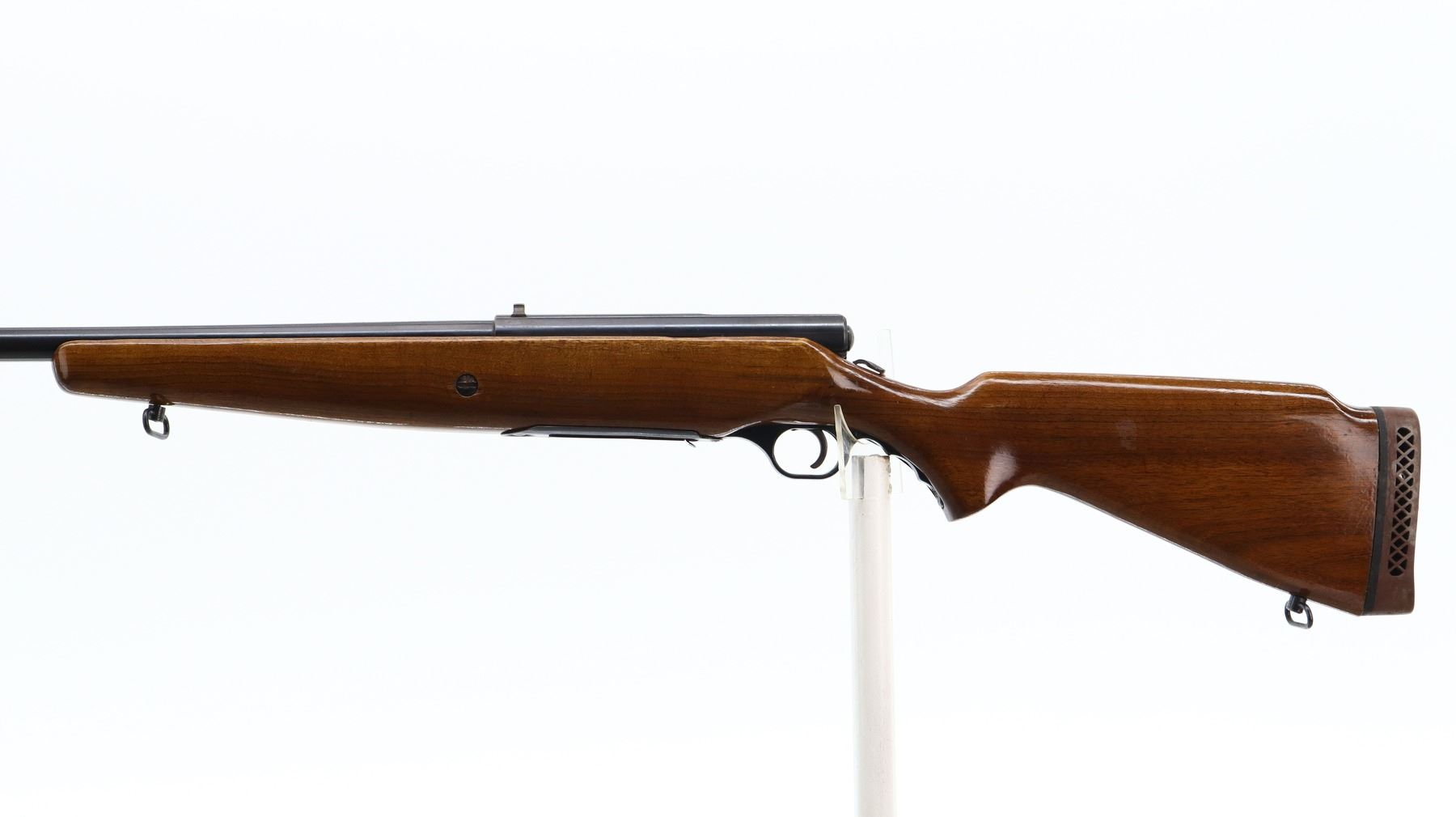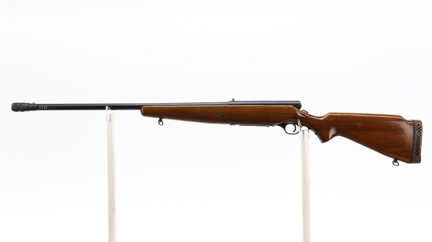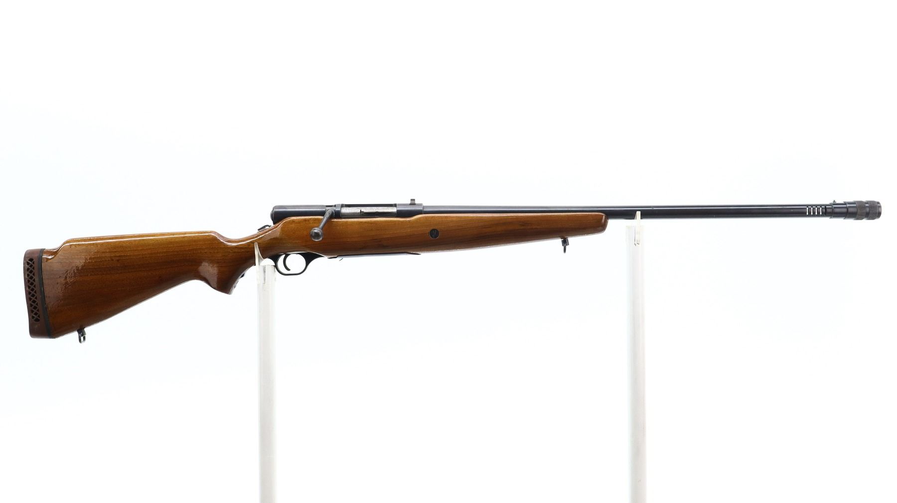 4+/10, MOSSBERG, MODEL: 190KB, CALIBER:16 G X 2 3/4", DOES NOT COME WITH MAGAZINE, BORE VERY GOOD. ADJUSTABLE CHOKE. SILVER BEAD, PORTED ROUND BARREL, BLUED FINISH. SMOOTH ONE PIECE WOOD STOCK, PISTOL GRIP, BROWN VENTED RUBBER RECOIL PAD, SLING SWIVELS. METAL FINISH SHOWS SOME SCRATCHES, HANDLING MARKS AND WEAR. STOCK SHOWS MARKS, SCRATCHES AND WEAR. , ACTION: BOLT ACTION SHOTGUN, BARREL LENGTH: 26", SERIAL # NA, CONDITION: 4+/10, CLASS: CANADIAN NON RESTRICTED