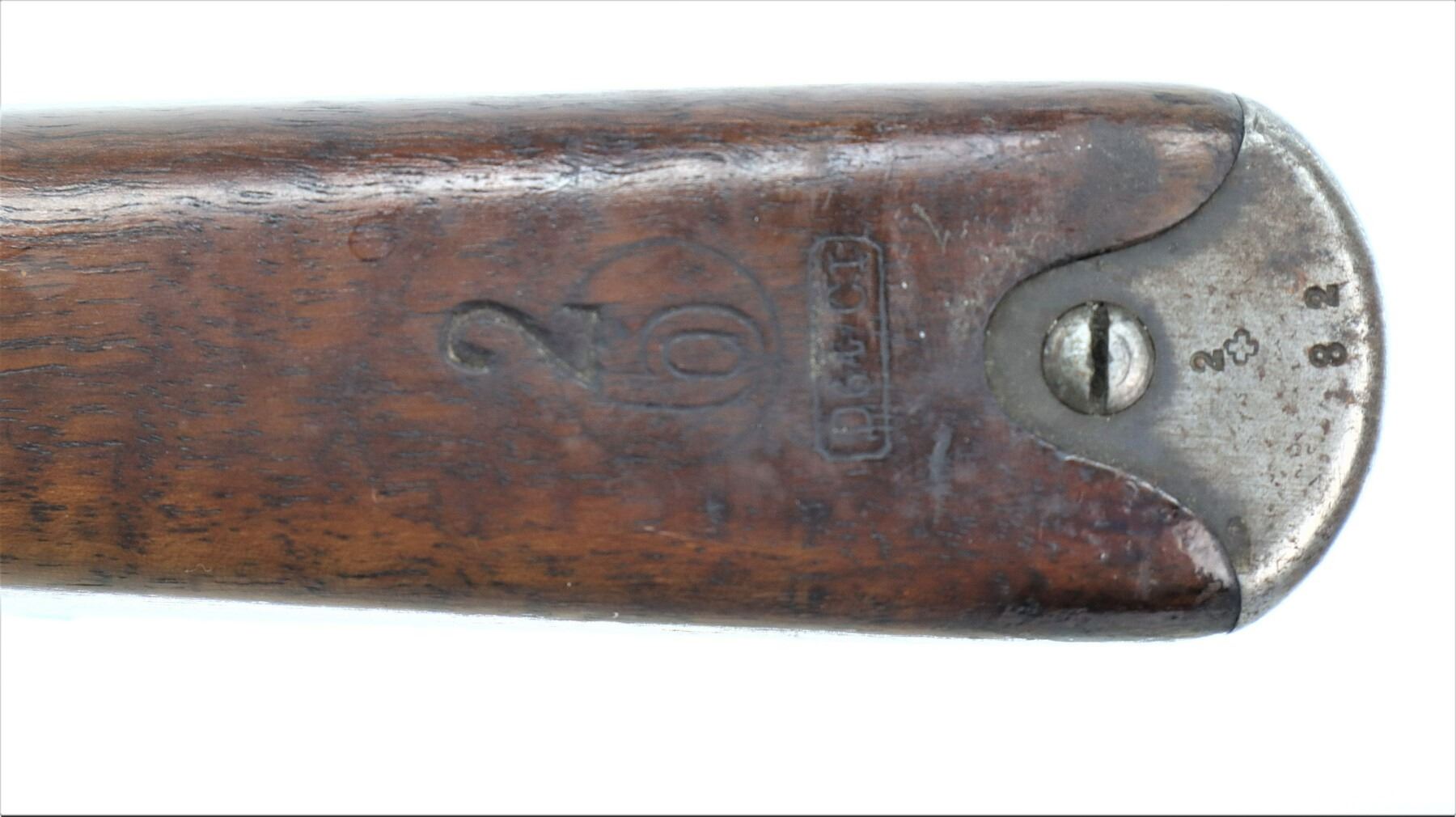 4/10, SCHMIDT RUBEN, MODEL: 1889 SPORTER, CALIBER:7.5 X 53.5 SWISS, COMES WITH MAGAZINE, BORE IS VERY GOOD. VISIBLE NUMBERS MATCH. MODIFIED BLADE FRONT SIGHT WITH RAMP, MODIFIED U NOTCHED REAR SIGHT, SILVER BOLT WITH CRACKED BROWN POLYMER BOLT KNOBS. ONE PIECE SPORTERIZED WOOD STOCK, FINGER GROOVED FOREND, STRAIGHT GRIP, SMOOTH STEEL BUTT PLATE, REAR SWIVEL ONLY. METAL FINISH SHOWS SCRATCHES, HANDLING MARKS AND WEAR. STOCK SHOWS MARKS, SCRATCHES AND WEAR. , ACTION: STRAIGHT PULL RIFLE, BARREL LENGTH: 22", SERIAL # 162082, CONDITION: 4/10, CLASS: CANADIAN NON RESTRICTED