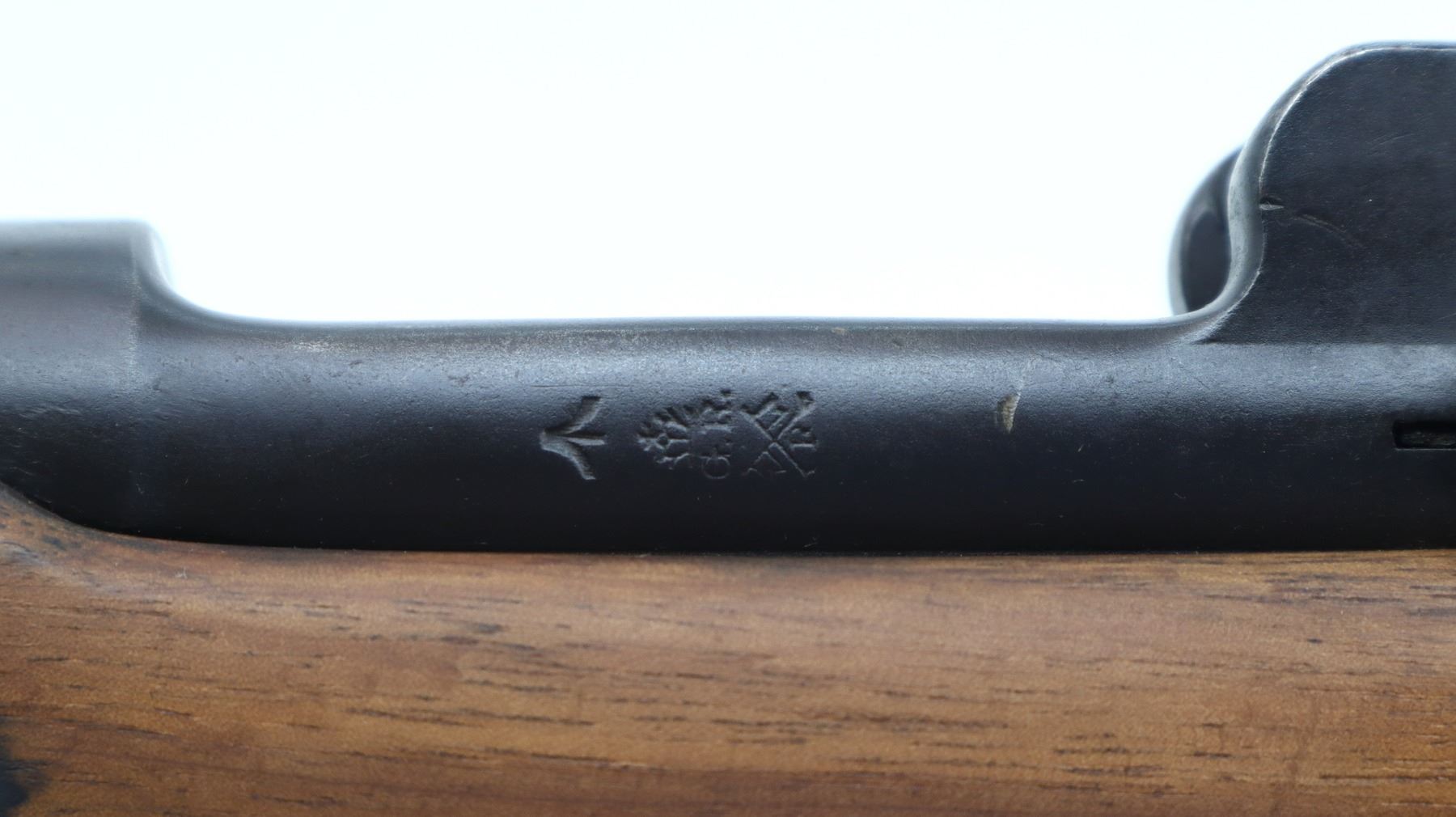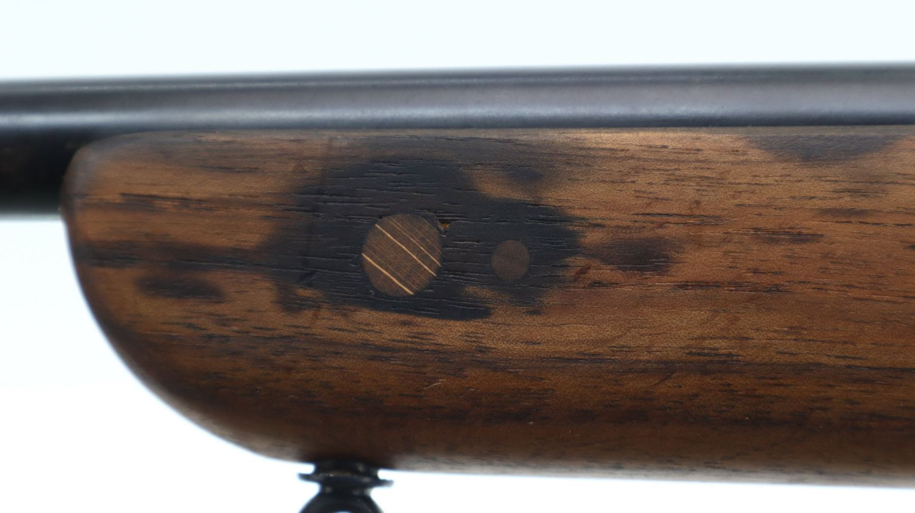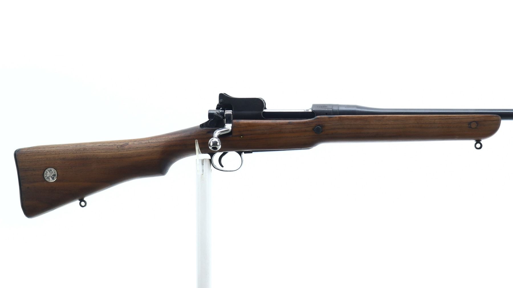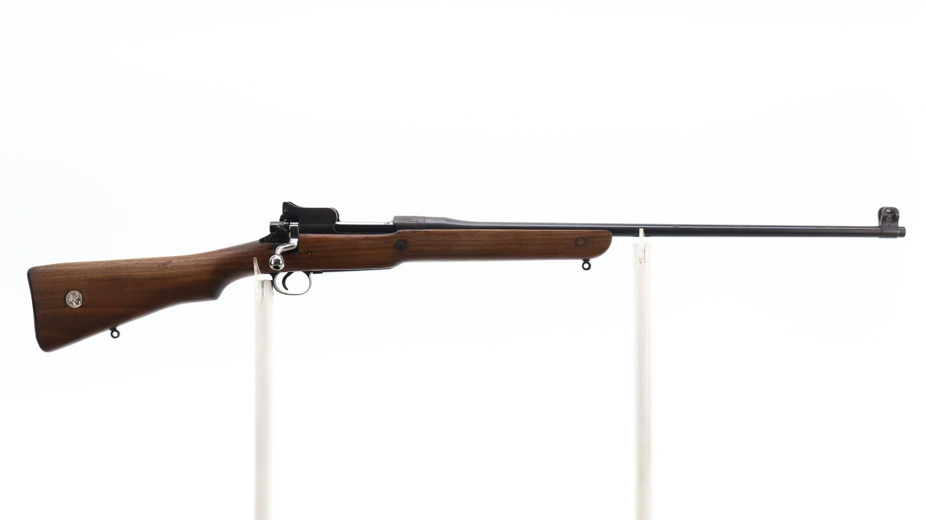 4+/10, ENFIELD, MODEL: P14 SPORTER, CALIBER:303 BR, BORE IS FAIR, WORN, LIGHT PITTING. MANUFACTURED BY ERA, BOLT MISMATCHED. BLADE FRONT SIGHT WITH EARS AND RAMP, ADJUSTABLE REAR PEEP SIGHT WITH EARS, BOLT POLISHED SILVER. ONE PIECE SPORTERIZED SMOOTH WOOD STOCK, PISTOL GRIP, SMOOTH STEEL BUTT PLATE WITH TRAP, STOCK DISK REPLACED WITH A QUARTER, SWIVEL STUDS. METAL FINISH SHOWS SCRATCHES, HANDLING MARKS AND WEAR. STOCKS SHOW MARKS, SCRATCHES AND WEAR., ACTION: BOLT ACTION RIFLE, BARREL LENGTH: 25.5", SERIAL # 635051, CONDITION: 4+/10, CLASS: CANADIAN NON RESTRICTED