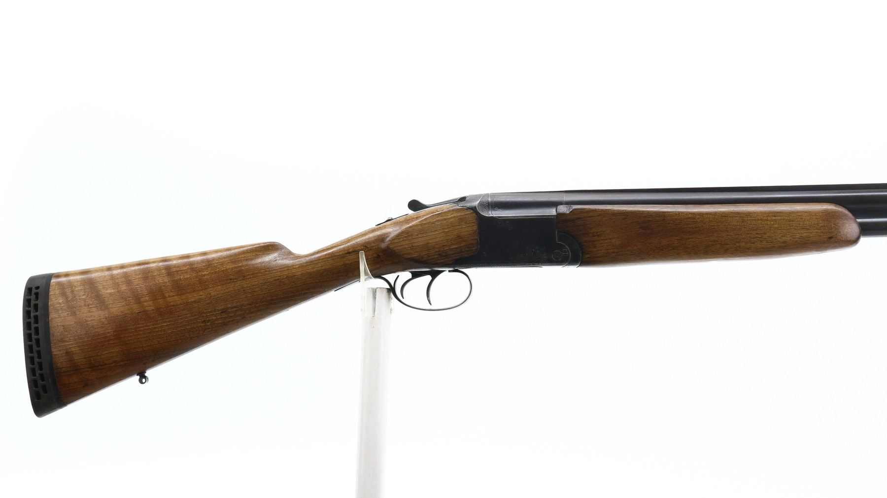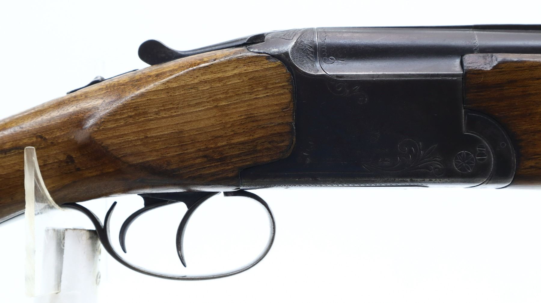 4/10, BAIKAL, MODEL: IJ-12, CALIBER:12 G X 2 3/4", BORES ARE GOOD. FIXED CYLINDER CHOKES. BRASS BEAD, SHORTENED BARREL WITH SOLID RIB, AUTOMATIC SAFETY, EXTRACTOR, DOUBLE TRIGGERS. TWO PIECE SMOOTH WOOD STOCKS, STRAIGHT GRIP, BLACK VENTED RUBBER RECOIL PAD, SWIVEL STUDS. METAL FINISH SHOWS SOME SCRATCHES, HANDLING MARKS AND WEAR. STOCKS SHOW SOME MARKS, SCRATCHES AND WEAR. , ACTION: HINGED OVER UNDER SHOTGUN, BARREL LENGTH: 24", SERIAL # H0079, CONDITION: 4/10, CLASS: CANADIAN NON RESTRICTED