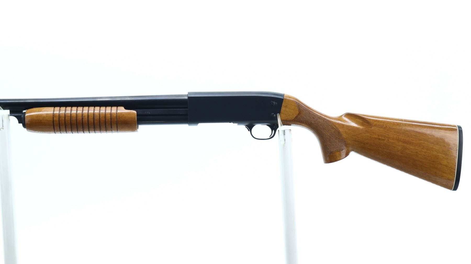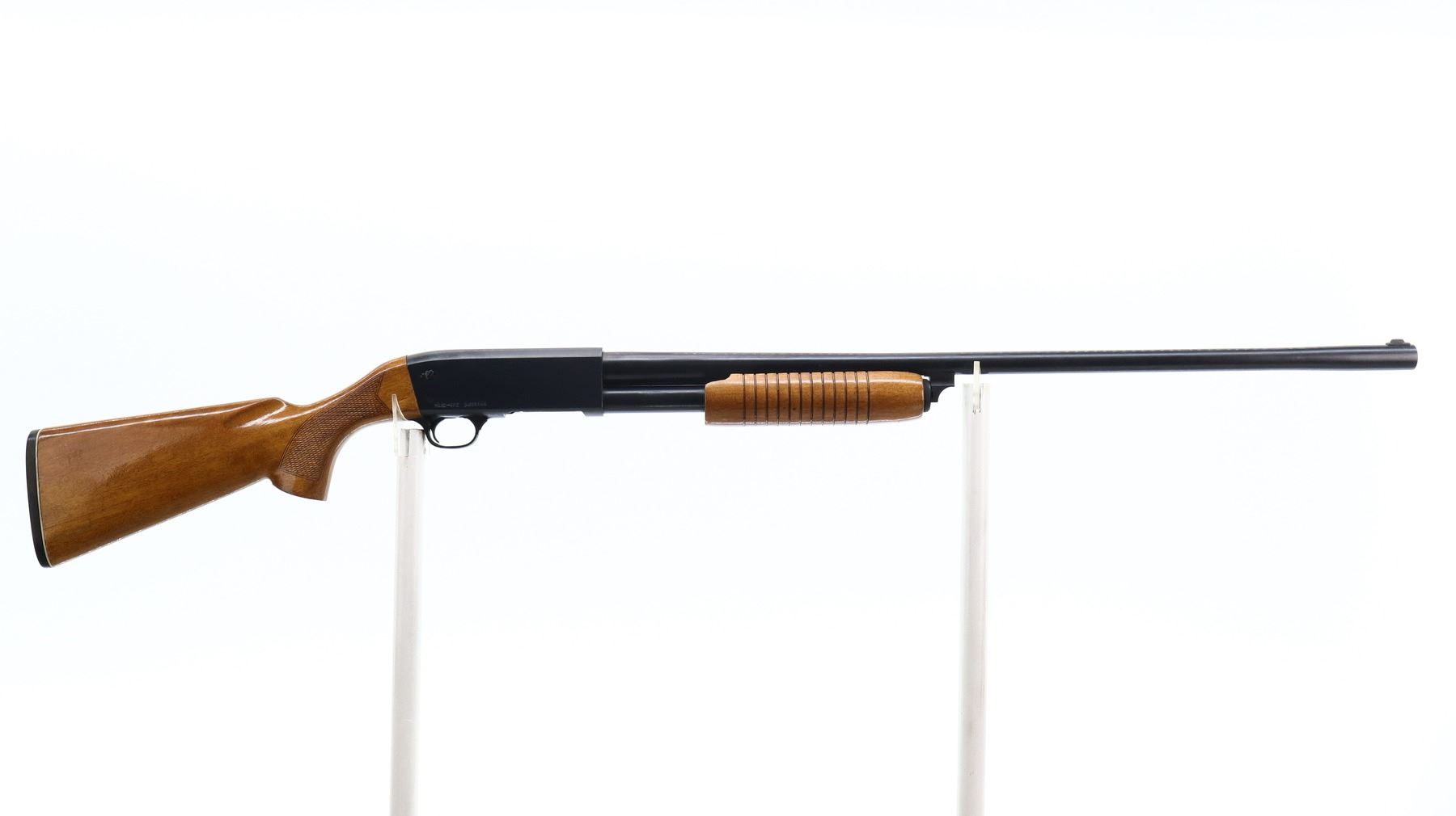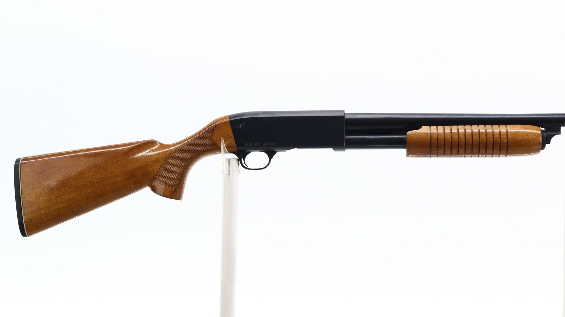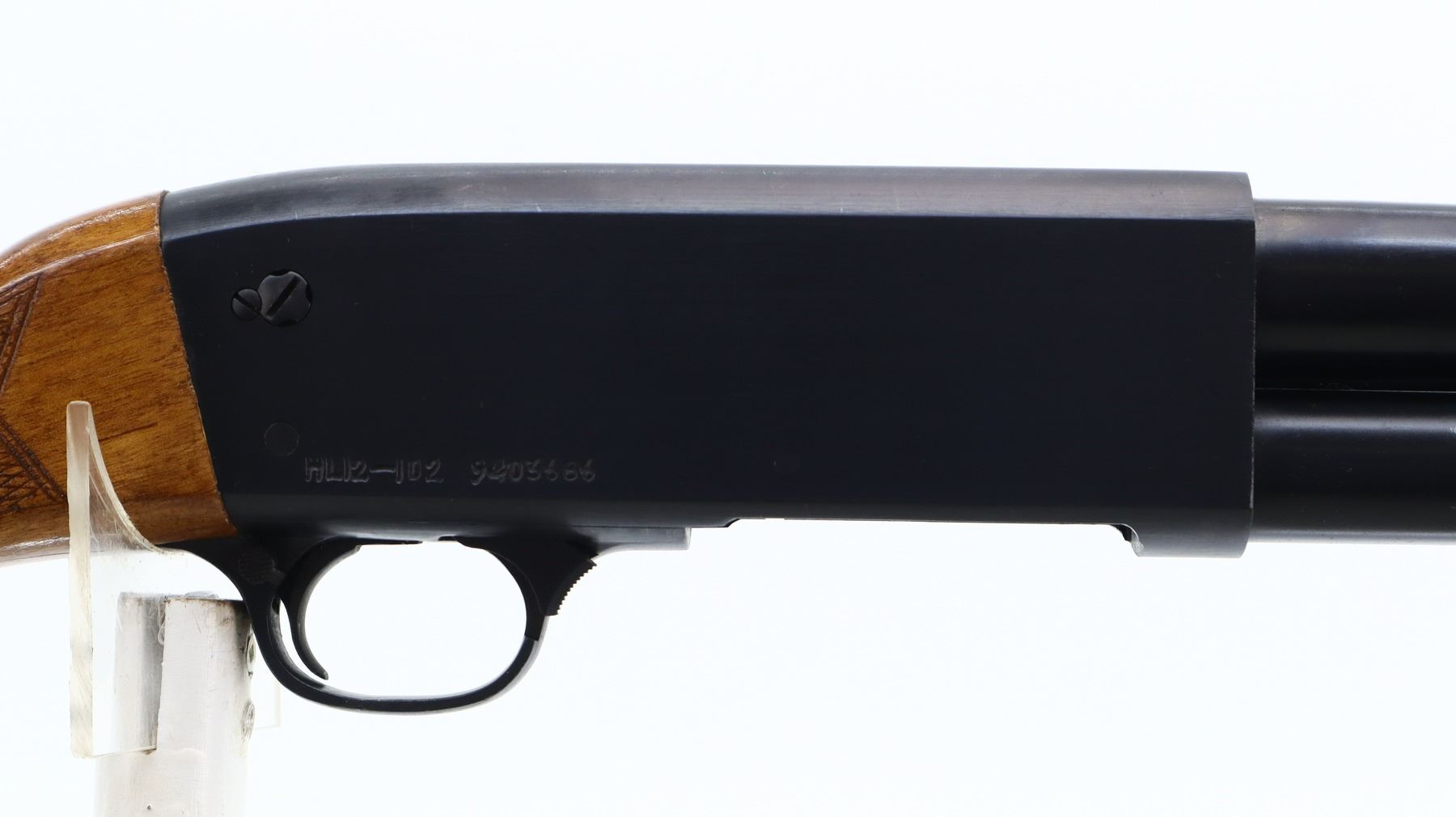 5/10, NORINCO, MODEL: HL12-012, CALIBER:12 G X 2 3/4", BORE IS GOOD. REMOVABLE FULL CHOKE. BLADE FRONT SIGHT, ROUND BARREL, BLUED FINISH. TWO PIECE WOOD STOCKS, GROOVED FOREND, CHECKERED PISTOL GRIP, SMOOTH BLACK POLYMER BUTT PLATE. METAL FINISH SHOWS SOME SCRATCHES, HANDLING MARKS AND WEAR. STOCKS SHOW SOME MARKS AND SCRATCHES, WEAR. , ACTION: PUMP ACTION SHOTGUN, BARREL LENGTH: 29.5", SERIAL # 9403686, CONDITION: 5/10, CLASS: CANADIAN NON RESTRICTED