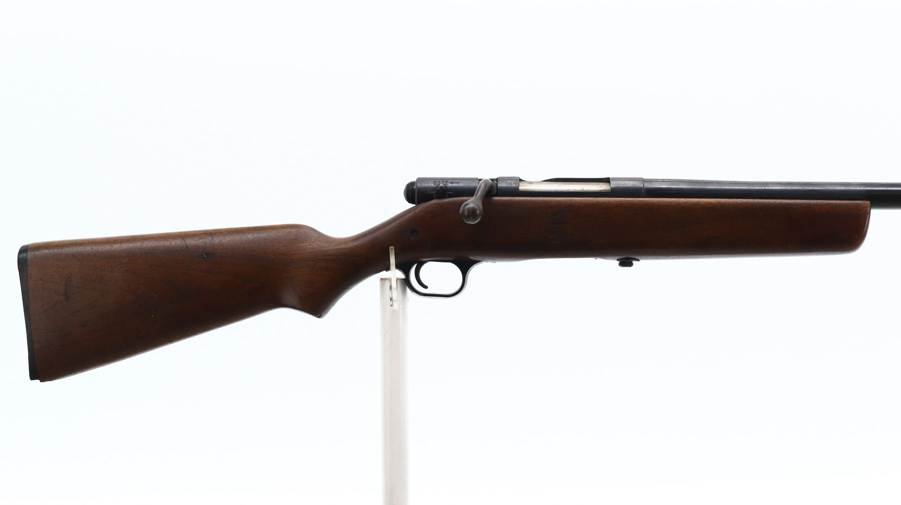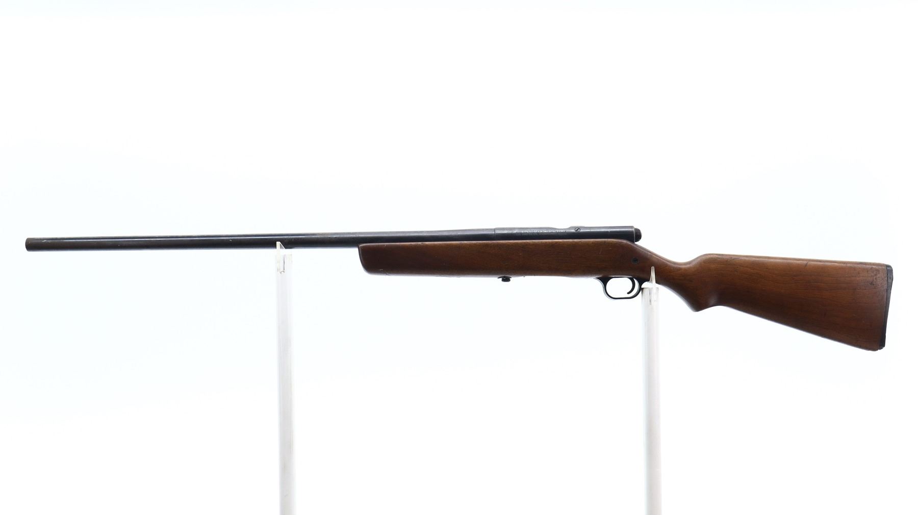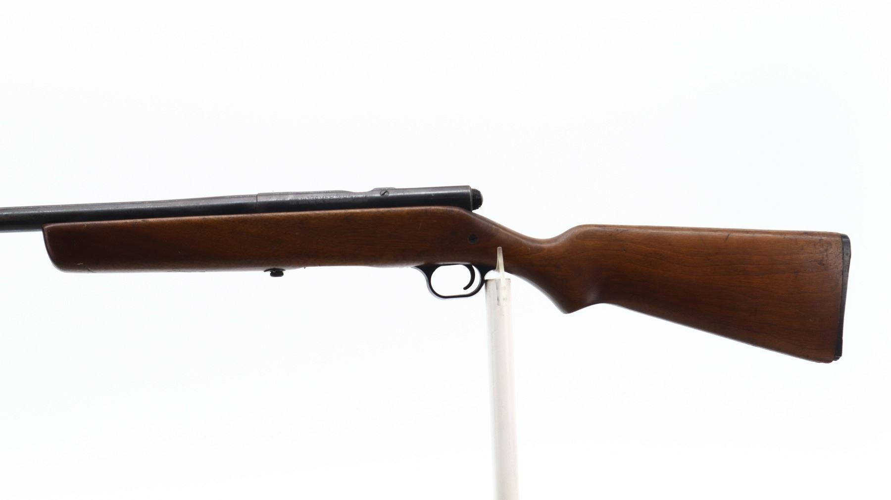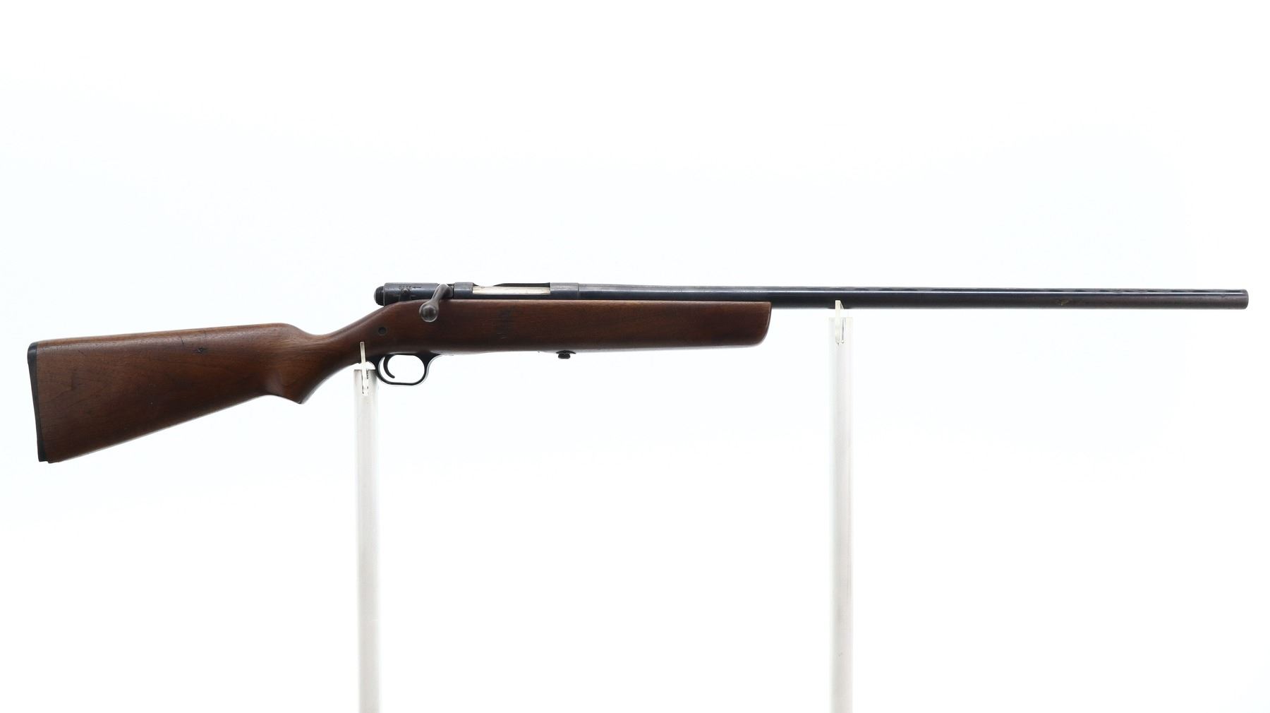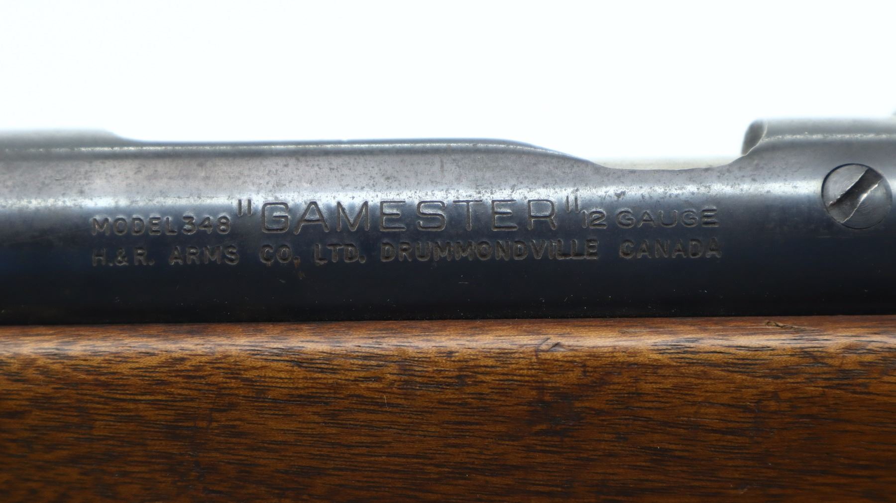 3/10, HARRINGTON & RICHARDSON, MODEL: 348 GAMESTER, CALIBER:12 G X 2 3/4", BORE IS GOOD. FIXED IM CHOKE. BROKEN BEAD, ROUND BARREL. ONE PIECE SMOOTH WOOD STOCK, PISTOL GRIP, GROOVED BLACK POLYMER BUTT PLATE, STOCK AND BUTT PLATE CHIPPED AT TOE. METAL FINISH SHOWS LIGHT PITTING, RUST, HANDLING MARKS AND WEAR. STOCKS SHOW MARKS, SCRATCHES AND WEAR. , ACTION: BOLT ACTION SHOTGUN, BARREL LENGTH: 28.25", SERIAL # NA, CONDITION: 3/10, CLASS: CANADIAN NON RESTRICTED
