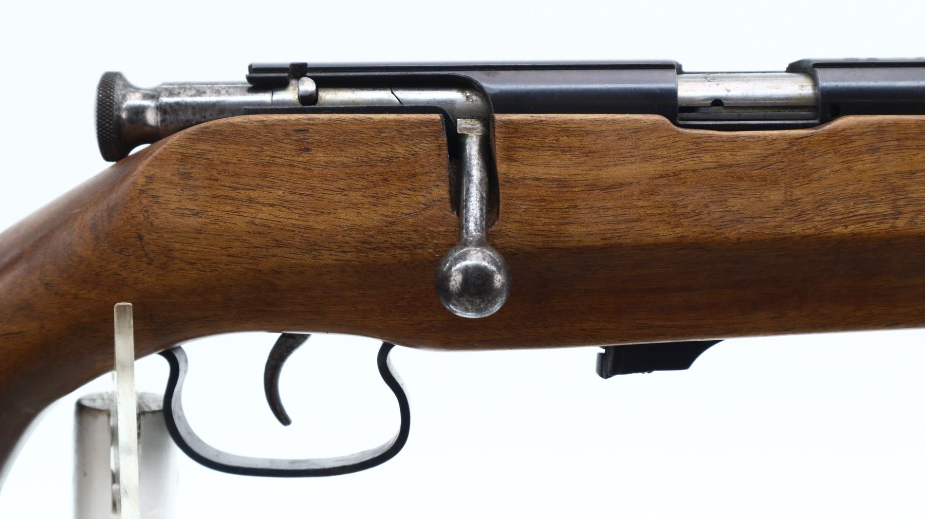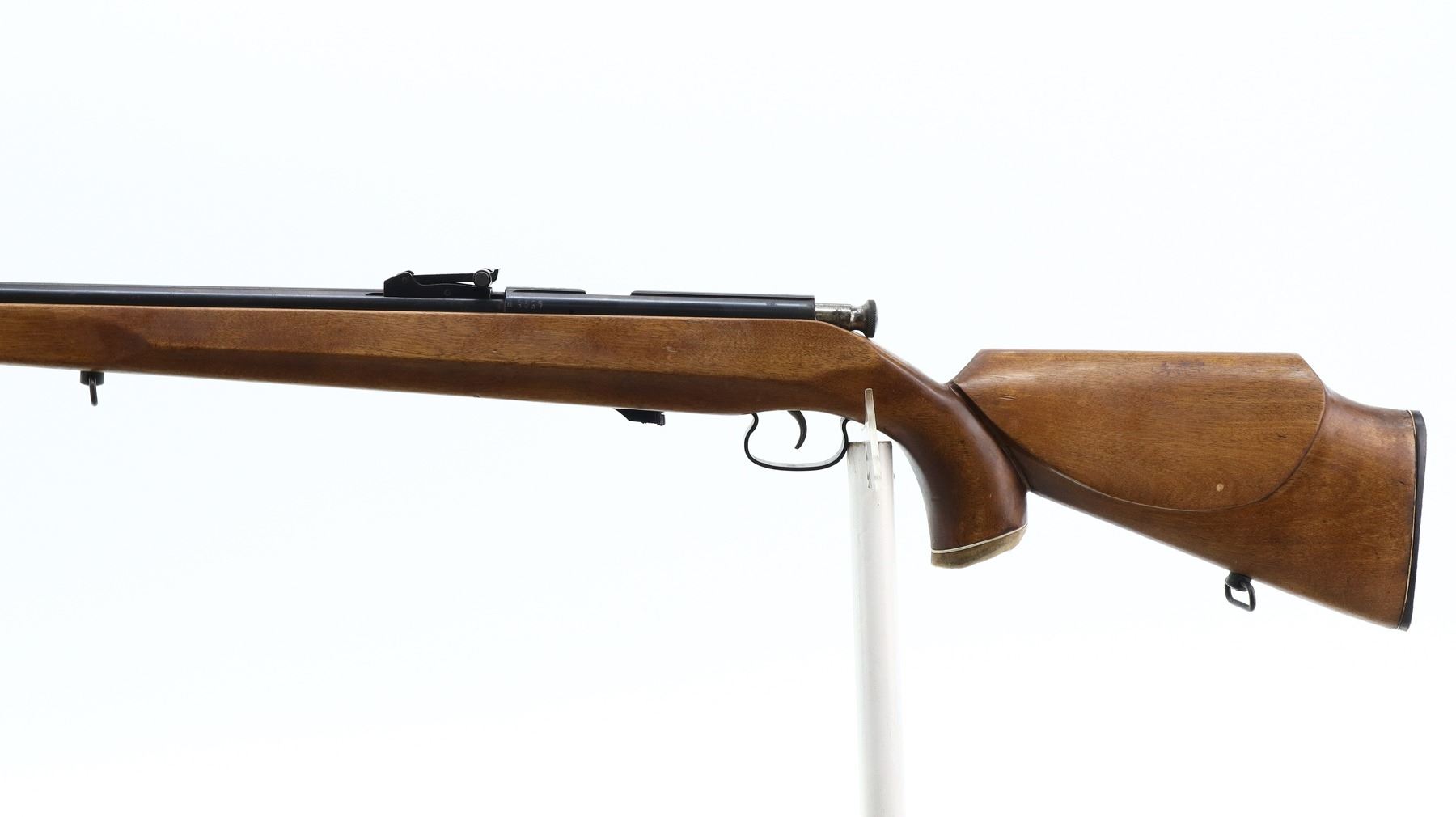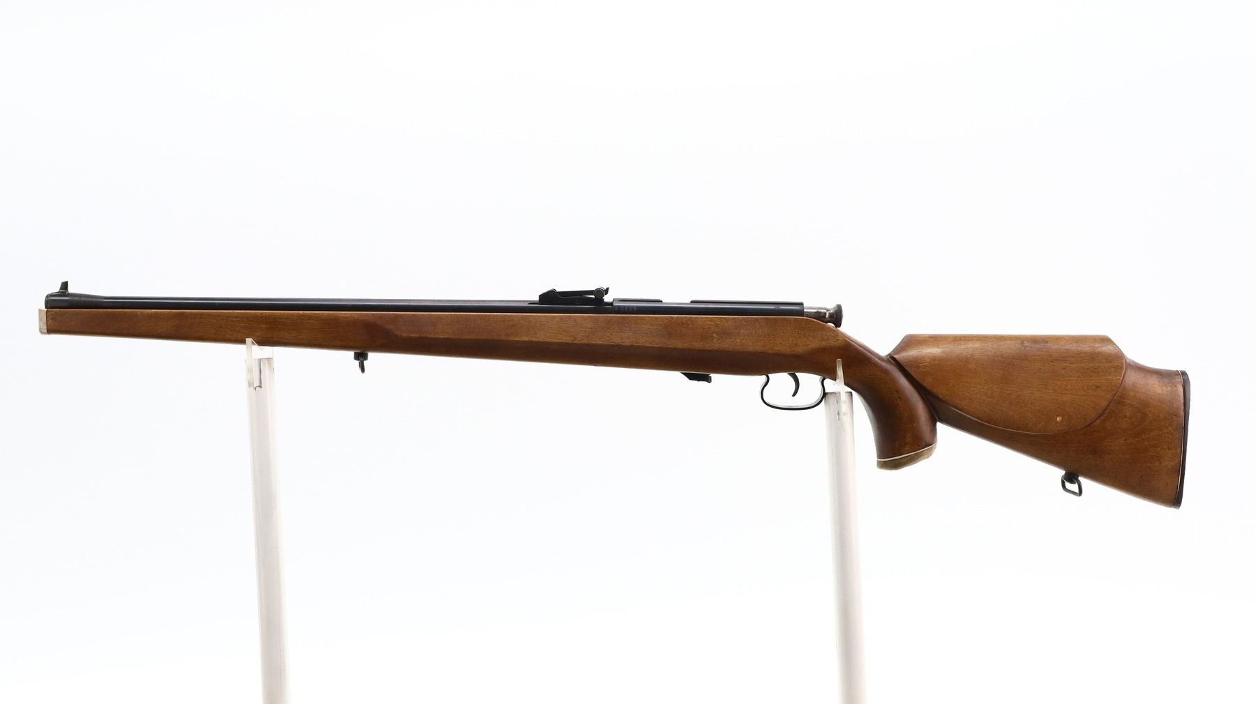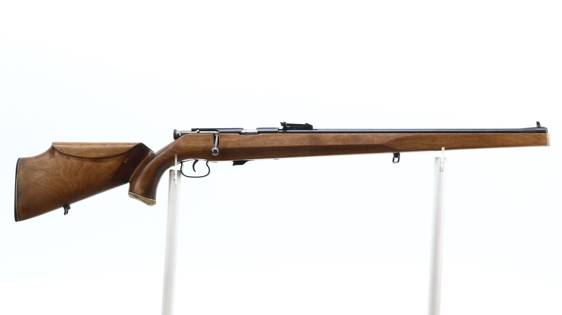 5/10, RUSSIAN, MODEL: T03-17, CALIBER:22 LR, DOES NOT COME WITH MAGAZINE, BORE IS EXCELLENT. BLADE FRONT SIGHT, ADJUSTABLE U NOTCHED REAR SIGHT, RECEIVER GROOVED FOR SCOPE MOUNT, SILVER BOLT. ONE PIECE SMOOTH FULL LENGTH CUSTOM WOOD STOCK, PISTOL GRIP, CHEEK REST, TEXTURED BLACK POLYMER BUTT PLATE, SLING SWIVELS, HORN PISTOL GRIP AND FOREND CAPS. METAL FINISH SHOWS SOME SCRATCHES, HANDLING MARKS AND WEAR. STOCKS SHOW SOME MARKS, SCRATCHES AND WEAR. , ACTION: BOLT ACTION RIFLE, BARREL LENGTH: 21", SERIAL # A3237, CONDITION: 5/10, CLASS: CANADIAN NON RESTRICTED