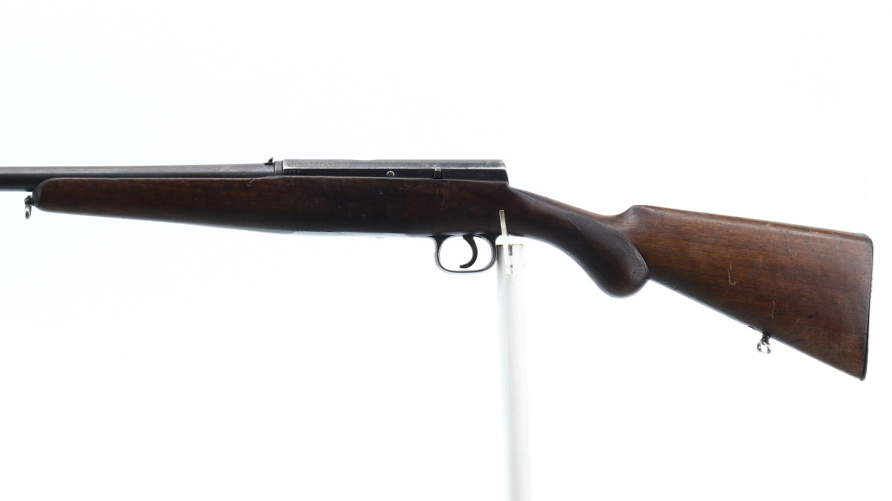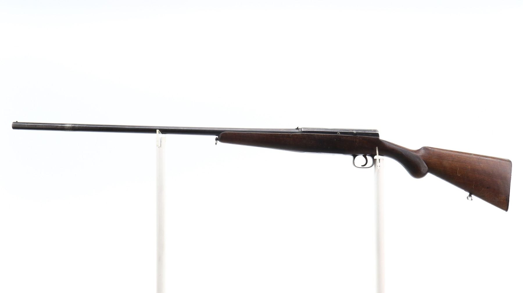 2/10, REMO POPULAR, MODEL: BOLT ACTION, CALIBER:12 G X 2 3/4", BORE IS POOR, BULGED AND DAMAGED. FIXED FULL CHOKE. BRASS BEAD, ROUND BARREL, REPLACED U NOTCHED REAR SIGHT, ACTION IS STIFF TO OPEN AND CLOSE. ONE PIECE WOOD STOCK, CHECKERED PISTOL GRIP, SMOOTH STEEL BUTT PLATE, SLING SWIVELS. METAL FINISH SHOWS LIGHT PITTING, RUST SPECKLES, HANDLING MARKS AND WEAR. STOCK SHOWS MARKS, SCRATCHES AND WEAR. , ACTION: BOLT ACTION SHOTGUN, BARREL LENGTH: 29", SERIAL # 8073, CONDITION: 2/10, CLASS: CANADIAN NON RESTRICTED