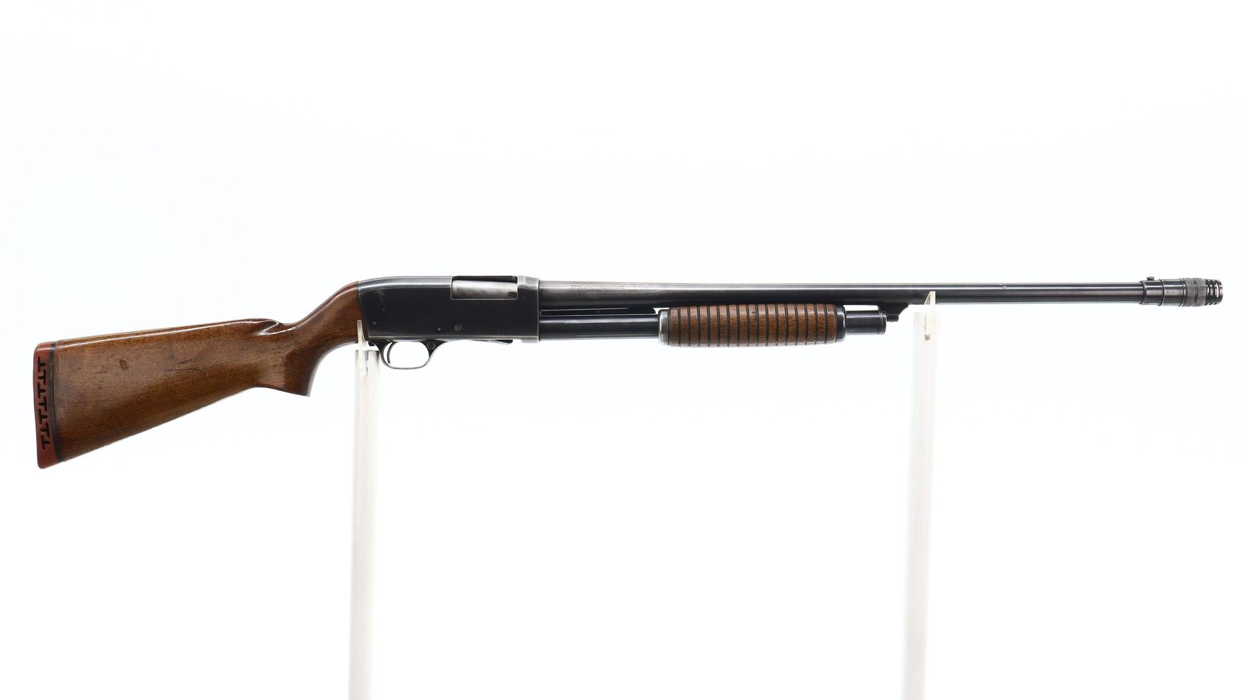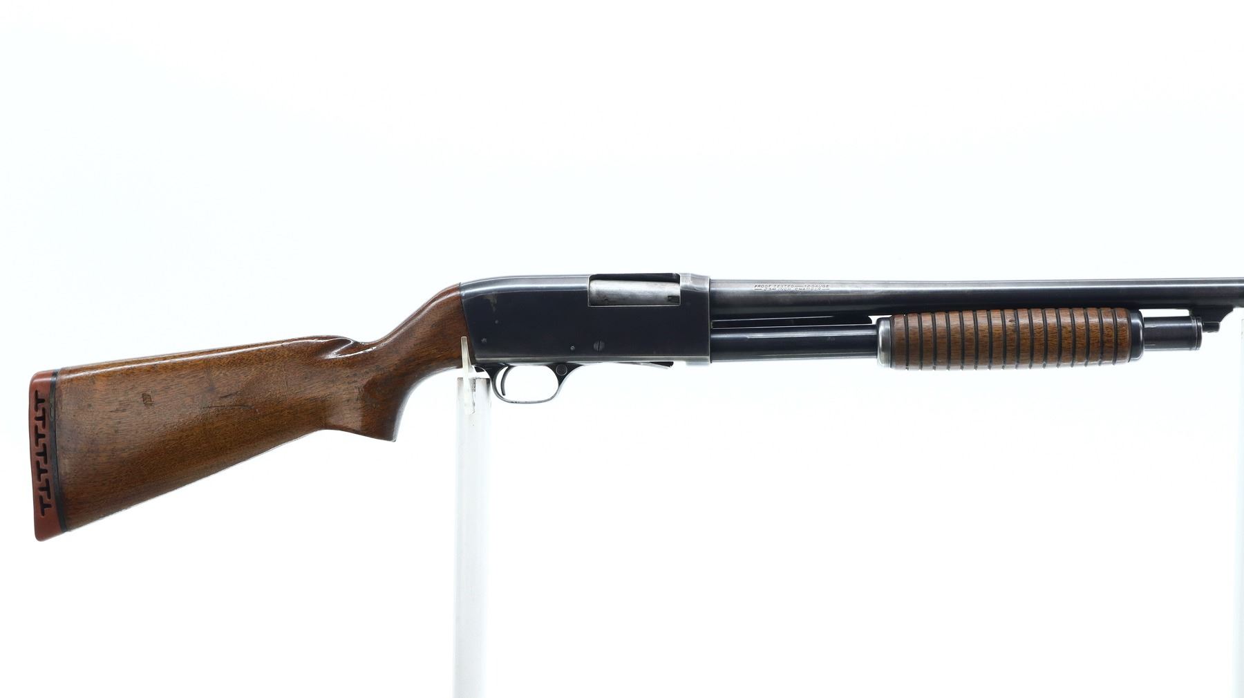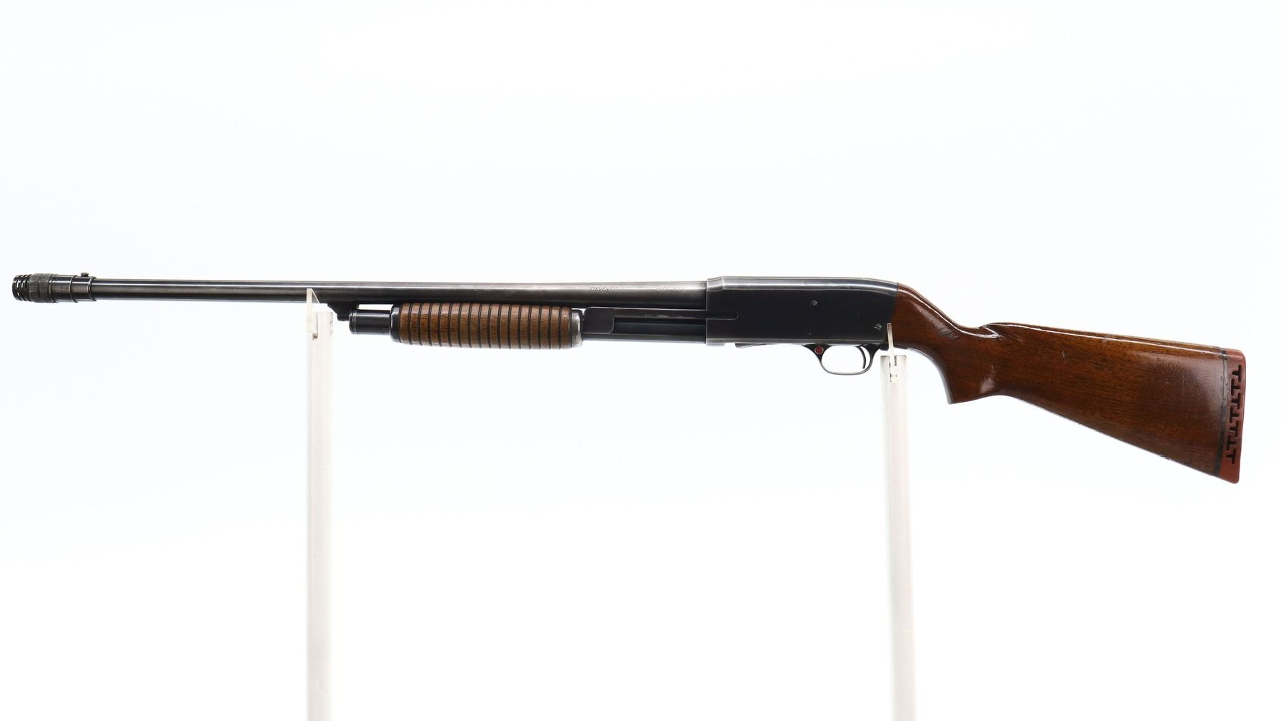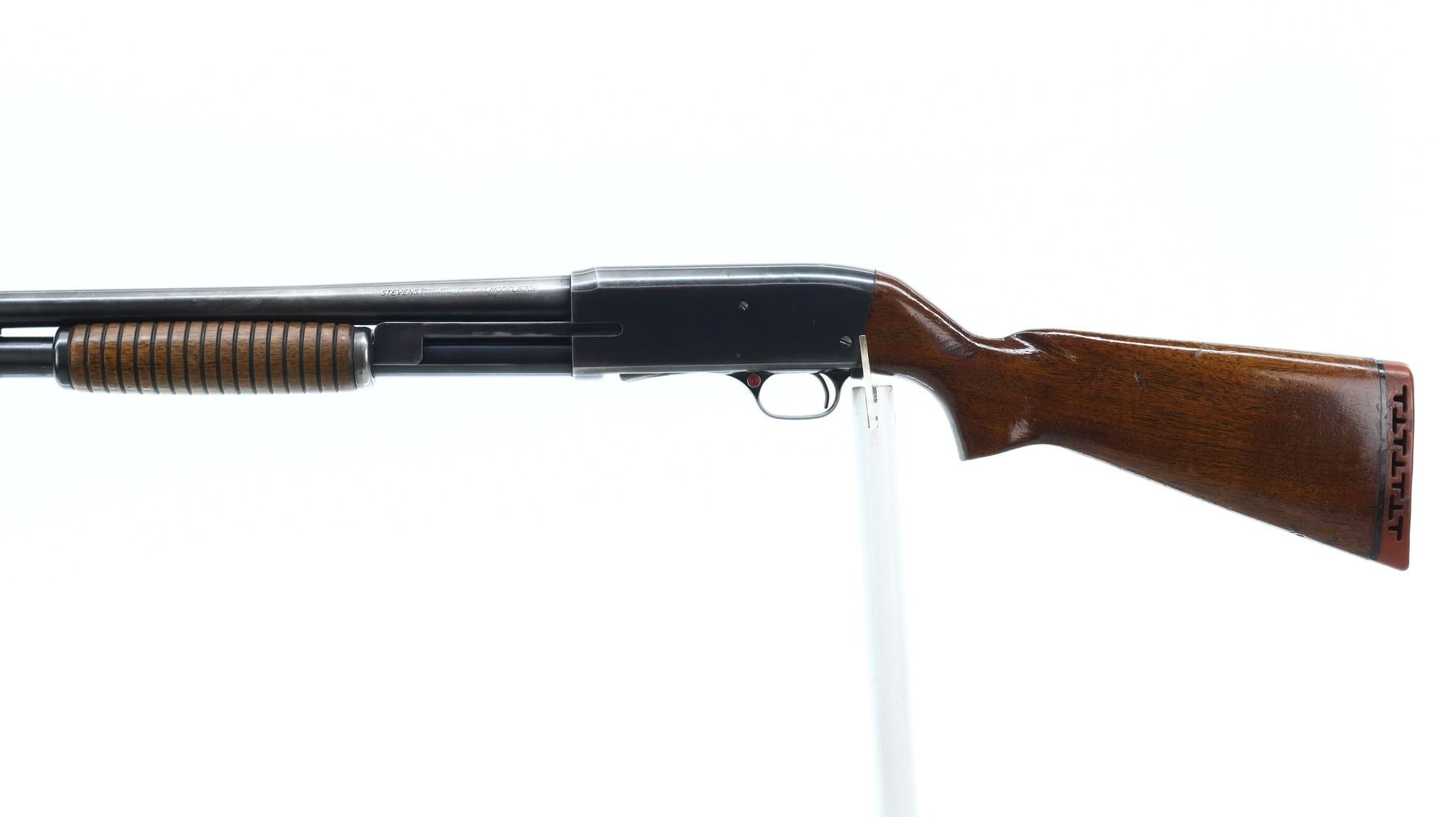 4/10, STEVENS, MODEL: 820 B, CALIBER:12 G X 2 3/4", BORE IS GOOD. ADJUSTABLE CHOKE. BRASS BEAD, ROUND BARREL. TWO PIECE WOOD STOCKS, GROOVED FOREARM, PISTOL GRIP, RED VENTED RUBBER RECOIL PAD. METAL FINISH SHOWS LIGHT RUST SPECKLES, SCRATCHES, HANDLING MARKS AND WEAR. STOCK SHOWS MARKS, SCRATCHES AND WEAR. , ACTION: PUMP ACTION SHOTGUN, BARREL LENGTH: 27", SERIAL # NA, CONDITION: 4/10, CLASS: CANADIAN NON RESTRICTED