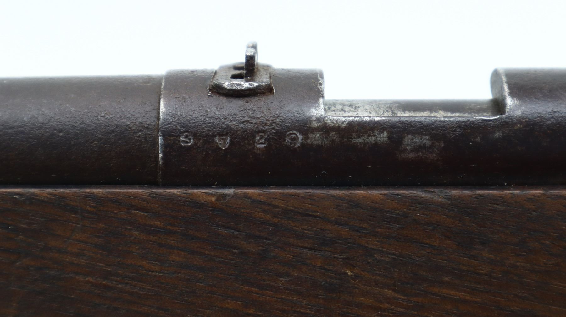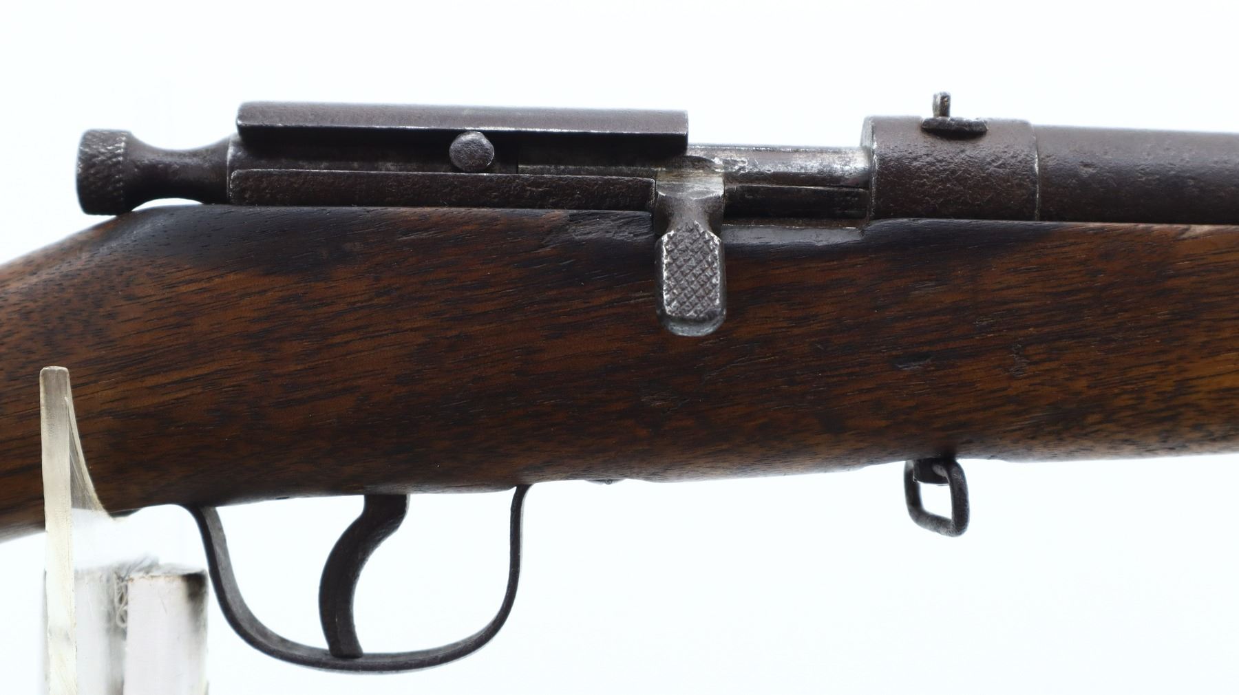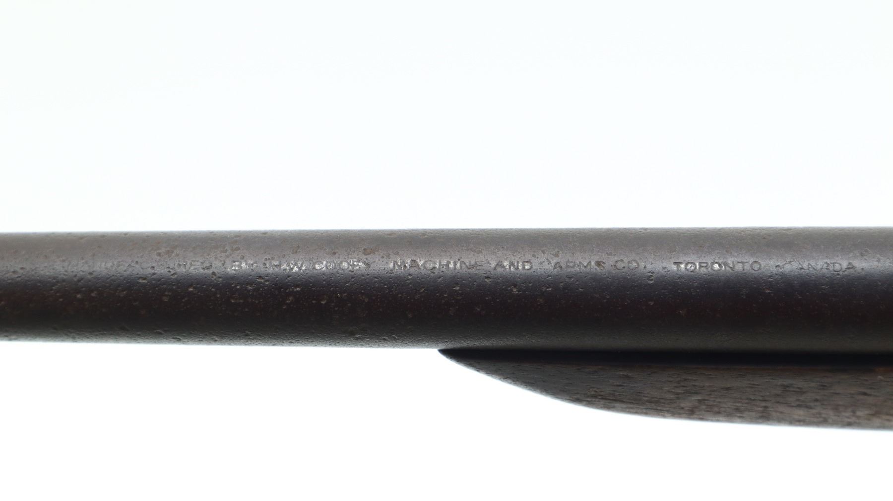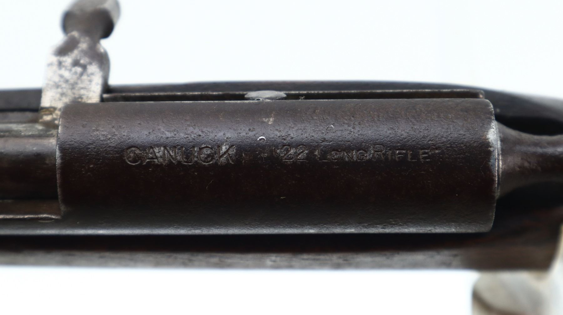 2/10, COOEY , MODEL: CANUCK, CALIBER:22 LR, BORE IS POOR, WORM, PITTED. BLADE FRONT SIGHT, U NOTCHED REAR SIGHT, CHECKERED FLAT BOLT HANDLE. ONE PIECE SMOOTH WOOD STOCK, PISTOL GRIP, SMOOTH CURVED STEEL BUTT PLATE. METAL FINISH TURNING BROWN WITH PITTING, RUST, HANDLING MARKS AND WEAR. STOCK SHOWS MARKS, SCRATCHES AND WEAR., ACTION: BOLT ACTION RIFLE, BARREL LENGTH: 17.5", SERIAL # 3729, CONDITION: 2/10, CLASS: CANADIAN NON RESTRICTED