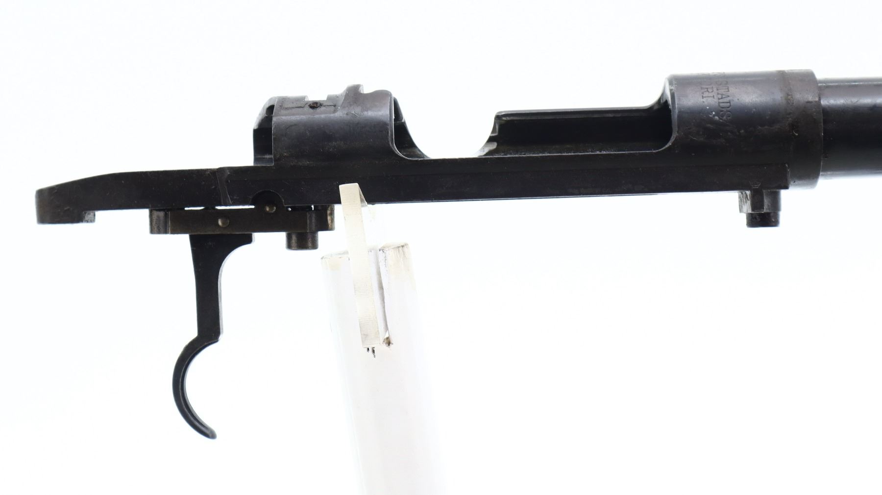PARTS GUN, SWEDISH MAUSER, MODEL: 96 SPORTER, CALIBER:6.5 X 55, BORE IS GOOD. SLIGHT WEAR. FRONT SIGHT BASE ONLY. NO REAR SIGHT, REAR RECEIVER BRIDGE GROOVED, DRILLED AND TAPPED FOR PEEP SIGHT (NOT INCLUDED) INCLUDES BOLT STOP AND TRIGGER ASSEMBLY, NO OTHER PARTS. METAL FINISH SHOWS SOME LIGHT RUST SPECKLES, SCRATCHES, HANDLING MARKS AND WEAR. , ACTION: BOLT ACTION RIFLE, BARREL LENGTH: 29", SERIAL # 46640, CONDITION: PARTS GUN, THIS ITEM IS SOLD FOR PARTS USE ONLY. SOME PARTS AND COMPONENTS MAY NOT BE PRESENT AND OR FUNCTIONAL. UNDER NO CIRCUMSTANCES ATTEMPT TO USE THIS ITEM AS A FUNCTIONAL FIREARM., CLASS: CANADIAN NON RESTRICTED