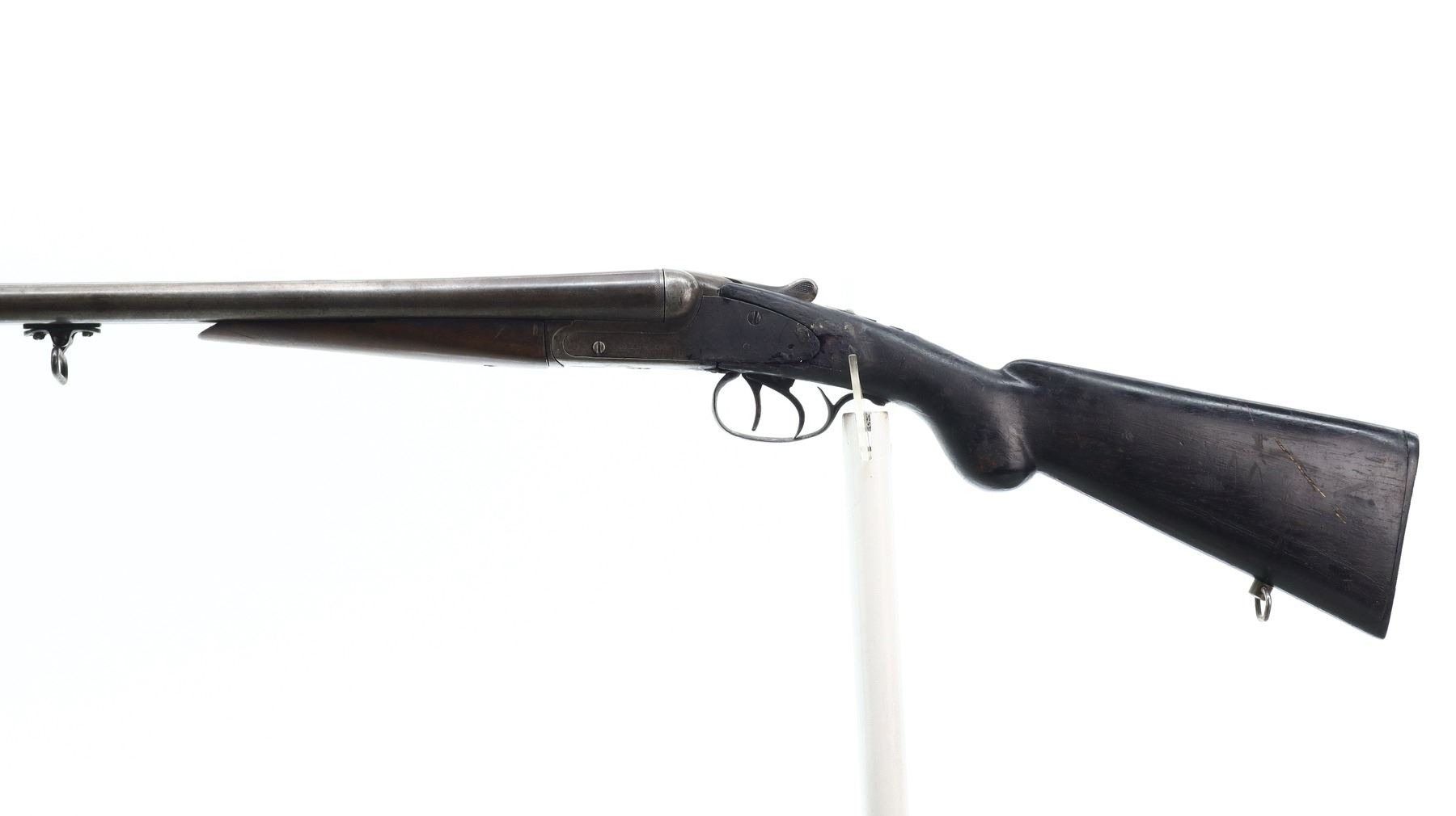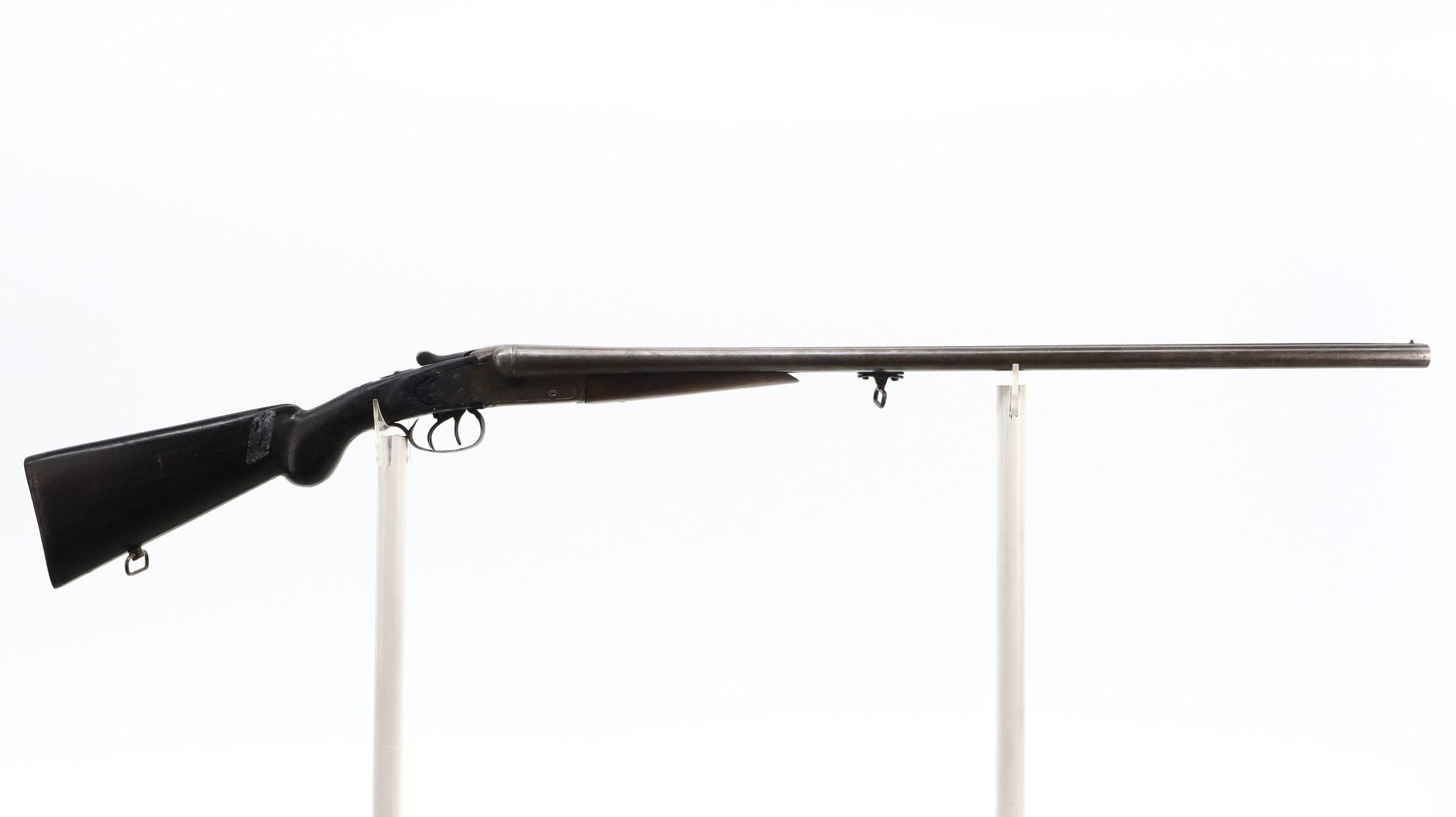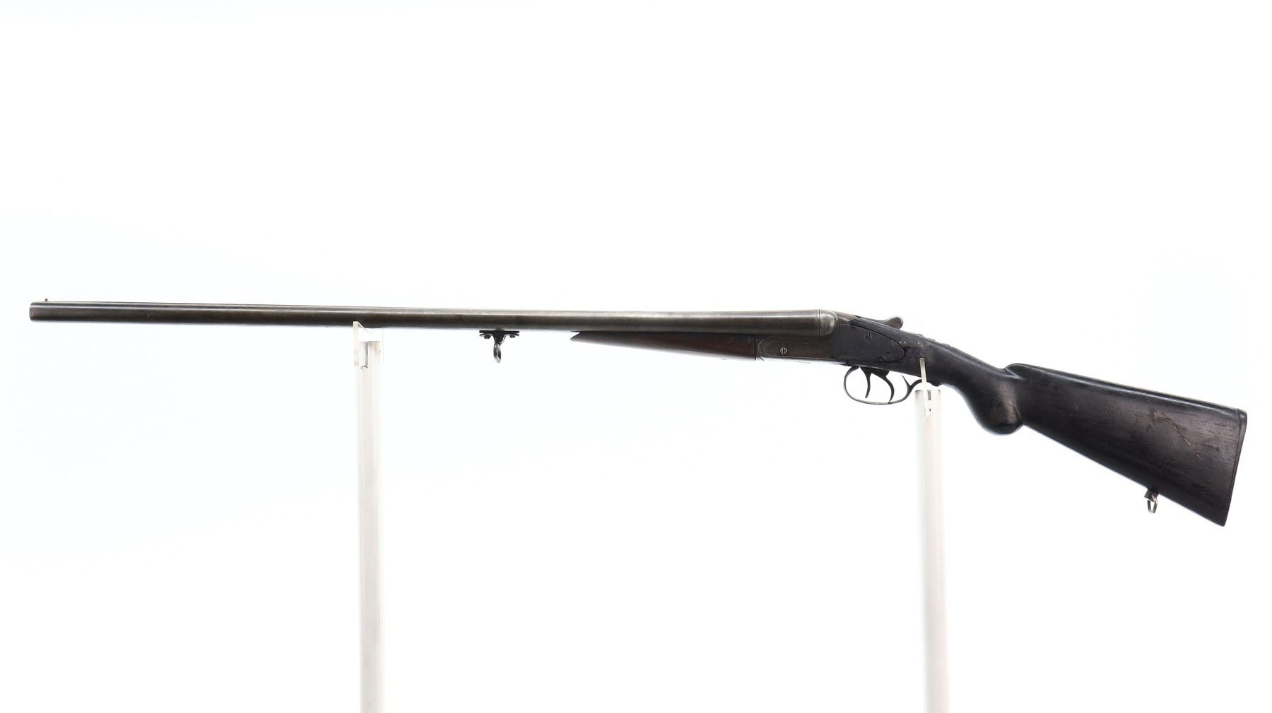 PARTS GUN, J.MANTON & CO, MODEL: SIDE BY SIDE HAMMERLESS , CALIBER:12 G X 2 3/4", BORES ARE POOR AND PITTED. FIXED IC AND MOD CHOKES. BRASS BEAD. DAMASCUS BARRELS. LOOSE ON FACE. SIDE LOCKS. AUTOMATIC SAFETY. ACTION DOES NOT FUNCTION. EXTRACTOR. DOUBLE TRIGGERS. TWO PIECE WOOD STOCKS. REPAIRED FOREND. PISTOL GRIP. STOCK IS DAMAGED BEHIND RECEIVER AND LOCKS. GROOVED BLACK POLYMER BUTT PLATE. SLING SWIVELS. BARREL AND LOCKING LUGS SHOW STAKE MARKS. METAL FINISH TURNING BROWN WITH LIGHT RUST SPECKLES, SCRATCHES, HANDLING MARKS AND WEAR. STOCKS SHOW MARKS, SCRATCHES AND WEAR. , ACTION: HINGE SIDE BY SIDE SHOTGUN , BARREL LENGTH: 30", SERIAL # 418, CONDITION: PARTS GUN, THIS ITEM IS SOLD FOR PARTS USE ONLY. SOME PARTS AND COMPONENTS MAY NOT BE PRESENT AND OR FUNCTIONAL. UNDER NO CIRCUMSTANCES ATTEMPT TO USE THIS ITEM AS A FUNCTIONAL FIREARM., CLASS: CANADIAN NON RESTRICTED