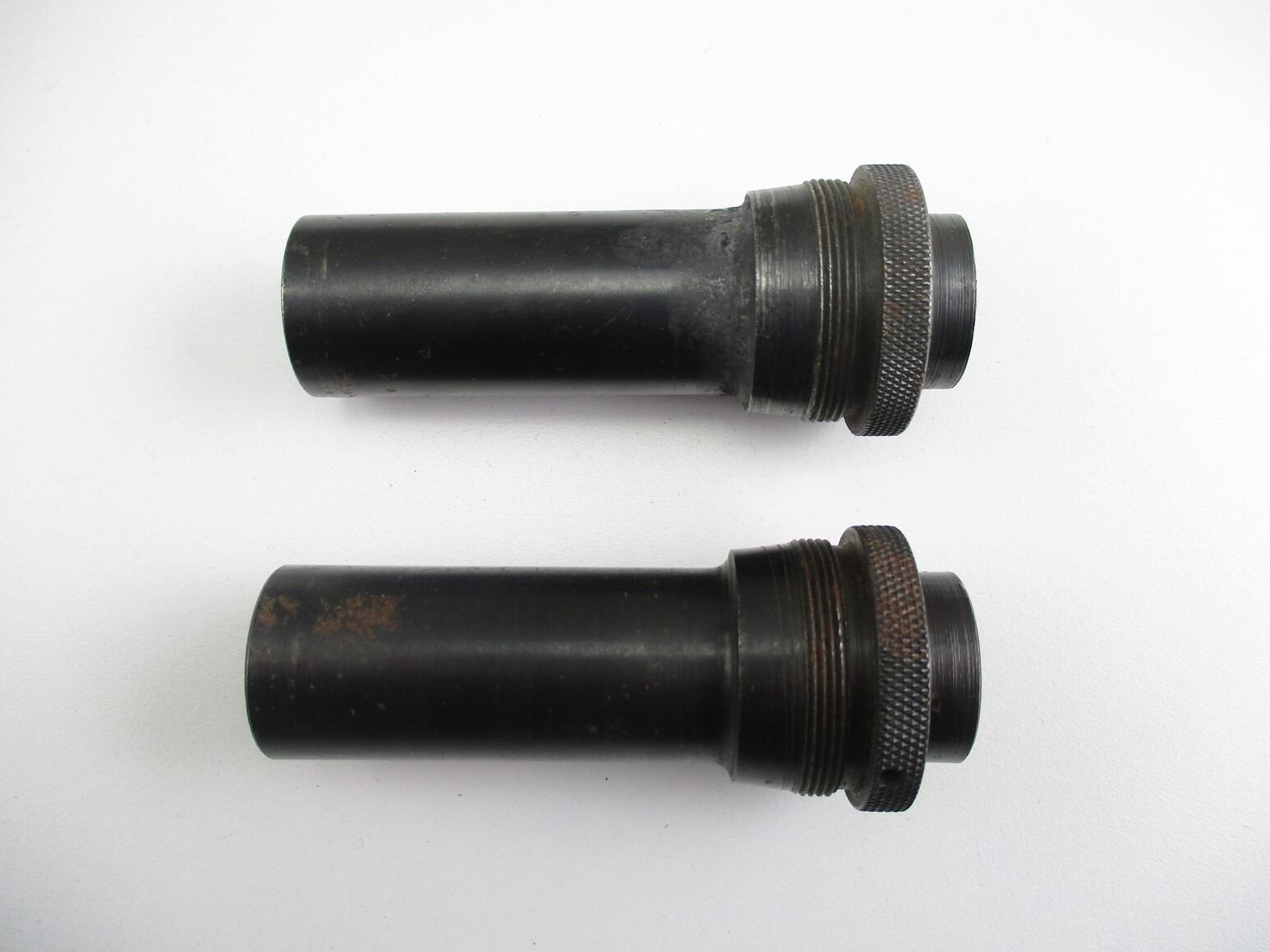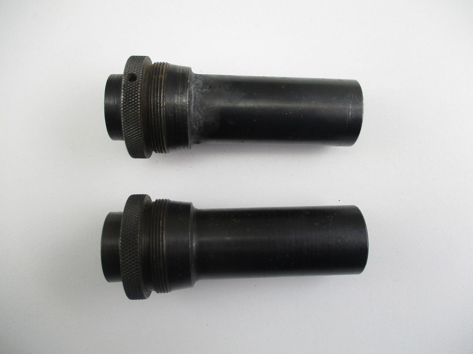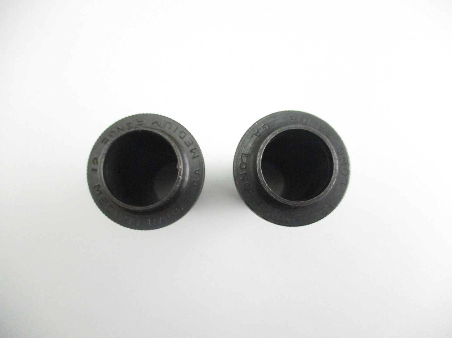 12 GAUGE MEDIUM RANGE EXTERNAL SHOTGUN CHOKES , LOT OF 2. BLUED STEEL, USED, POSSIBLY FOR JC HIGGINS SHOTGUNS.