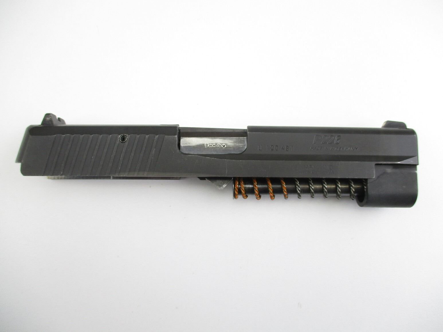 SIG SAUER P226 9MM SLIDE ASSEMBLY , COMPLETE SLIDE ASSEMBLY, WITH 4.6" BARREL, VERY GOOD / SHINY BORE, FRONT & REAR PISTOL SIGHTS, COMES IN PADDED PACKAGING.