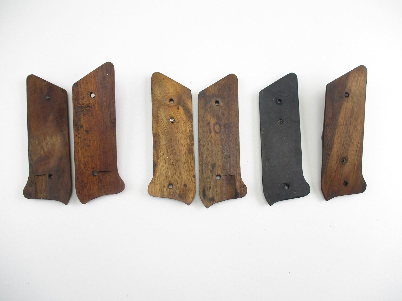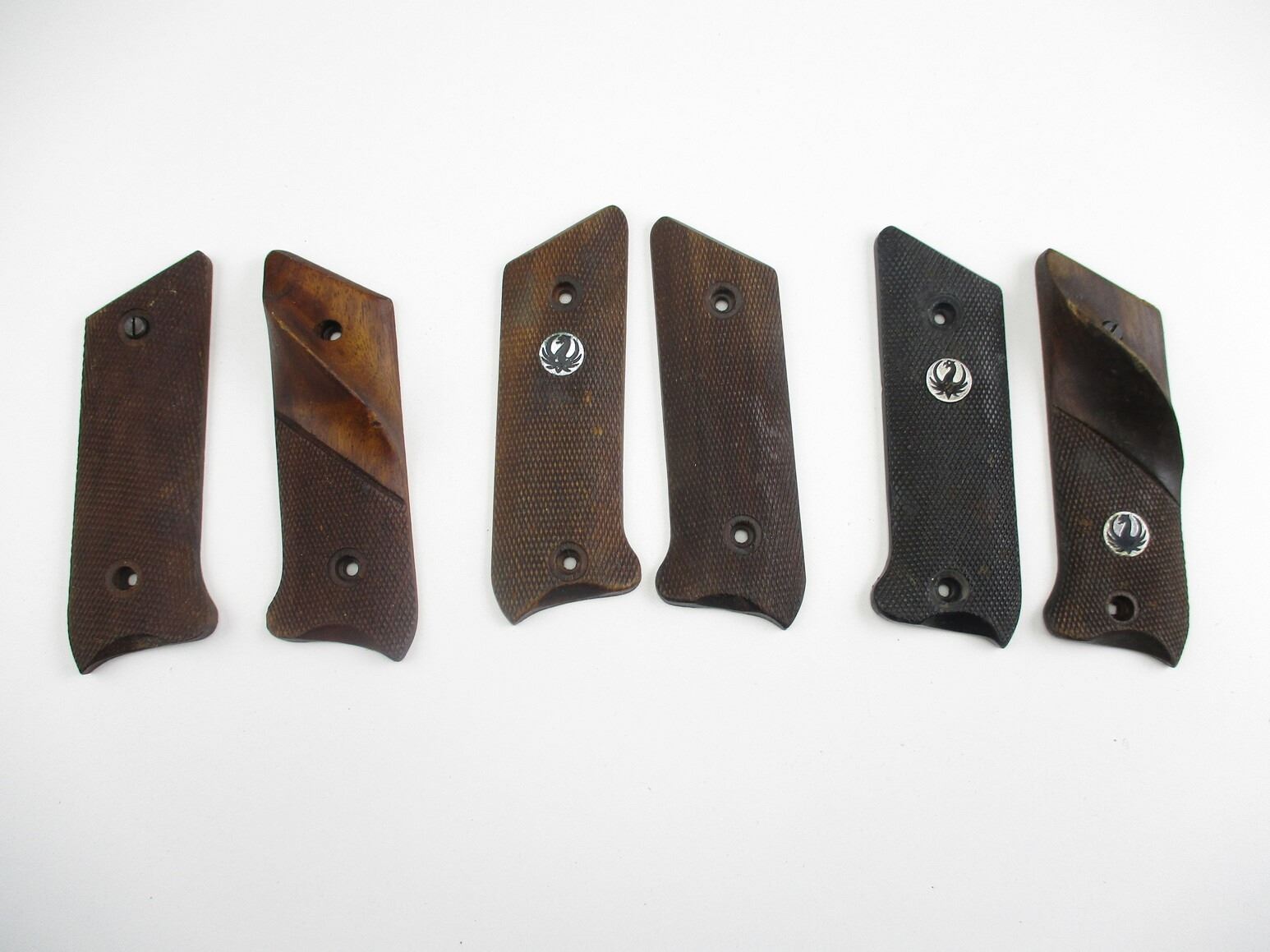ASSORTED .22LR SEMI-AUTO RUGER PISTOL GRIPS , MISSING MOUNTING SCREWS, SOME TARGET STYLE GRIPS, MADE OF WOOD, CHECKERED, SOME WITH RUGER LOGO, MIS-MARCHED SETS, SOME MAY REQUIRE FITTING.