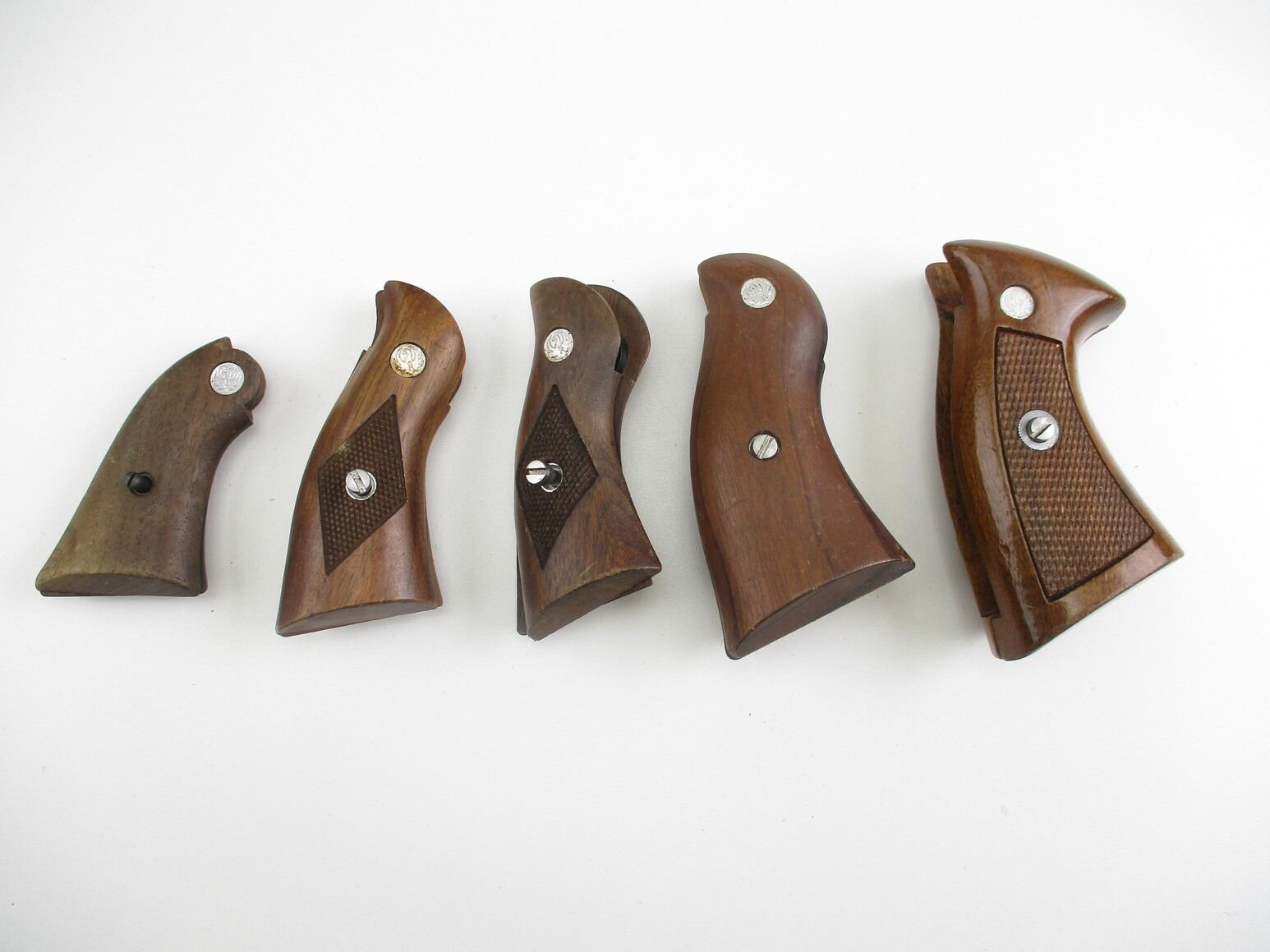 ASSORTED RUGER REVOLVER GRIPS , INCLUDES: LARGE & SMALL FRAME TYPE GRIPS, WOOD, CHECKERED, WITH RUGER LOGO, MOST COME WITH MOUNTING SCREWS.