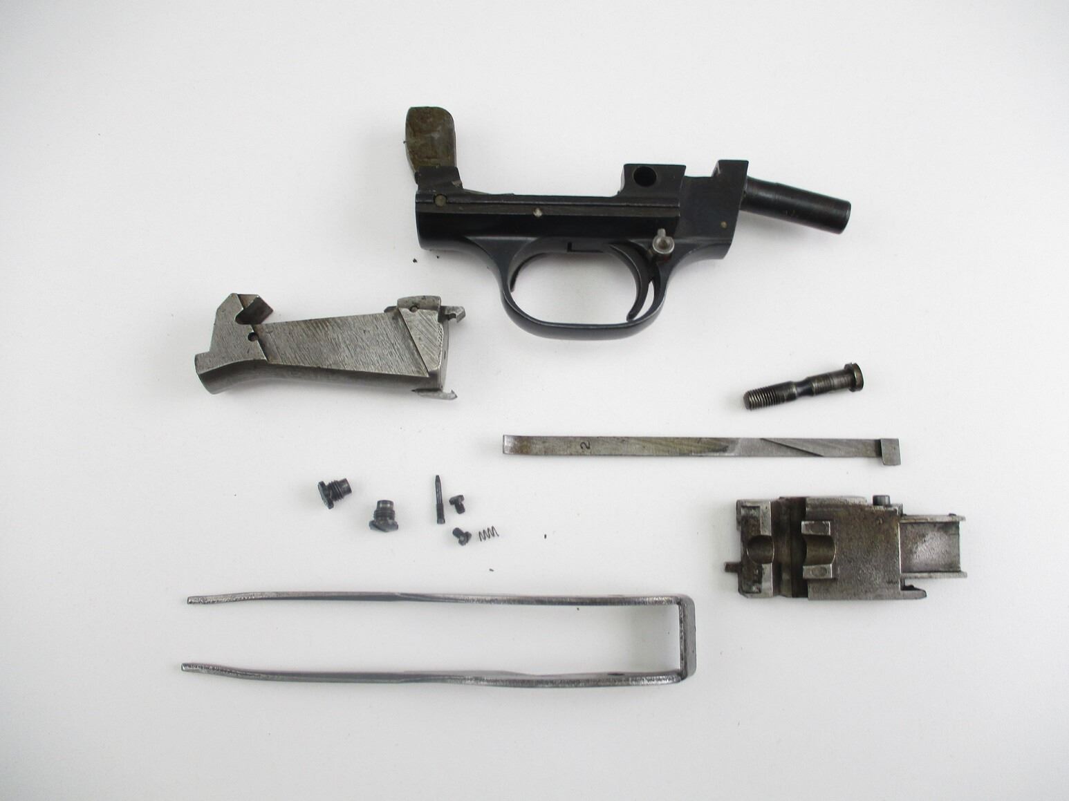 ITHACA MODEL 37 SHOTGUN PARTS, INCLUDES: TRIGGER MECH, SLIDE, BREECH BLOCK, WITH FIRING PIN ASSEMBLY & EXTRACTOR, SHELL STOP SPRING, ETC.