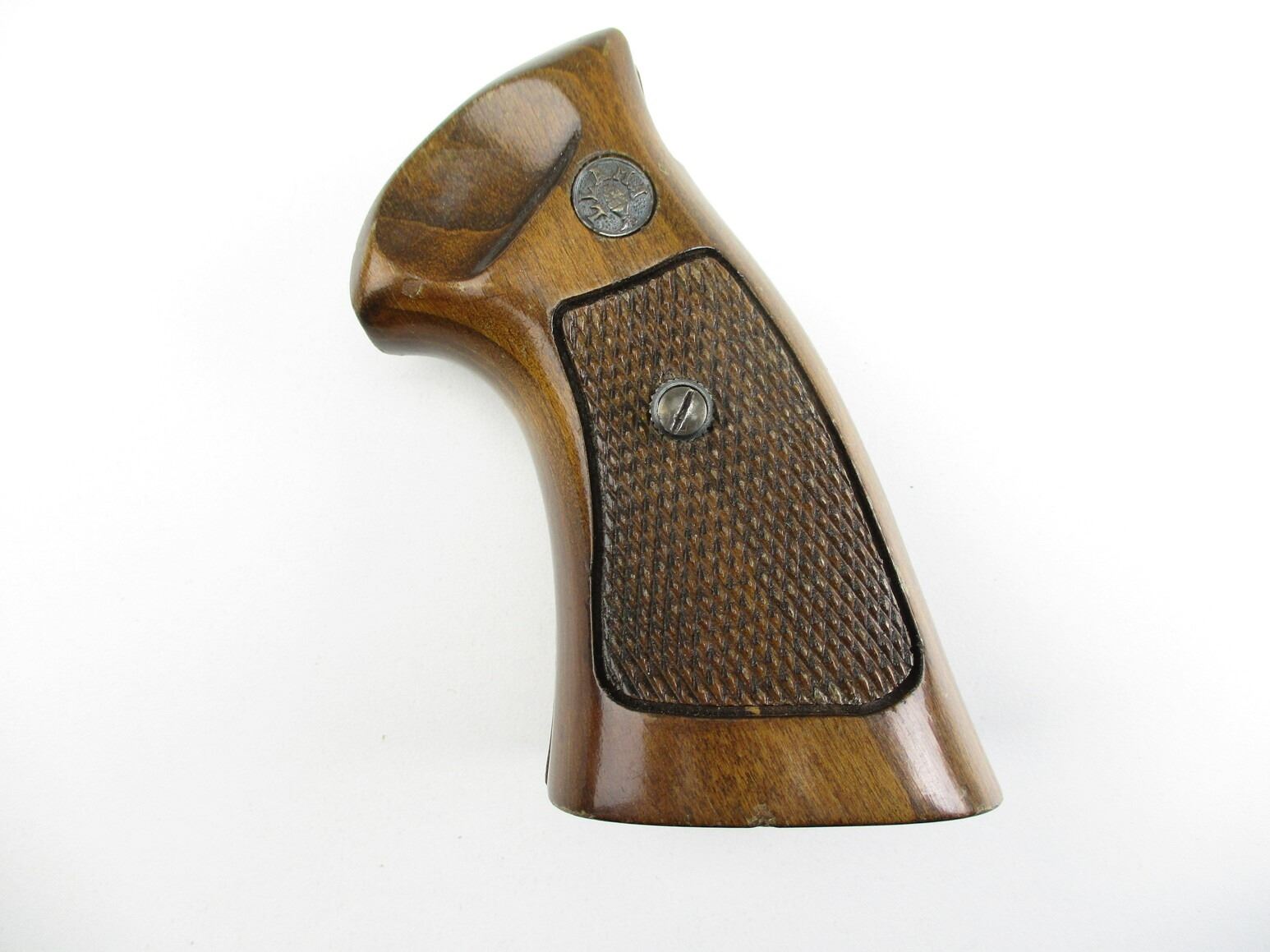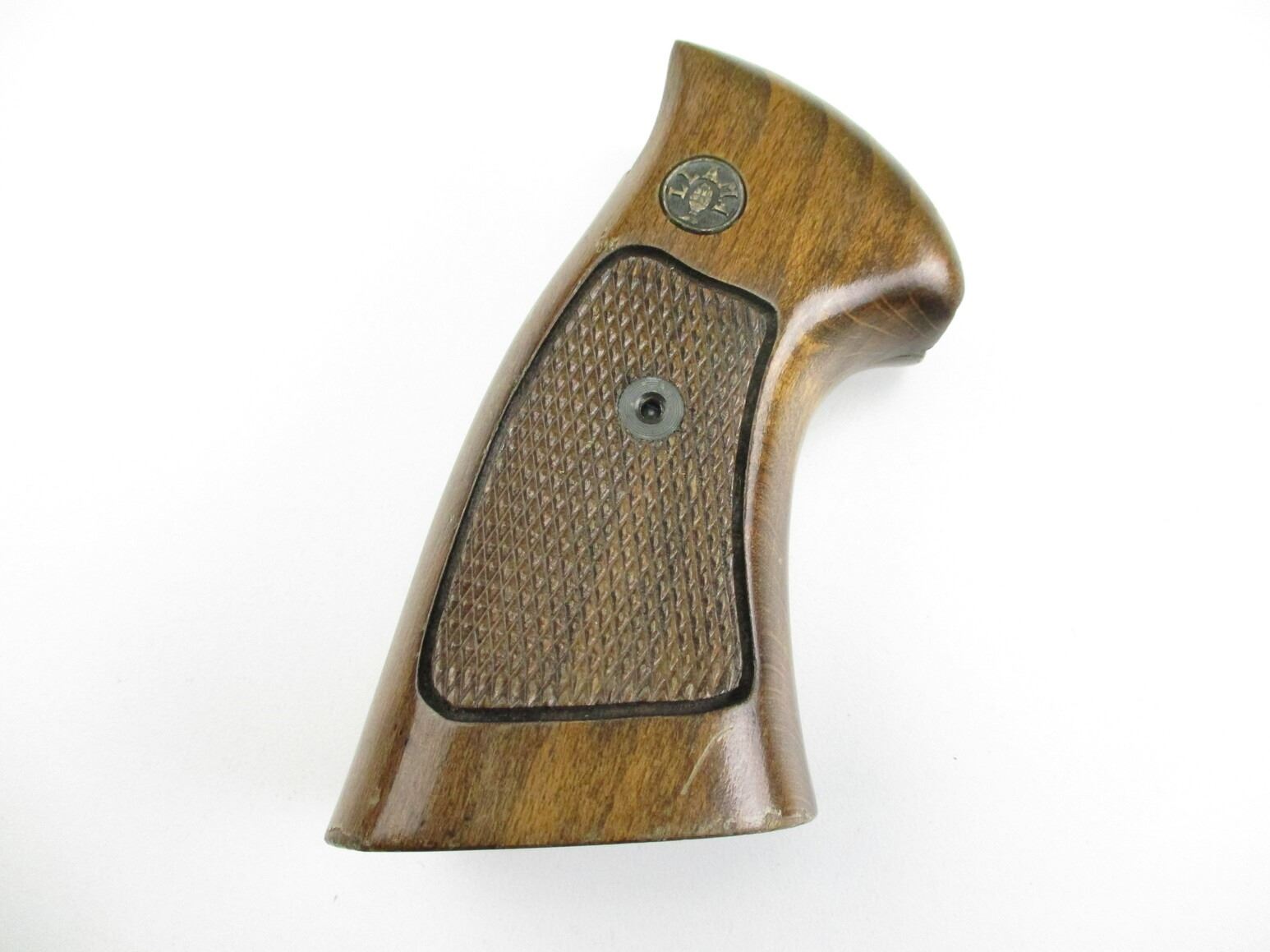 LLAMA LARGE FRAME REVOLVER GRIPS , WOODEN, CHECKERED, WITH LLAMA LOGO & MOUNTING SCREW, MAY REQUIRE FITTING.