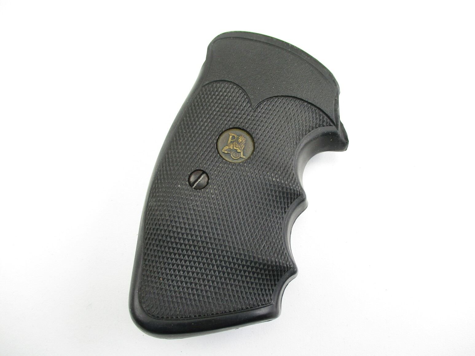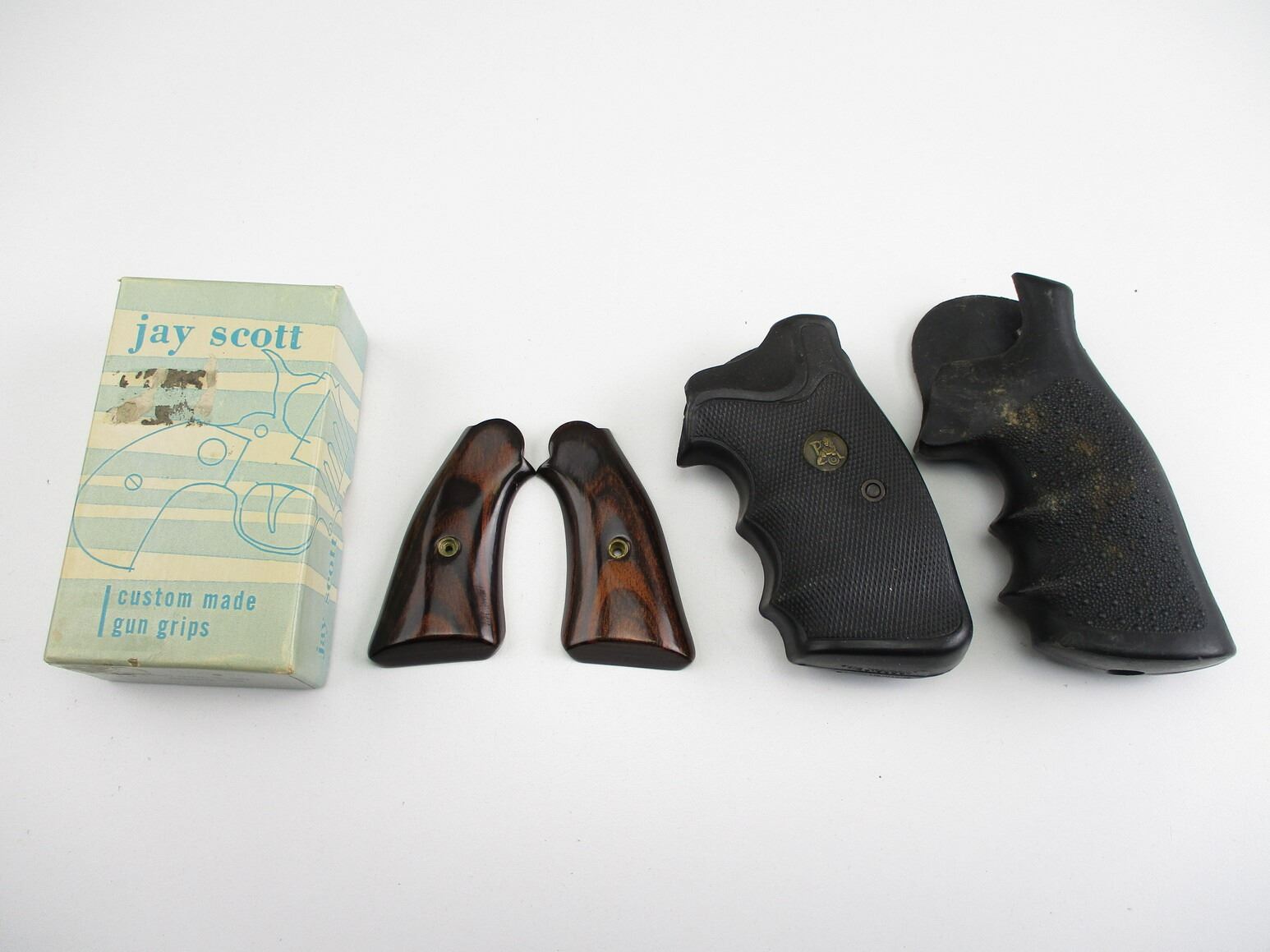 REVOLVER GRIPS , (1) PAIR OF RUGER GP REVOLVER GRIPS, HARD RUBBER, CHECKERED, PACHMAYR LOGO, WITH MOUNTING SCREW, (1) PAIR OF CHEF SPECIAL REGULATION POLICE. (1) HOGUE MONO GRIP, HARD PLASTIC, TEXTURED, FINGER GROOVED, WITH MOUNTING HARDWARE, POSSIBLY FOR S&W.