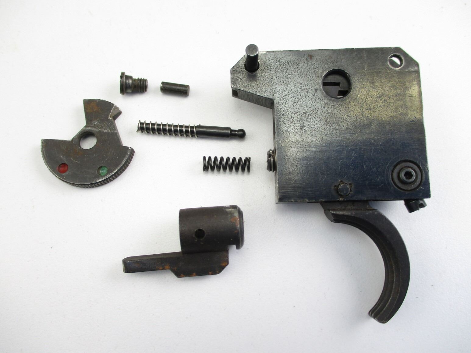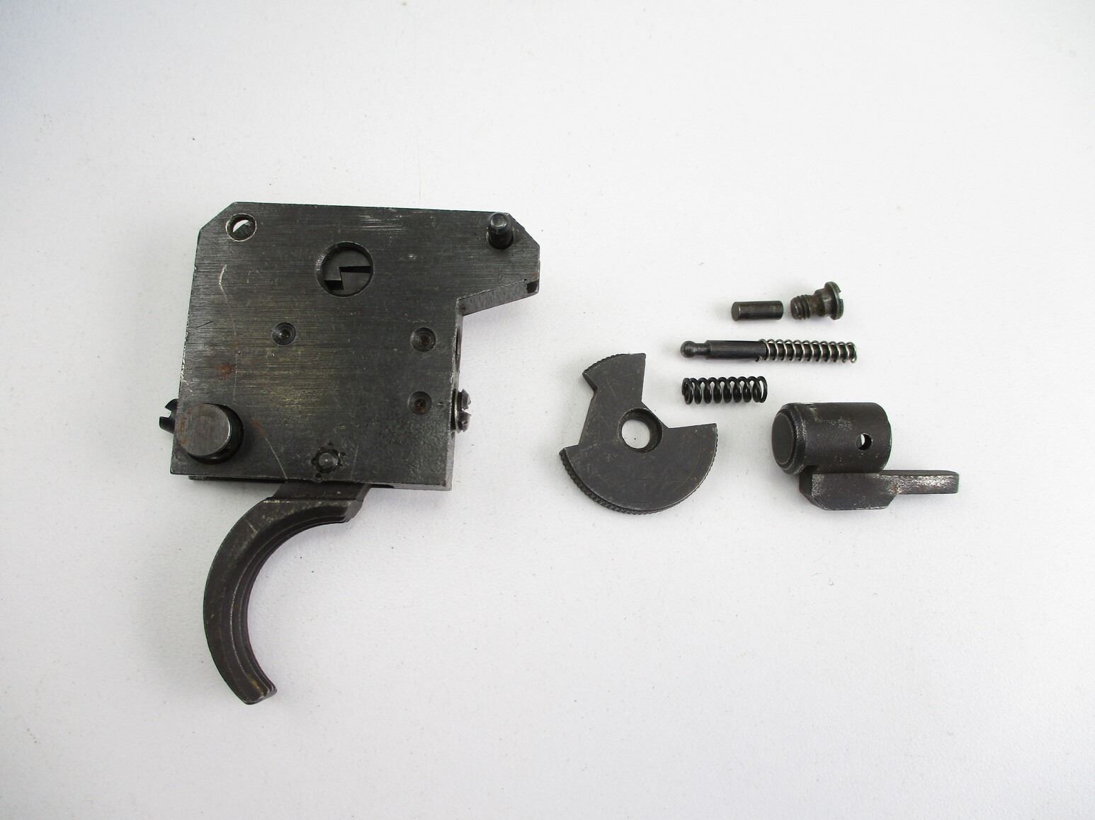 SPORTCO M44B TARGET RIFLE TRIGGER MECH , MAY NOT BE COMPLETE, MAY REQUIRE FITTING, NO VISIBLE MARKINGS, ALSO INCLUDES VARIOUS SMALL PARTS, UNSURE IF PARTS ARE MADE FOR TRIGGER, POSSIBLY REM 700 (UNSURE).