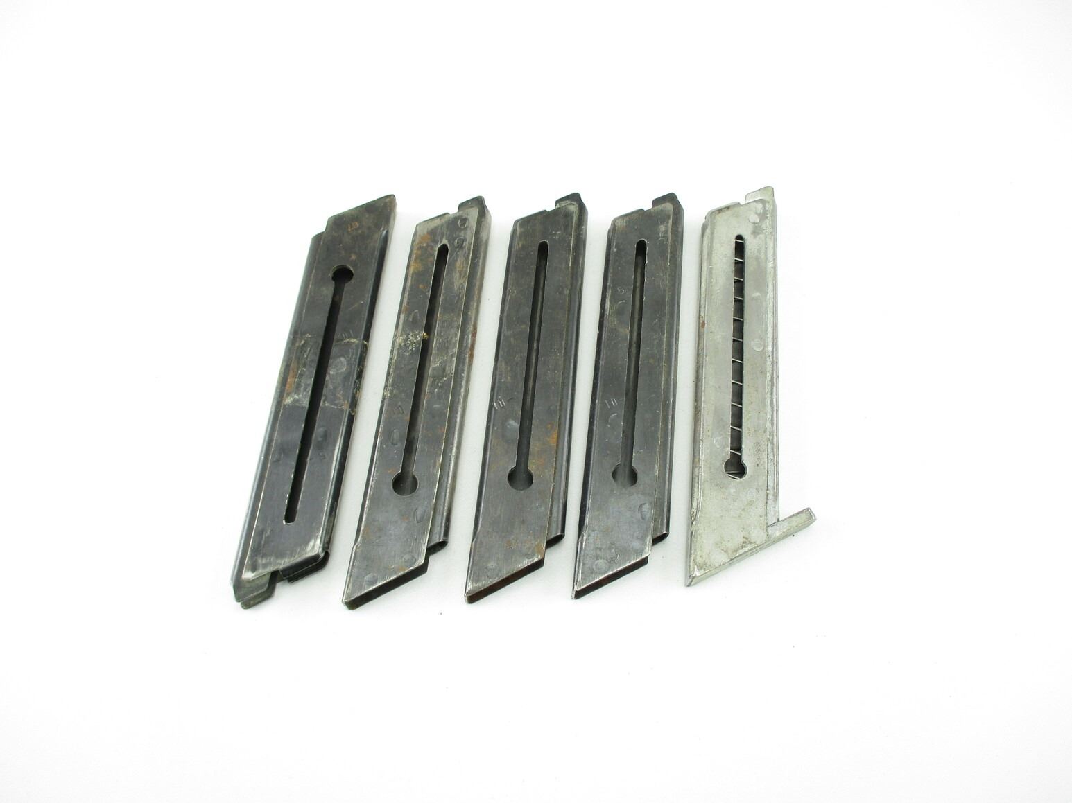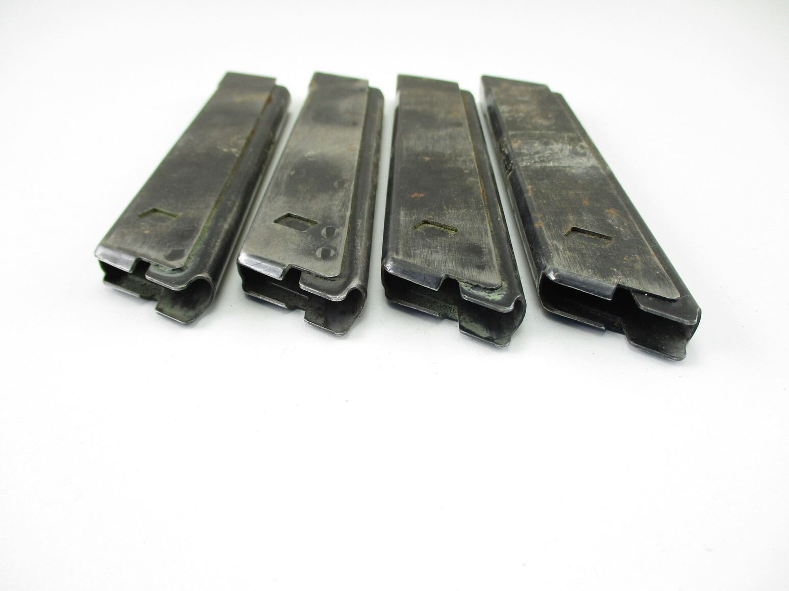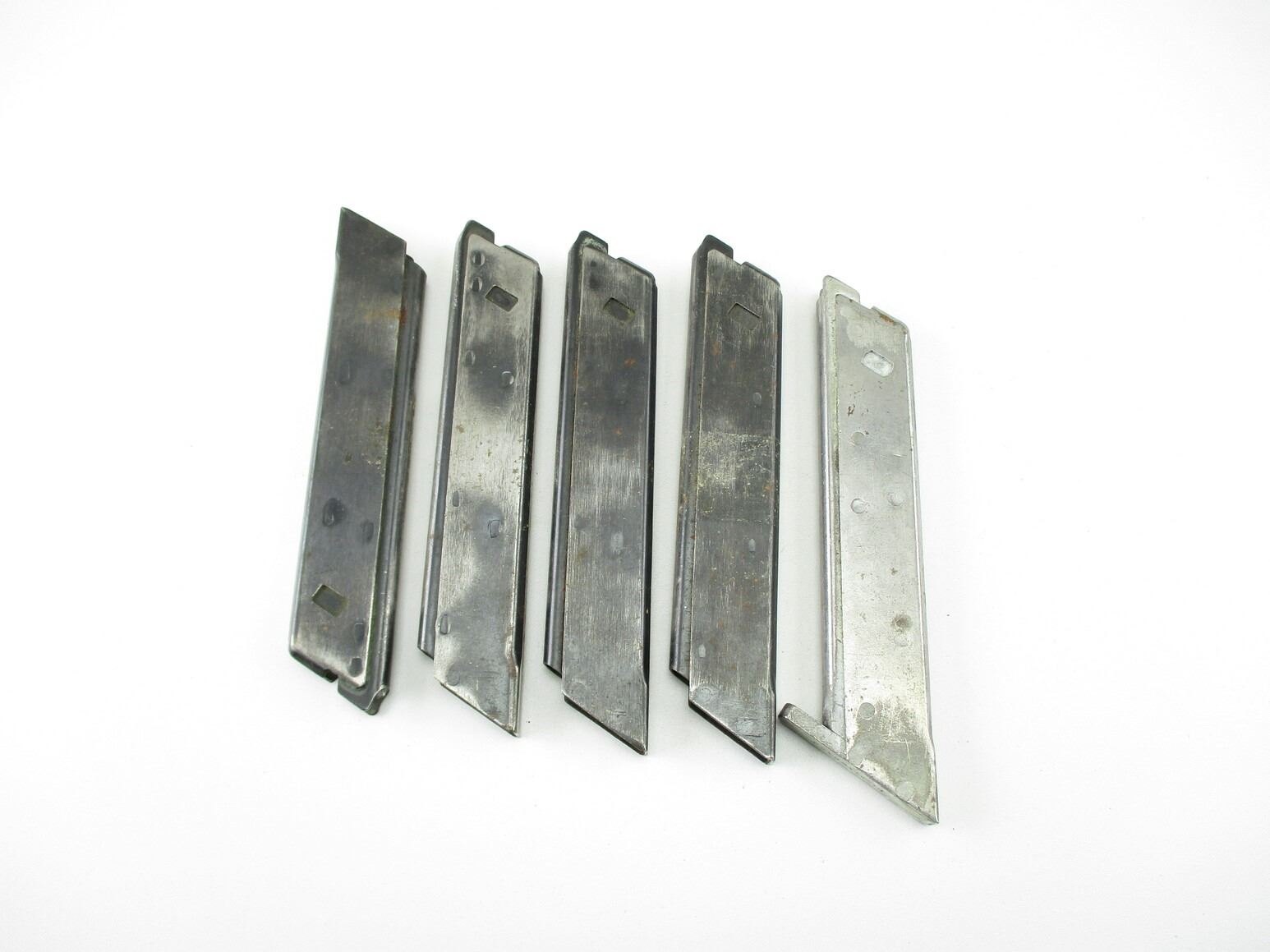 HI-STANDARD PISTOL MAGAZINE BODIES , LOT OF 5. STRIPPED. BLUED STEEL, BODIES MARKED WITH NUMBERS, UNSURE FOR WHICH MODEL. 1 MAG WITH BASE & MAG SPRING (MISSING FOLLOWER).