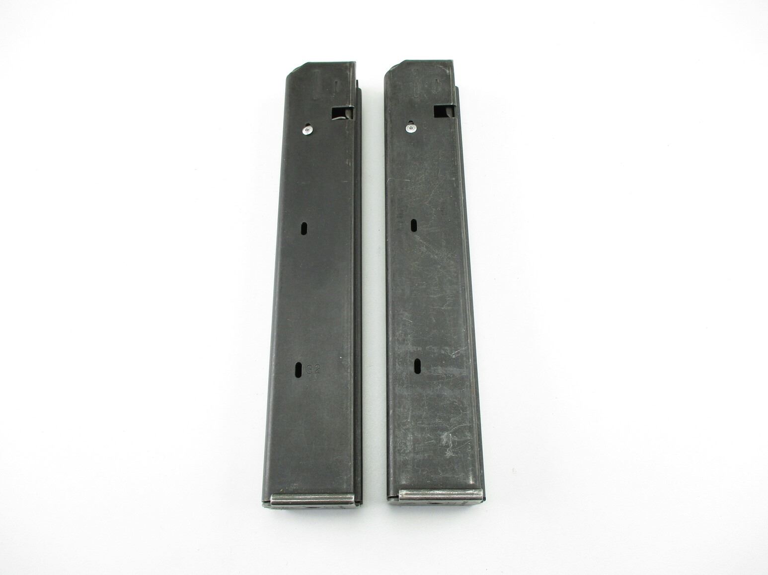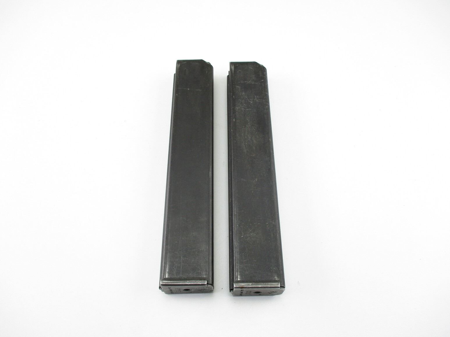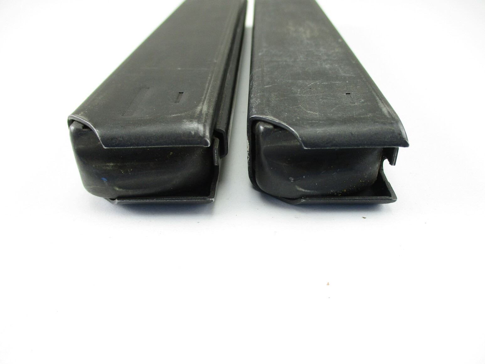 COLT AR-15 9MM PISTOL MAGAZINES , LOT OF 2. 9MM, 5/32 ROUND PINNED MAGS, BLUED STEEL, COLT MARKED ON BASES.