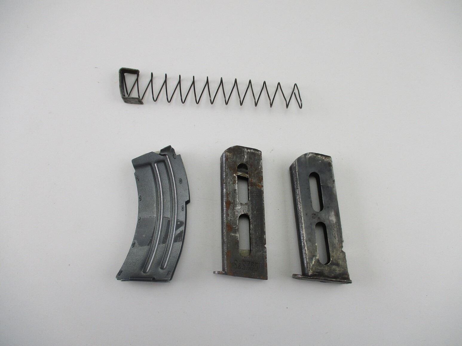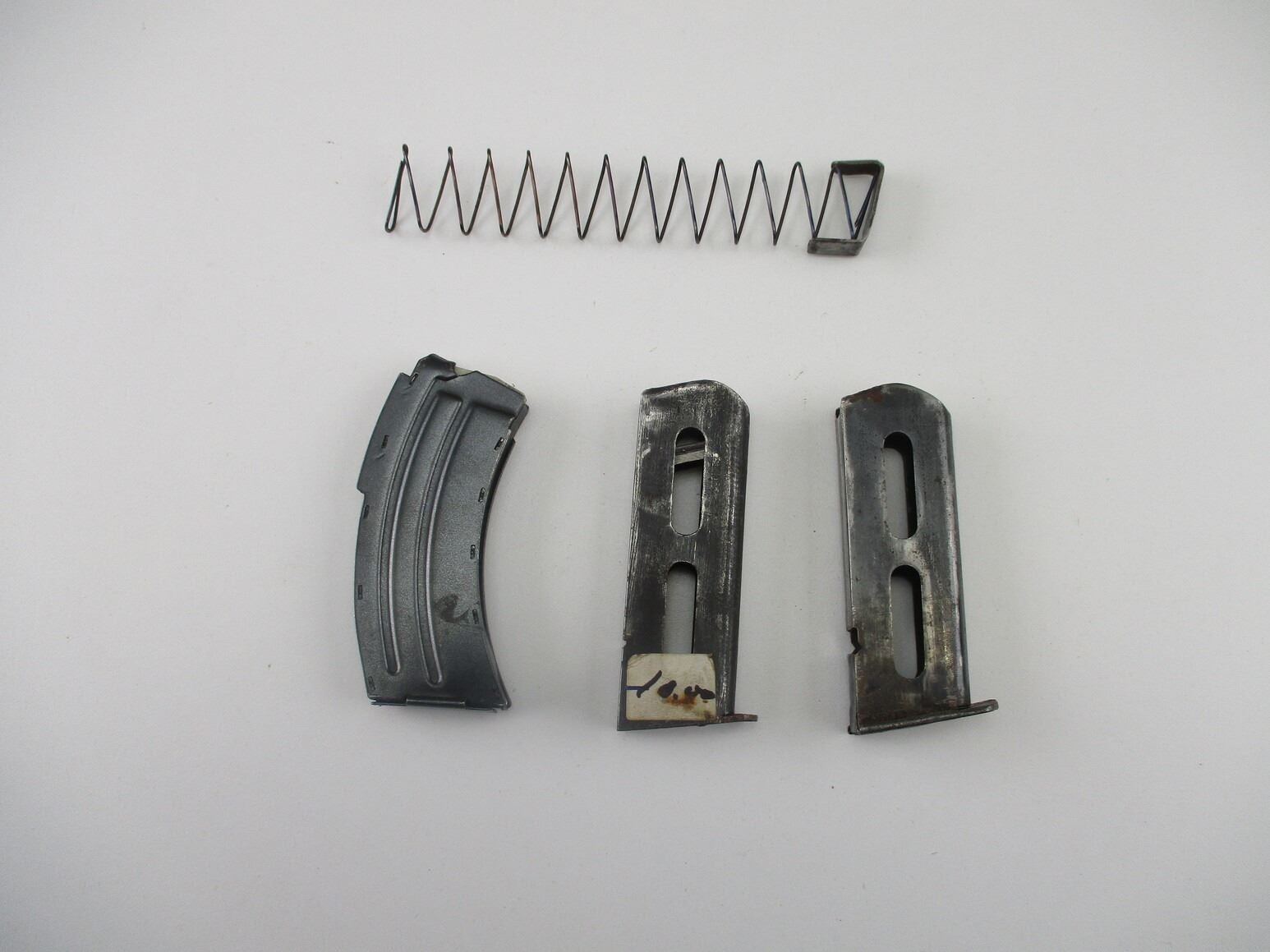 SAVAGE MARK.II .22LR RIFLE MAGAZINE ETC, .22LR, 10 ROUND MAG, BLUED STEEL, WHITE POLYMER FOLLOWER, UNMARKED, ALSO INCLUDE 2 MILITARY PISTOL MAGAZINE BODIES, IN 7.65, ALSO INCLUDES MAG FOLLOWER & SPRING.