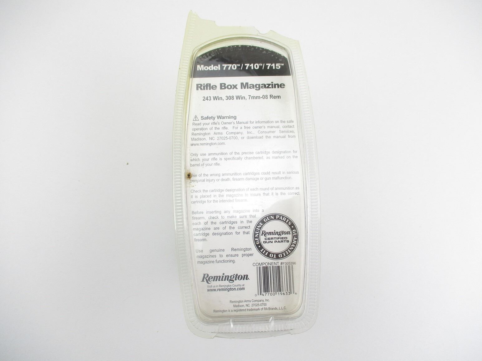 REMINGTON MODEL 770 SHORT ACTION RIFLE MAGAZINE , .308WIN, .243 WIN, ETC. 4 ROUND MAG, BLUED STEEL, WITH POLYMER FOLLOWER & BASE, NOS. IN ORIGINAL PACKAGE.