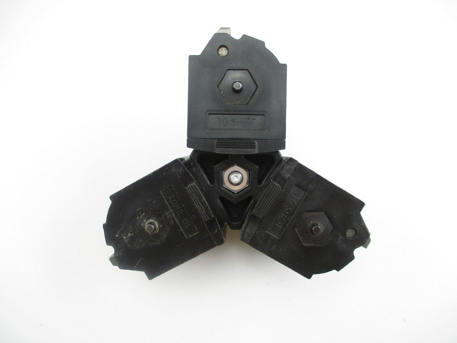 RUGER 10/22 MAGAZINES , (3) .22LR, 10 ROUND ROTARY MAGS, WITH TRI-MAG BRACKET.