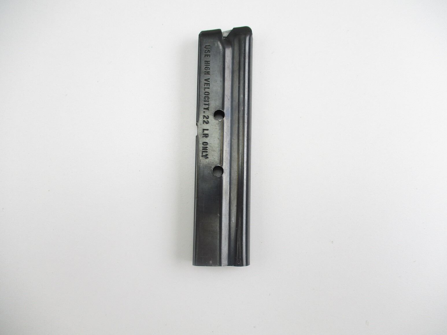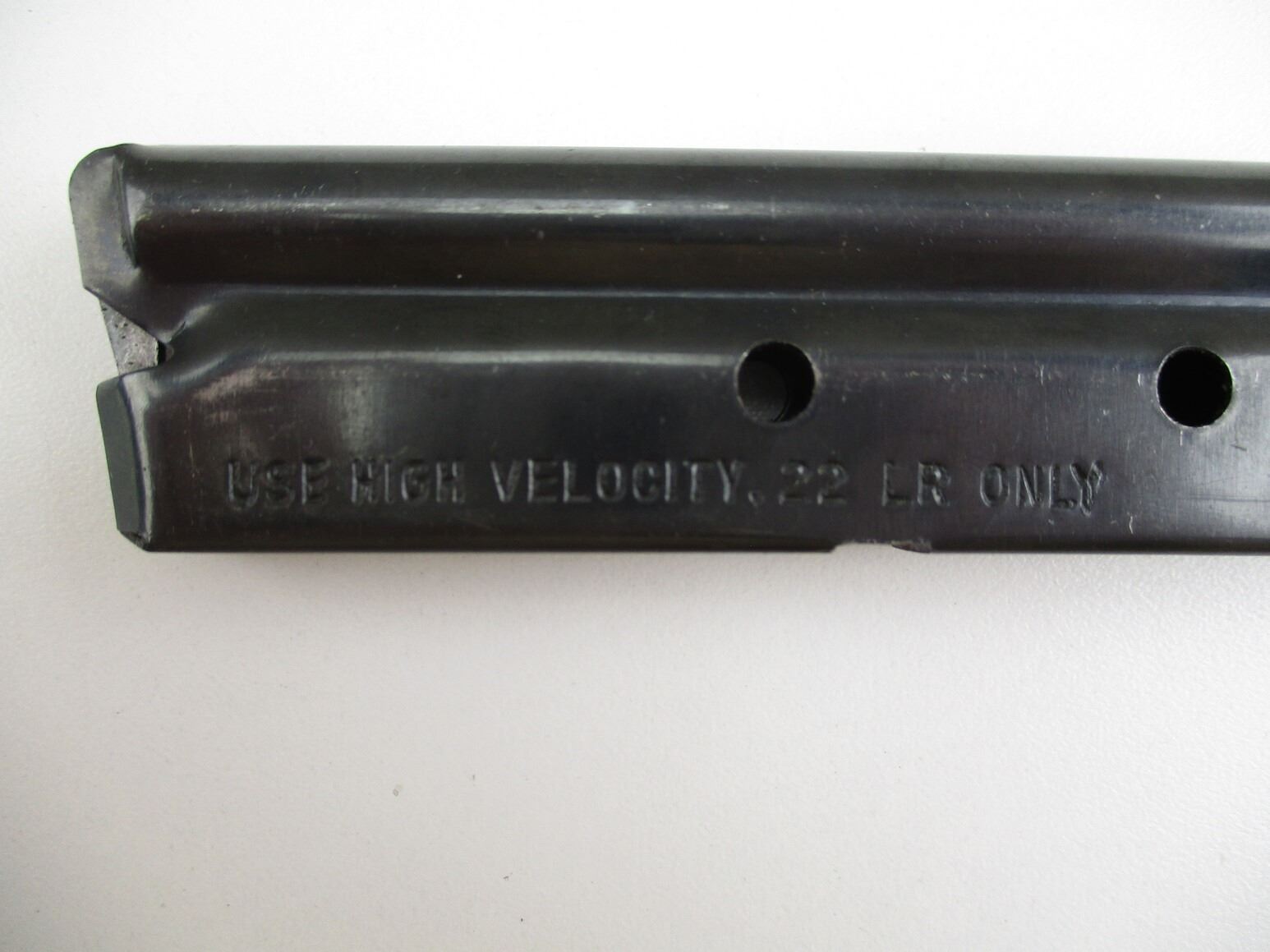 SQUIRES BINGHAM P20 .22LR MAGAZINE , .22LR, 15 ROUND MAG, BLUED STEEL, MARKED "USE HIGH VELOCITY .22LR ONLY" ON SIDE OF MAG.
