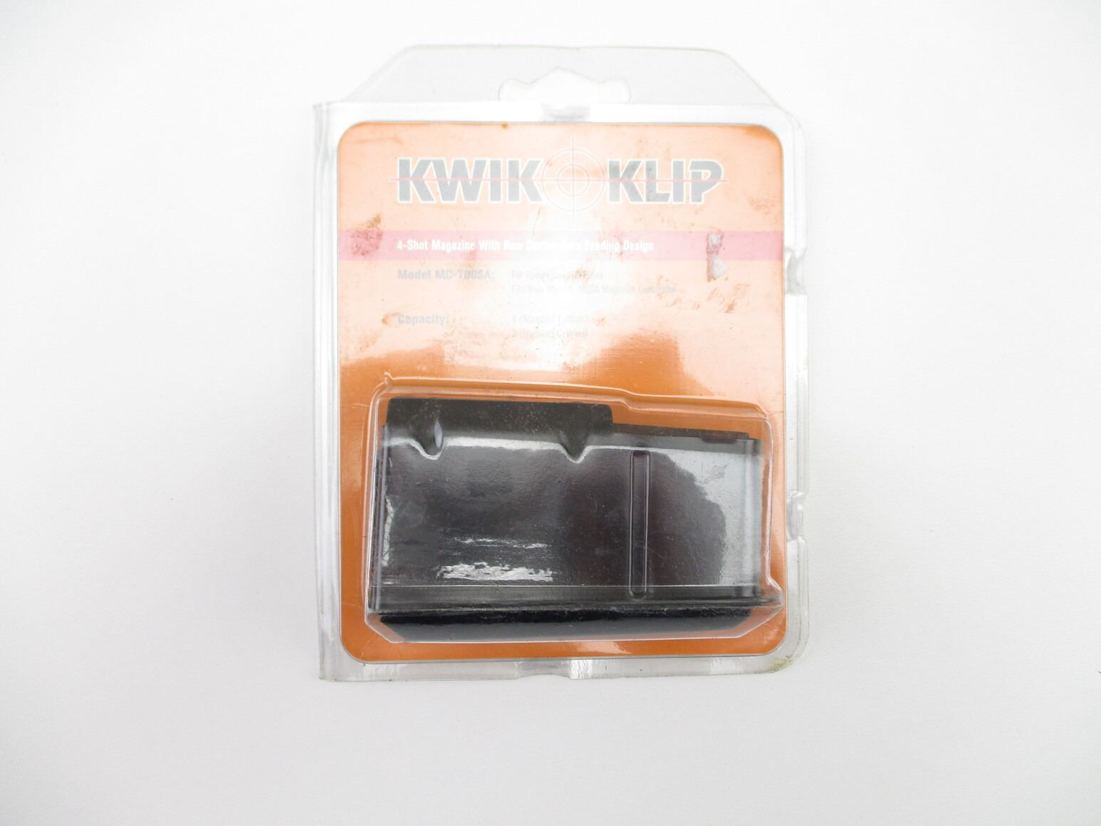 REMINGTON 700 SHORT ACTION KWIK KLIP MAGAZINE , NOS. 4 ROUND MAG FOR STANDARD CALIBER, 3 ROUND MAG FOR MAGNUM CALIBER. BLUED STEEL, WITH POLYMER FOLLOWER.