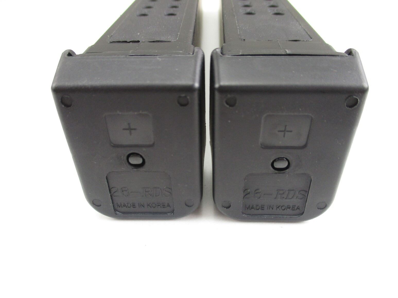 GLOCK EXTENDED .45 ACP MAGAZINES , LOT OF 2. .45 ACP, 10/26 ROUND PINNED MAGS, POLYMER BODY, FOLLOWER & BASES, MADE IN KOREA. ALSO FIT IN KRISS VECTOR. APPEARS NOS OR SLIGHTLY USED.
