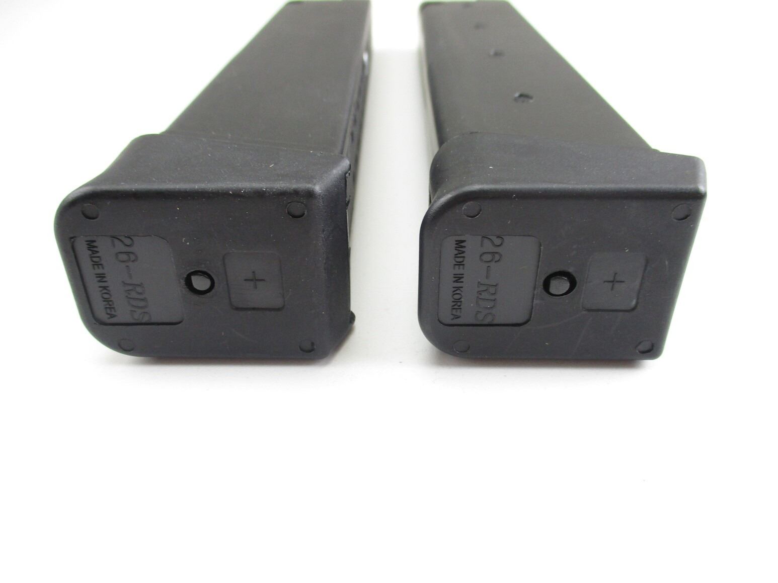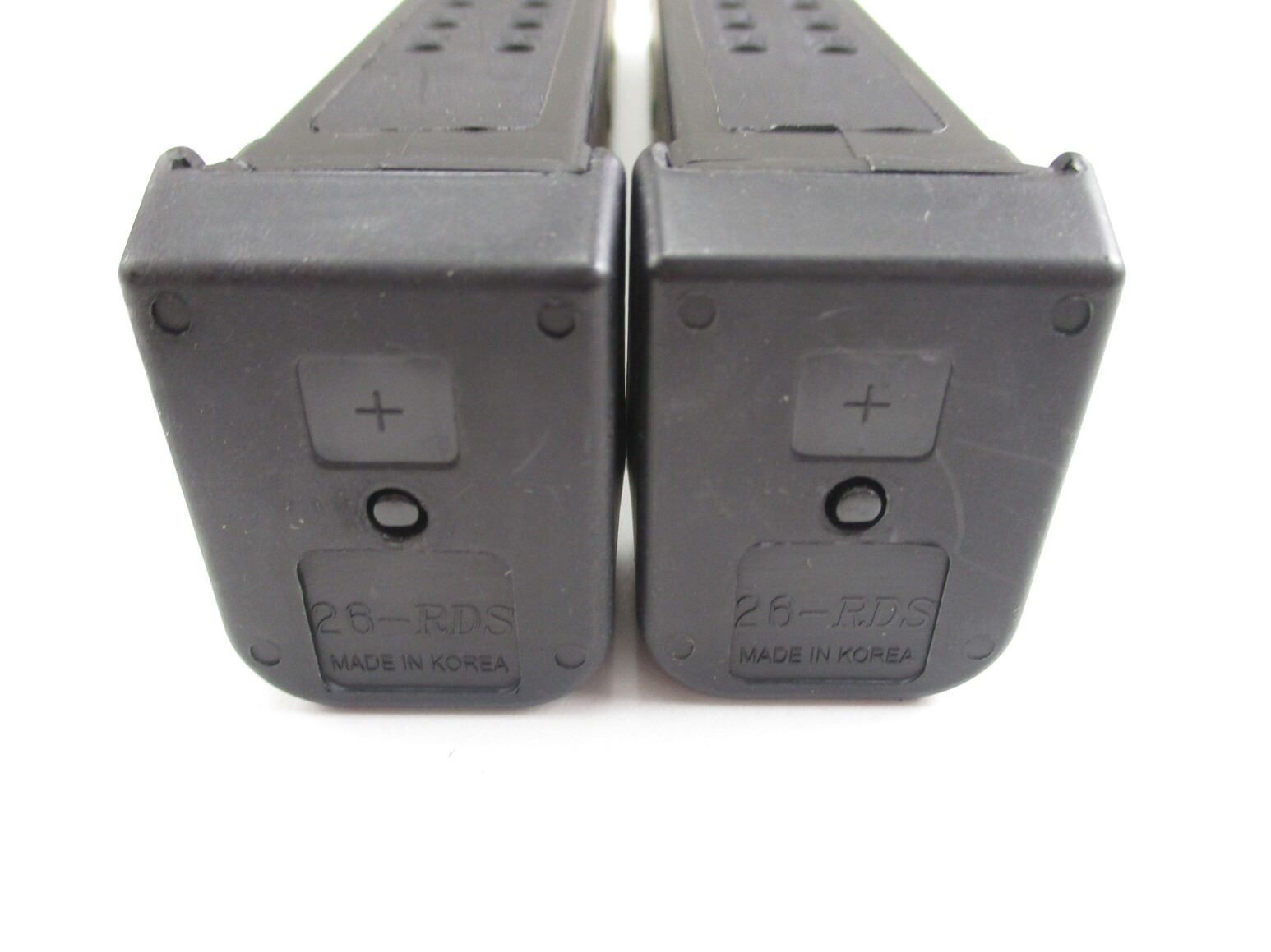 GLOCK EXTENDED .45 ACP MAGAZINES , LOT OF 2. .45 ACP, 10/26 ROUND PINNED MAGS, POLYMER BODY, FOLLOWER & BASES, MADE IN KOREA. ALSO FIT IN KRISS VECTOR APPEARS NOS.