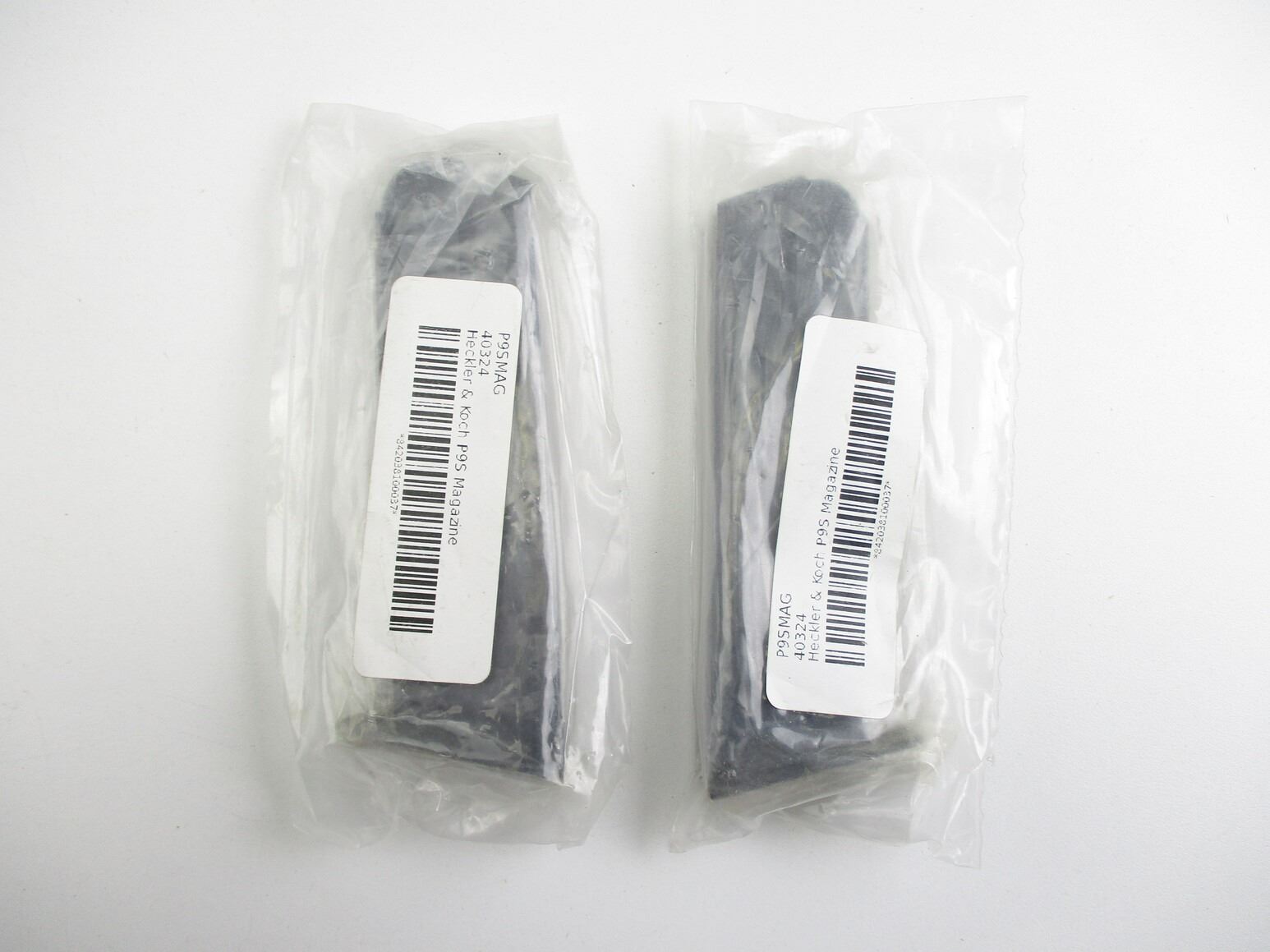 HECKLER & KOCH P9S PISTOL MAGAZINES , LOT OF 2. 9MM, 9 ROUND MAGS, BLUED STEEL, APPEAR NOS IN PLASTIC PACKAGING.