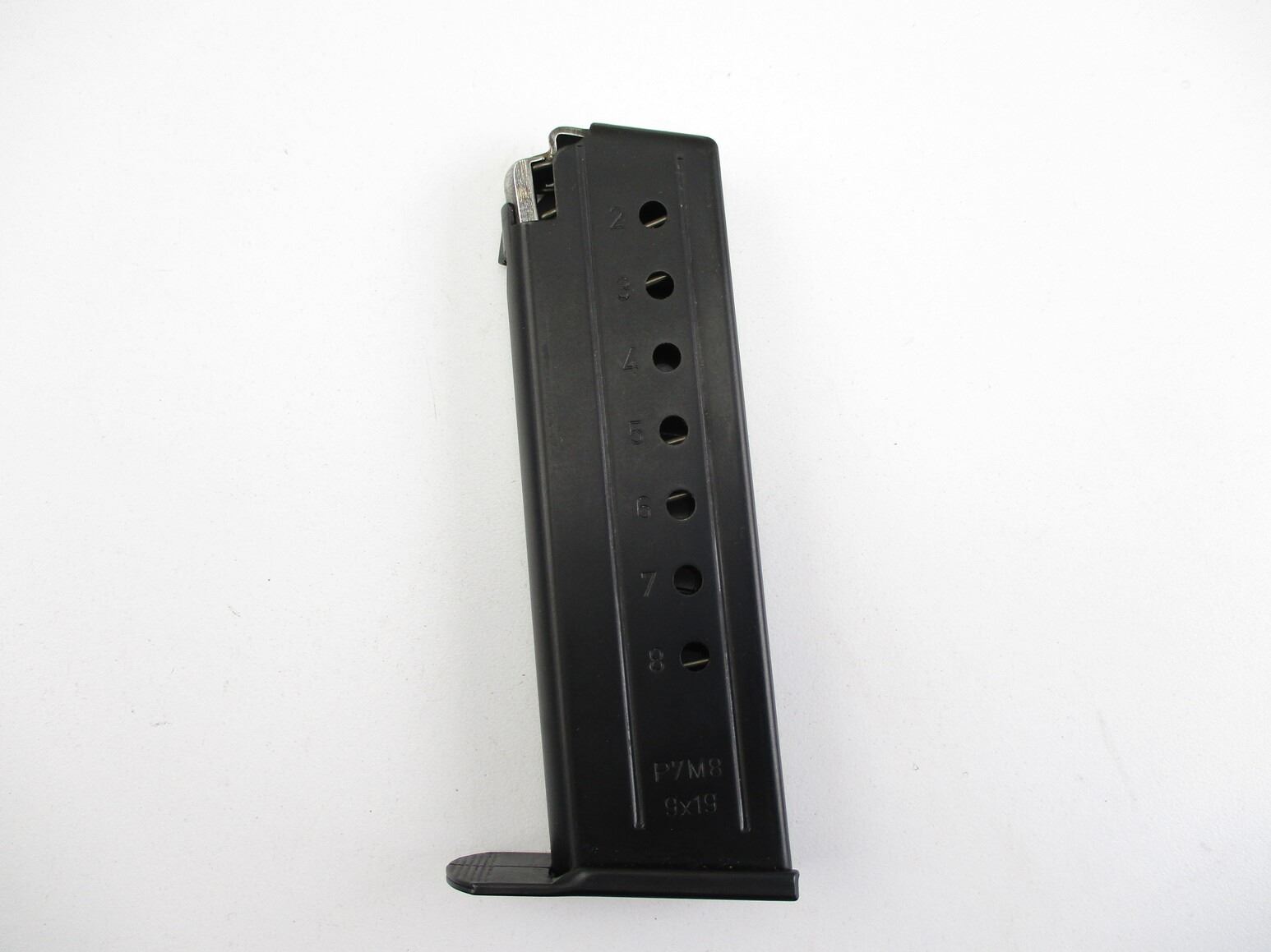 HECKLER & KOCH P7M8 PISTOL MAGAZINES , 9MM, 8 ROUND MAG, BLUED STEEL, WITH ALLOY TYPE FOLLOWERS, MARKED "P7M8" ON SIDE.