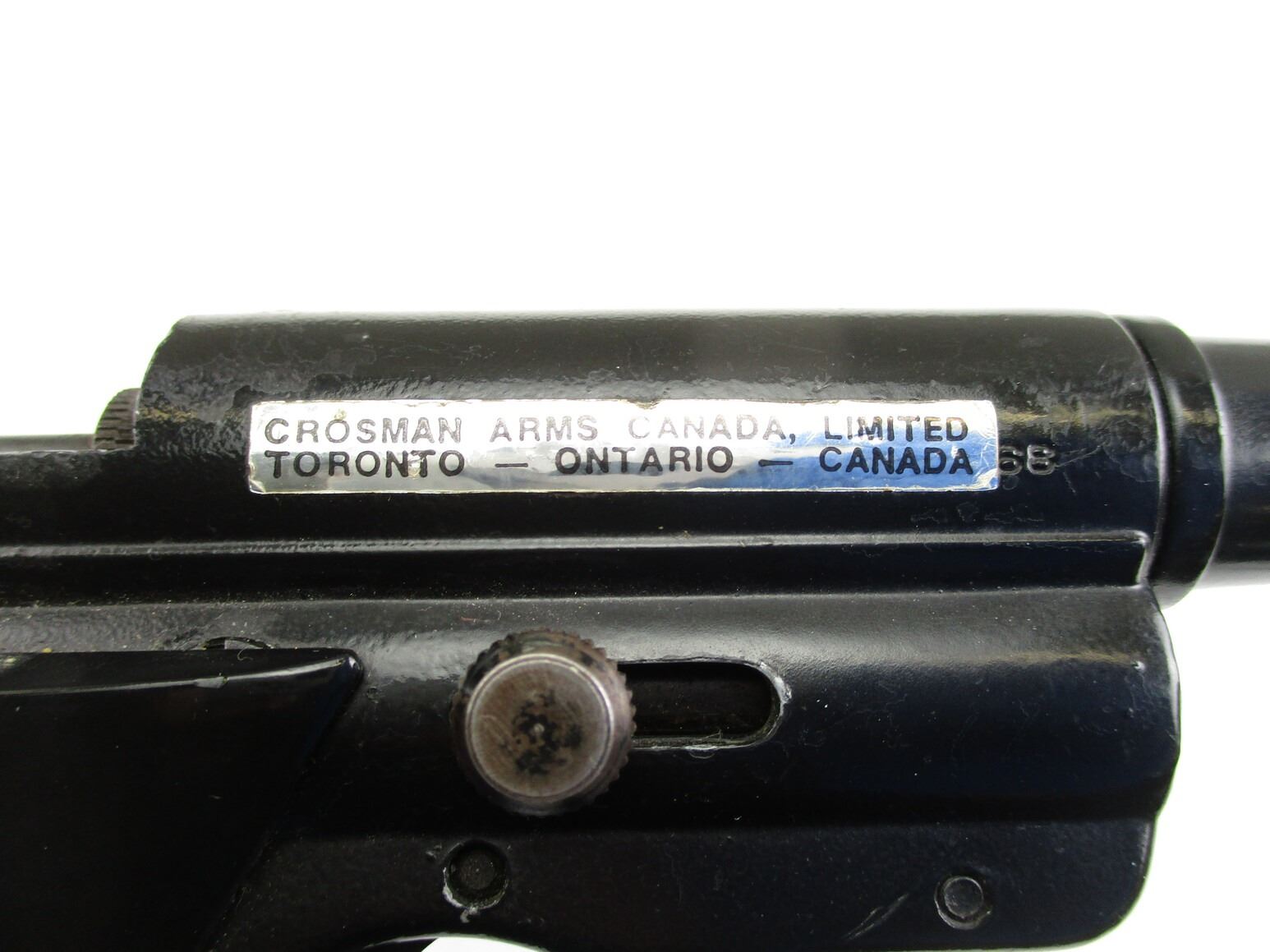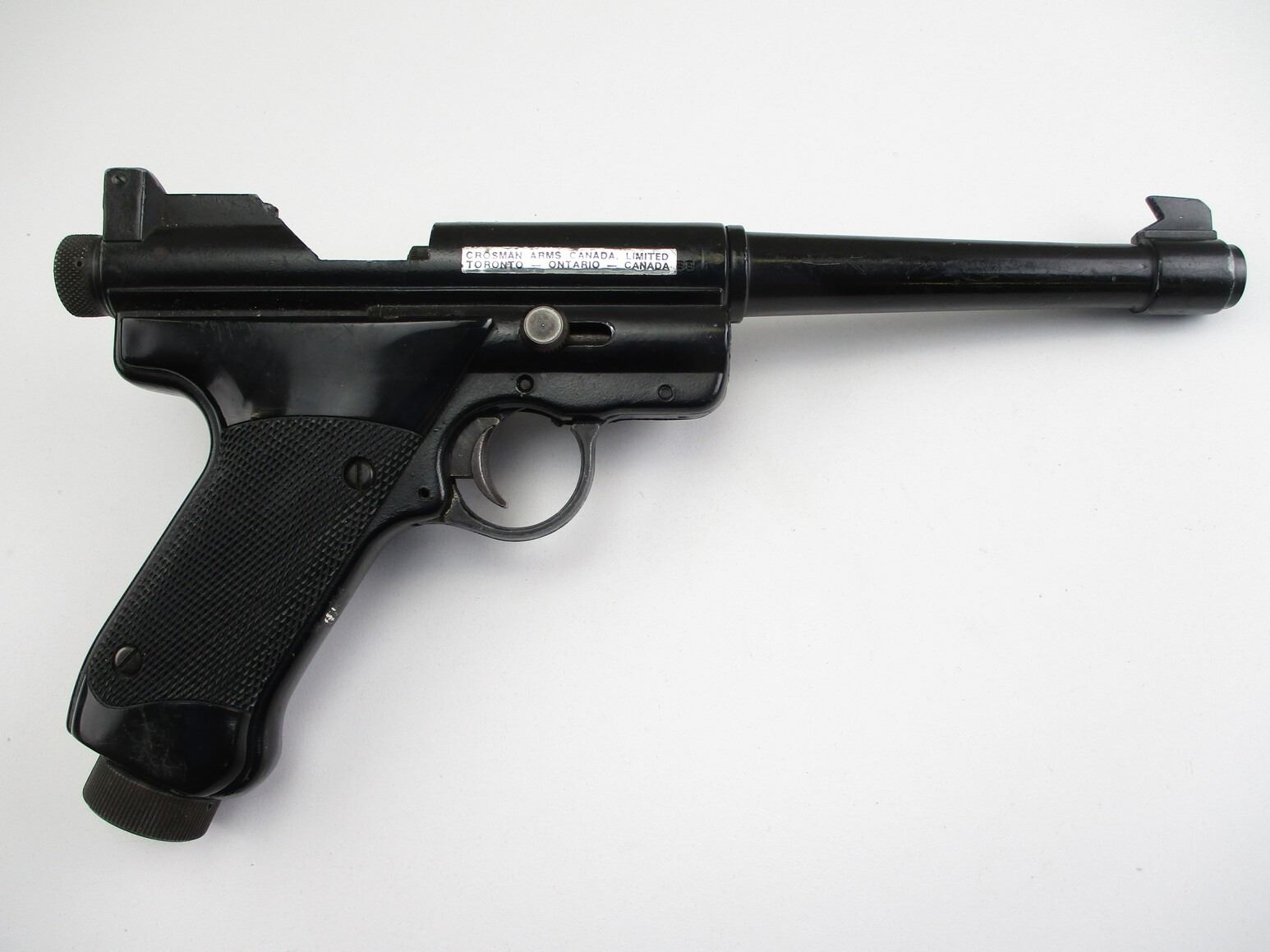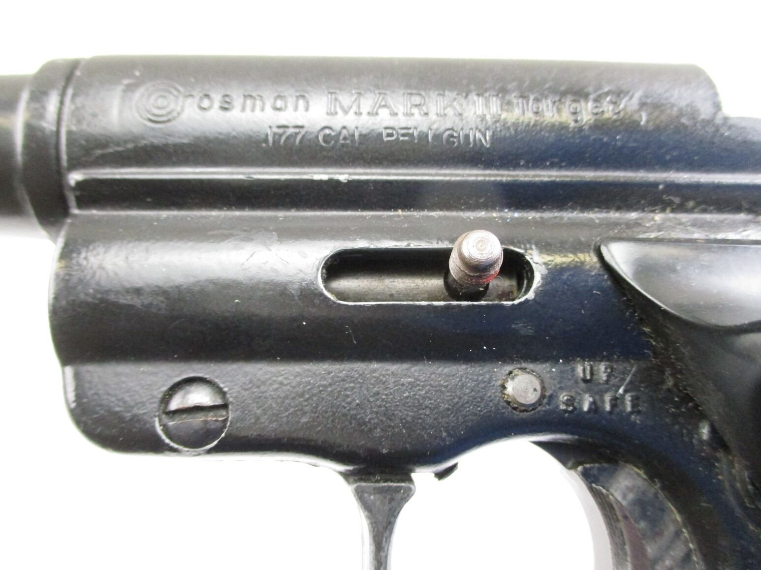 CROSMAN MARK.II TARGET Co2 PISTOL , .177 CAL, SINGLE SHOT, Co2 POWERED, NO COCKING ISSUES, NOT TESTED, WITH PLASTIC RIGHT HANDED TARGET GRIPS.