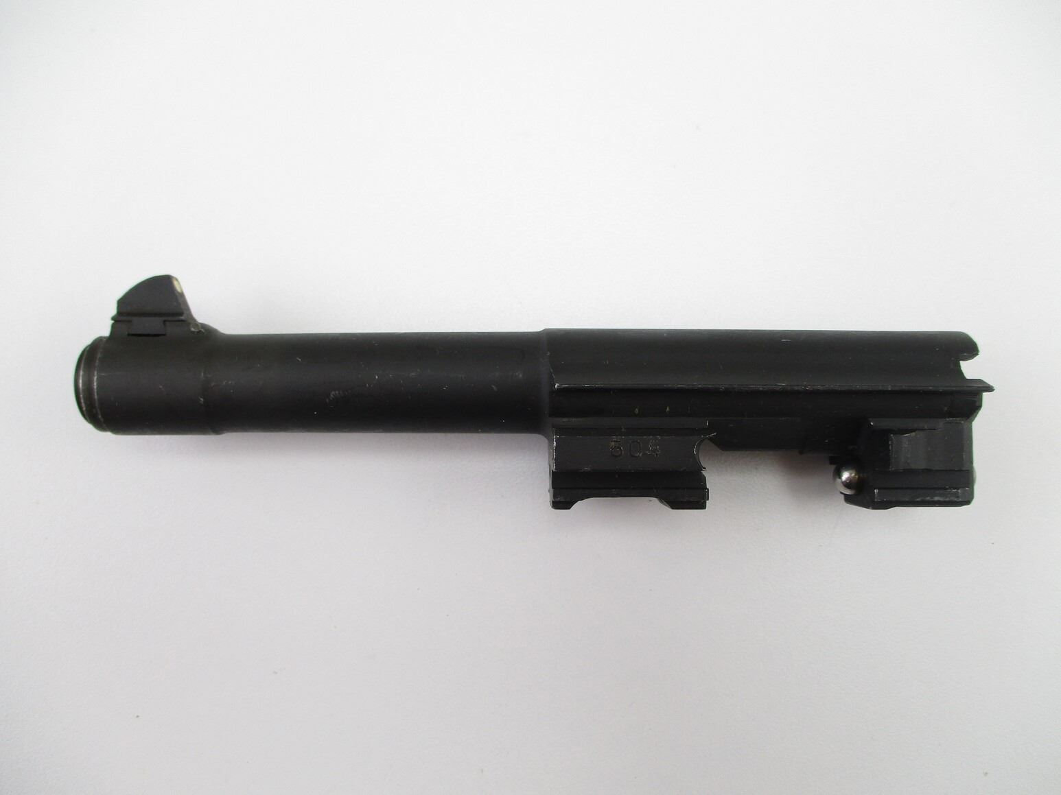 WALTHER P1 9MM PISTOL BARREL , APPROX. 5" BARREL, EXCELLENT / SHINY BORE, WITH FRONT PISTOL SIGHT. # 504, MAY REQUIRE FITTING.