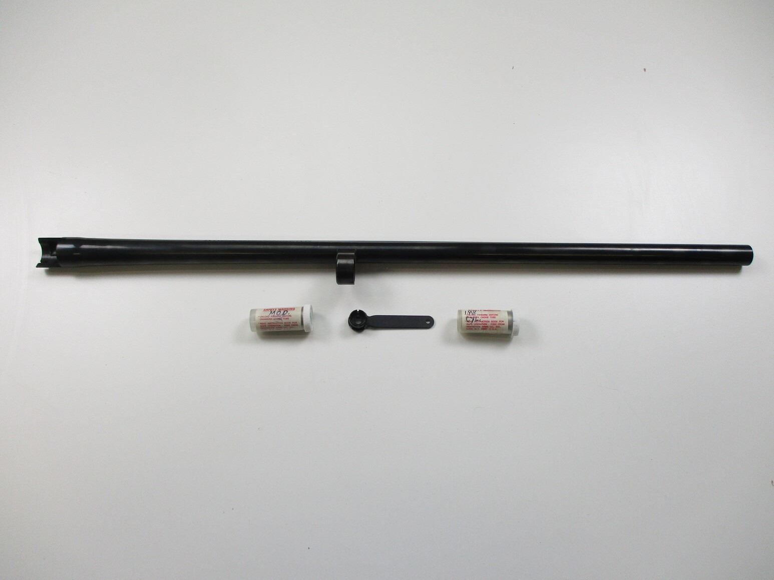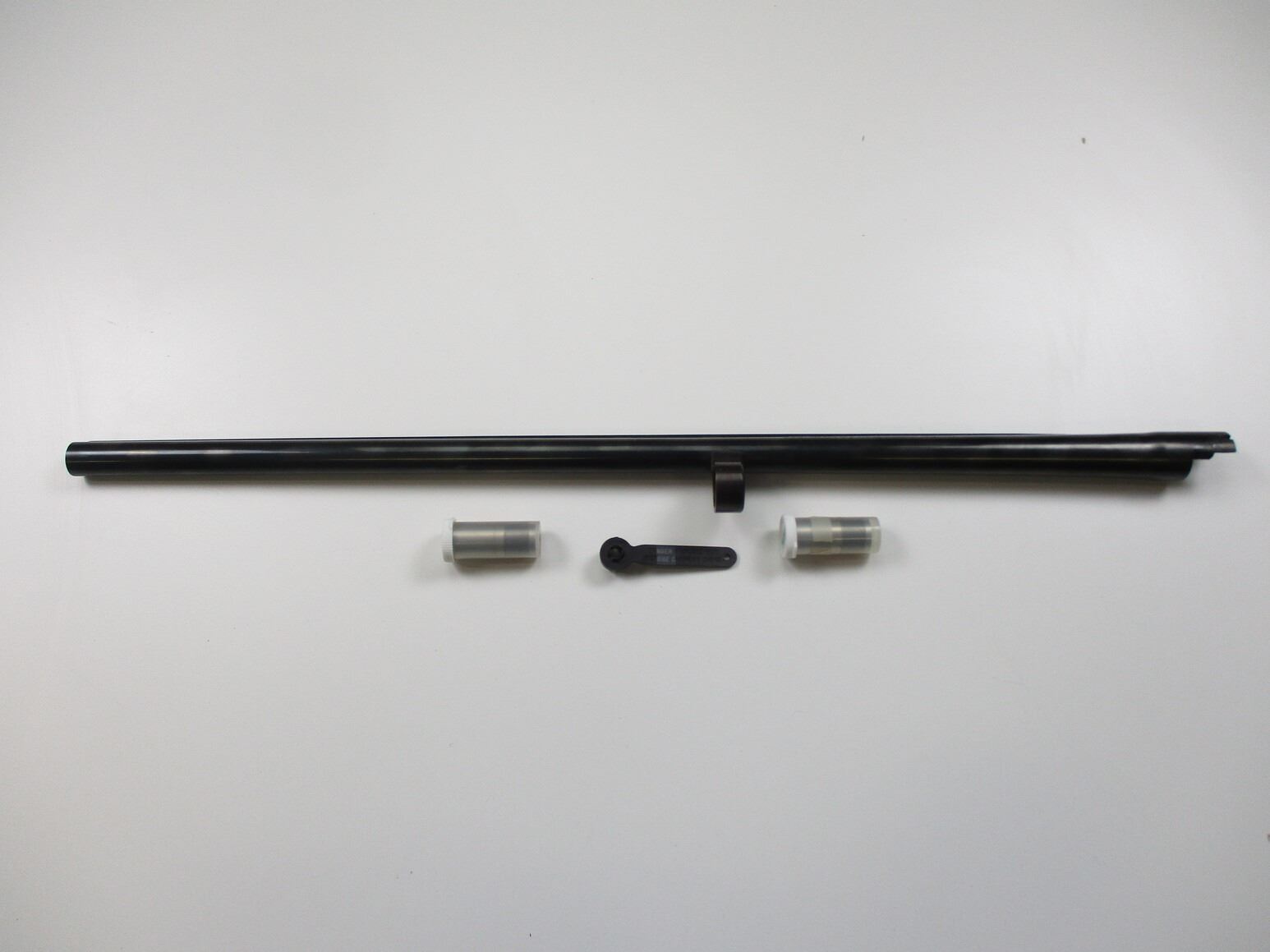 REMINGTON WING MASTER MODEL 870 12 GAUGE SHOTGUN BARREL , APPROX. 28", 12-3/4" OR 3", BLUED STEEL, EXCELLENT BORE, VENT RIB, FRONT STEEL BEAD, THREADED FOR CHOKES, ALSO INCLUDES FULL, MOD, & IMP CYL CHOKE, WITH TOOL.