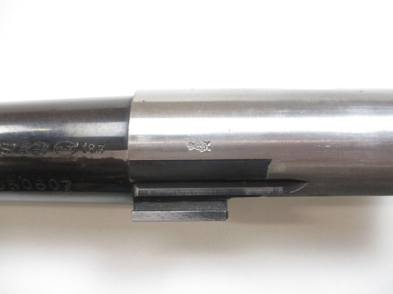 BROWNING AUTO 5 12 GAUGE SHOTGUN BARREL , SPECIAL STEEL 12 GAUGE 2-3/4", APPROX. 29.5", GOOD / SHINY BORE, BLUED STEEL, I/MOD FIXED CHOKE, FRONT STEEL BEAD, # U50607, WITH VARIOUS OTHER MARKINGS. MADE IN BELGIUM.
